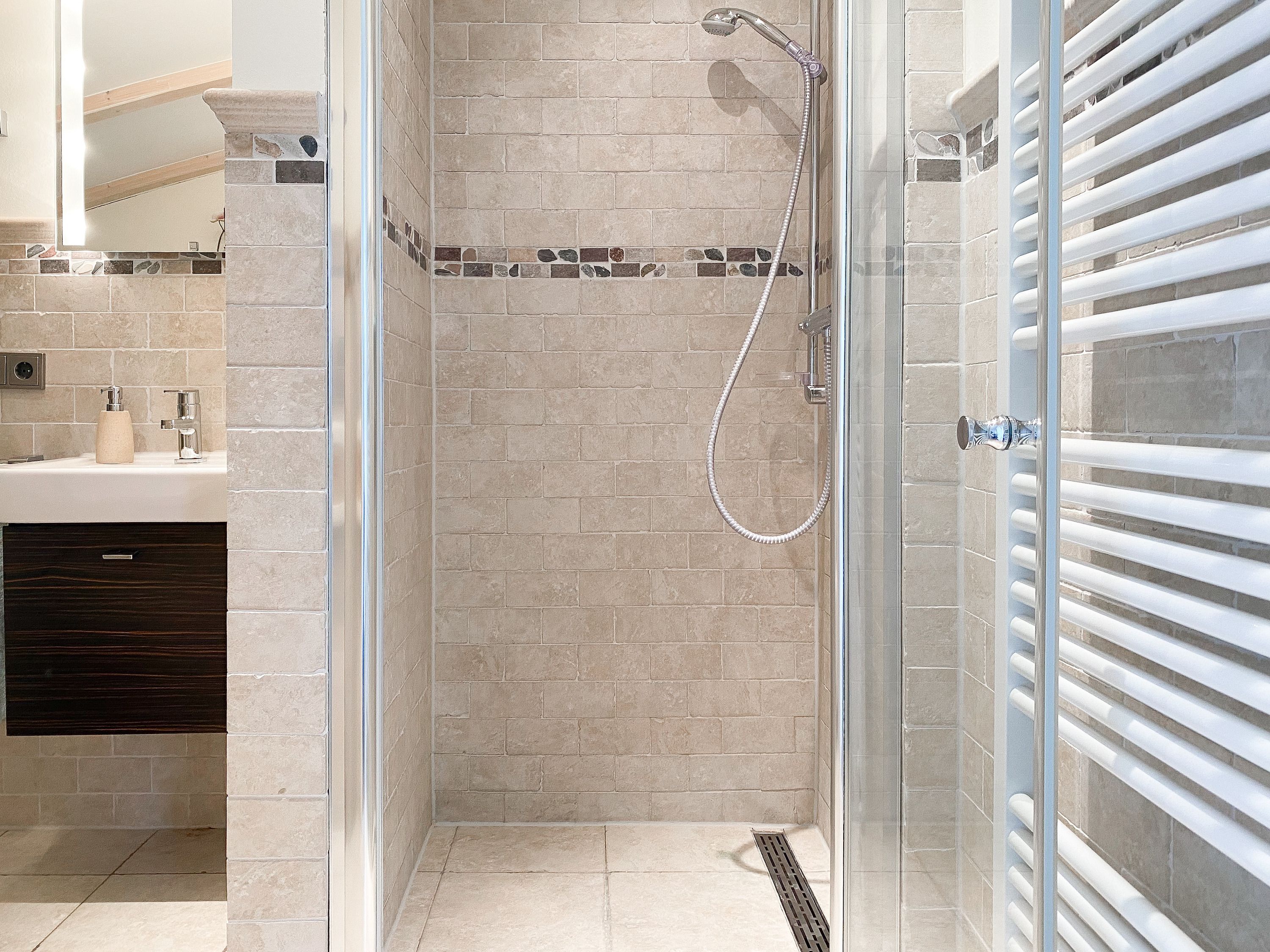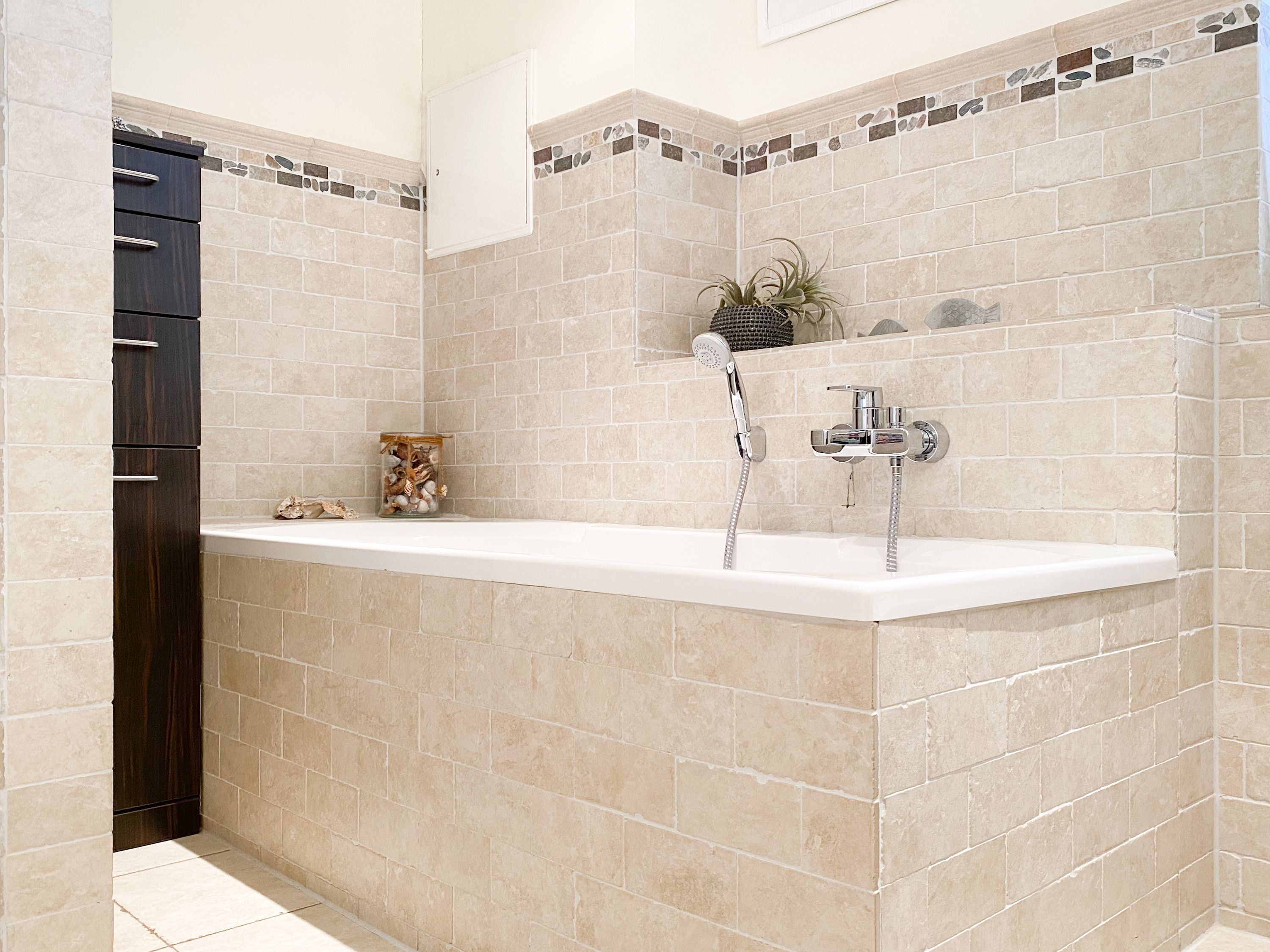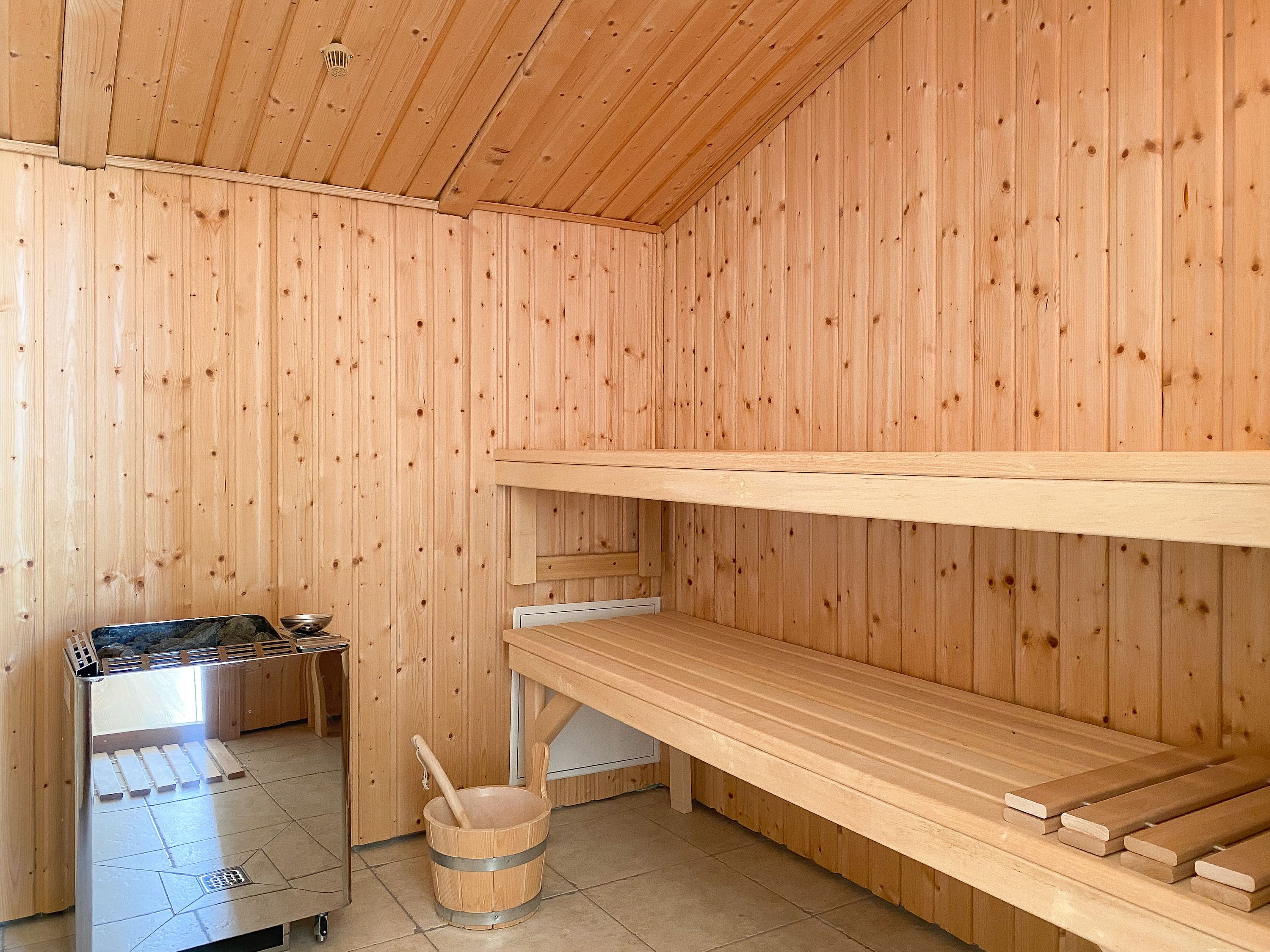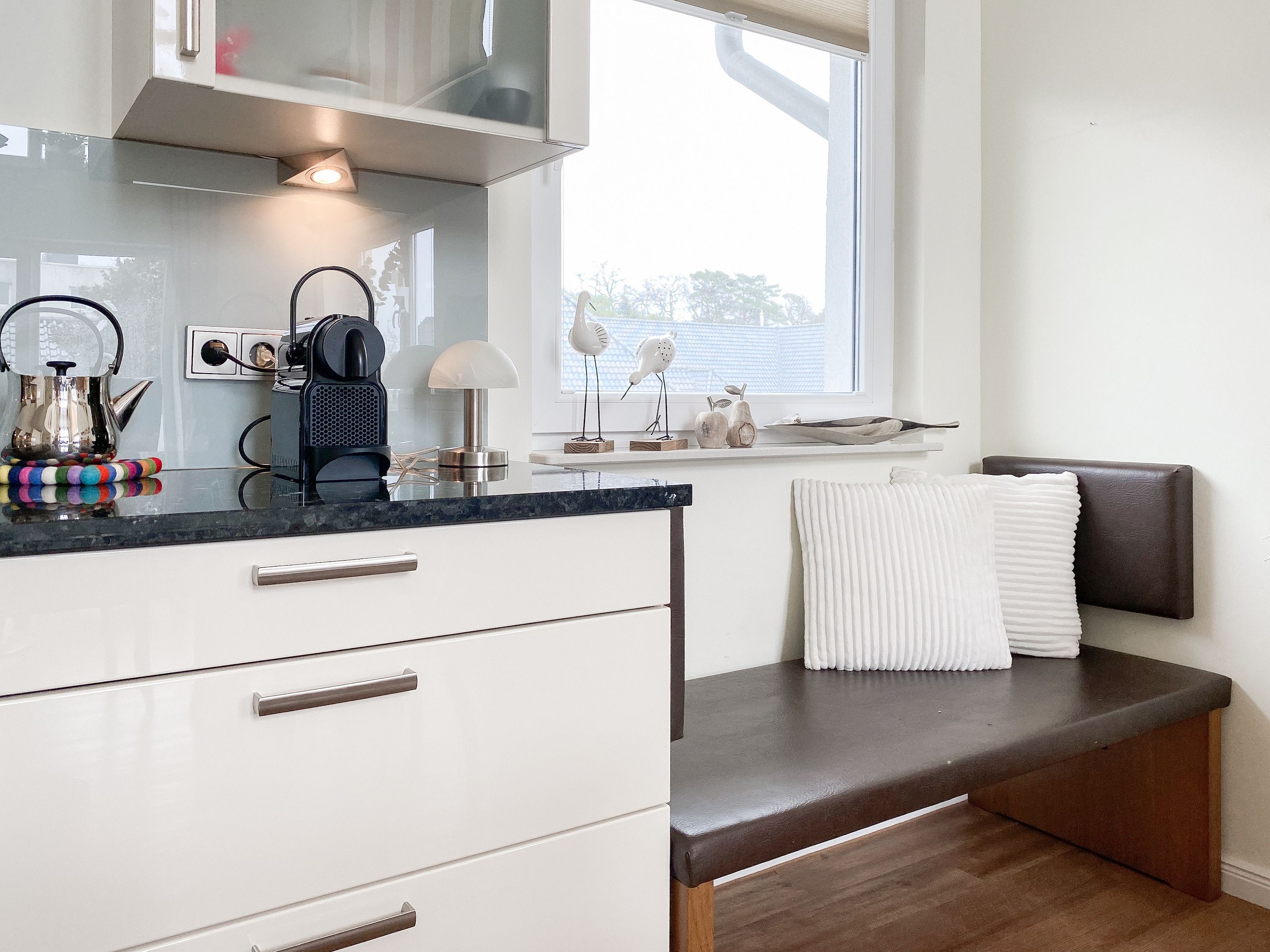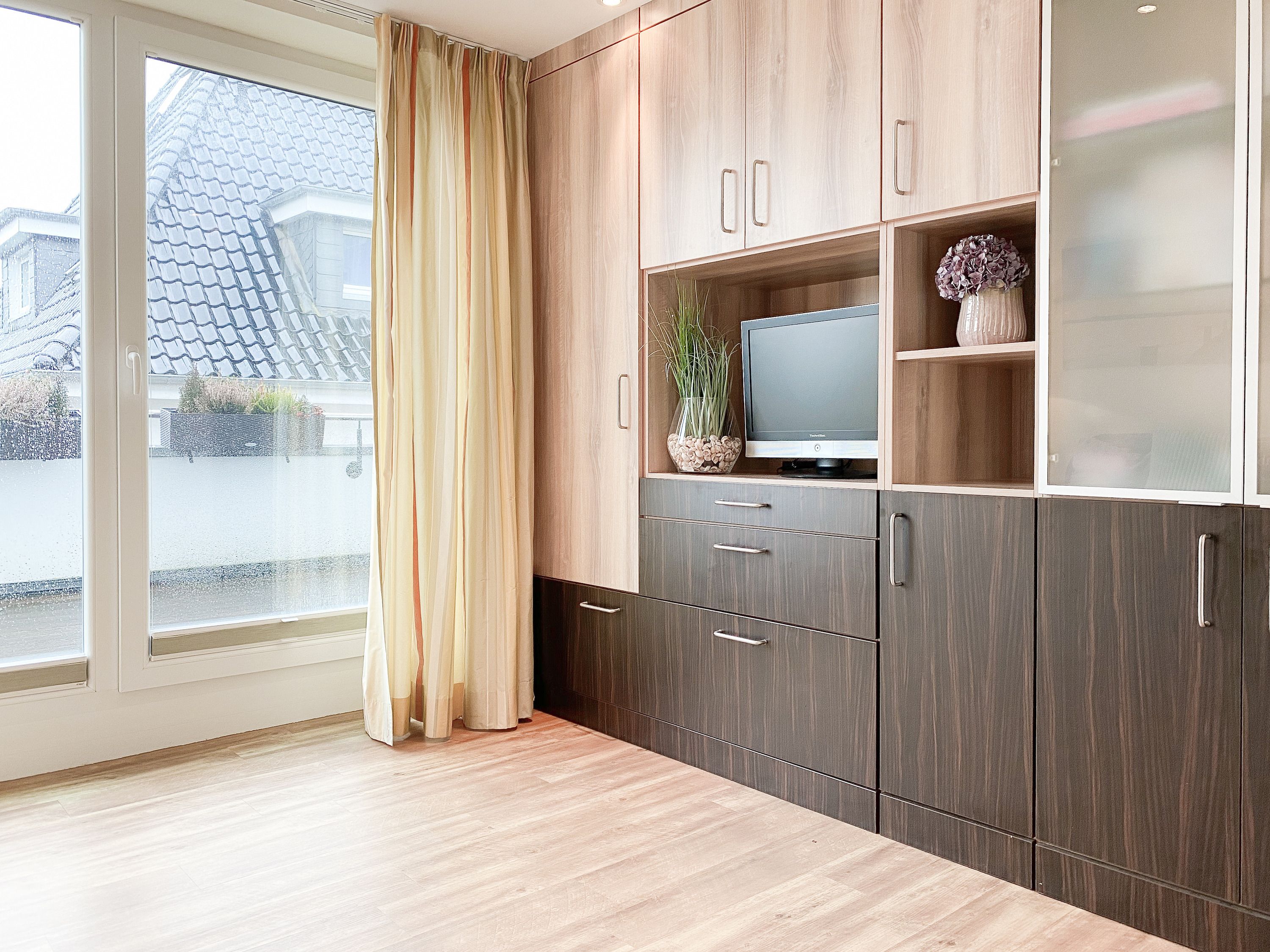 Das bestens ausgestattete Penthouse präsentiert sich als lichtdurchflutetes Loft über 2 Ebenen und bietet auf 100 qm Wohnfläche mit 3 Schlafzimmern und 2 Bädern ausreichend Raum für 6 Personen. Verbringen Sie zwanglose Urlaubstage auf der riesigen Dachterrasse in Südausrichtung, die mit Gartenmöbeln, Sonnenliegen und einer elektrischen Markise ausgestattet ist oder entspannen Sie in der großzügig angelegten Sauna, die auf der zweiten Wohnebene untergebracht ist. Eine Klimaanlage und Insektenschutzgitter sorgen zu jeder Jahreszeit für erholsamen Schlaf. Den Mittelpunkt des Objektes bildet der großzügige Wohn- Essbereich mit vielen Fenstern und äußerst hohen Decken sowie die offene, perfekt ausgestattete Küche. Zwei separate Schlafzimmer (Doppelbett 160x200 und Einzelbett mit Auszug) und ein äußerst hochwertig ausgestattetes Bad mit Walk In Dusche und Badewanne sind ebenfalls auf der unteren Ebene untergebracht. Das dritte Schlafzimmer (Doppelbett 180x200), ein weiteres Duschbad mit integriertem Waschtrockner und die Sauna sind über eine Treppe vom Wohnbereich zu erreichen. Alle Schlafzimmer sind mit einem TV und Verdunkelungsvorhängen ausgestattet. Insgesamt 4 TV, Radio, Bluetooth und WLAN gehören zum Entertainment-Paket. Ein fester PKW Stellplatz befindet sich auf dem Grundstück.