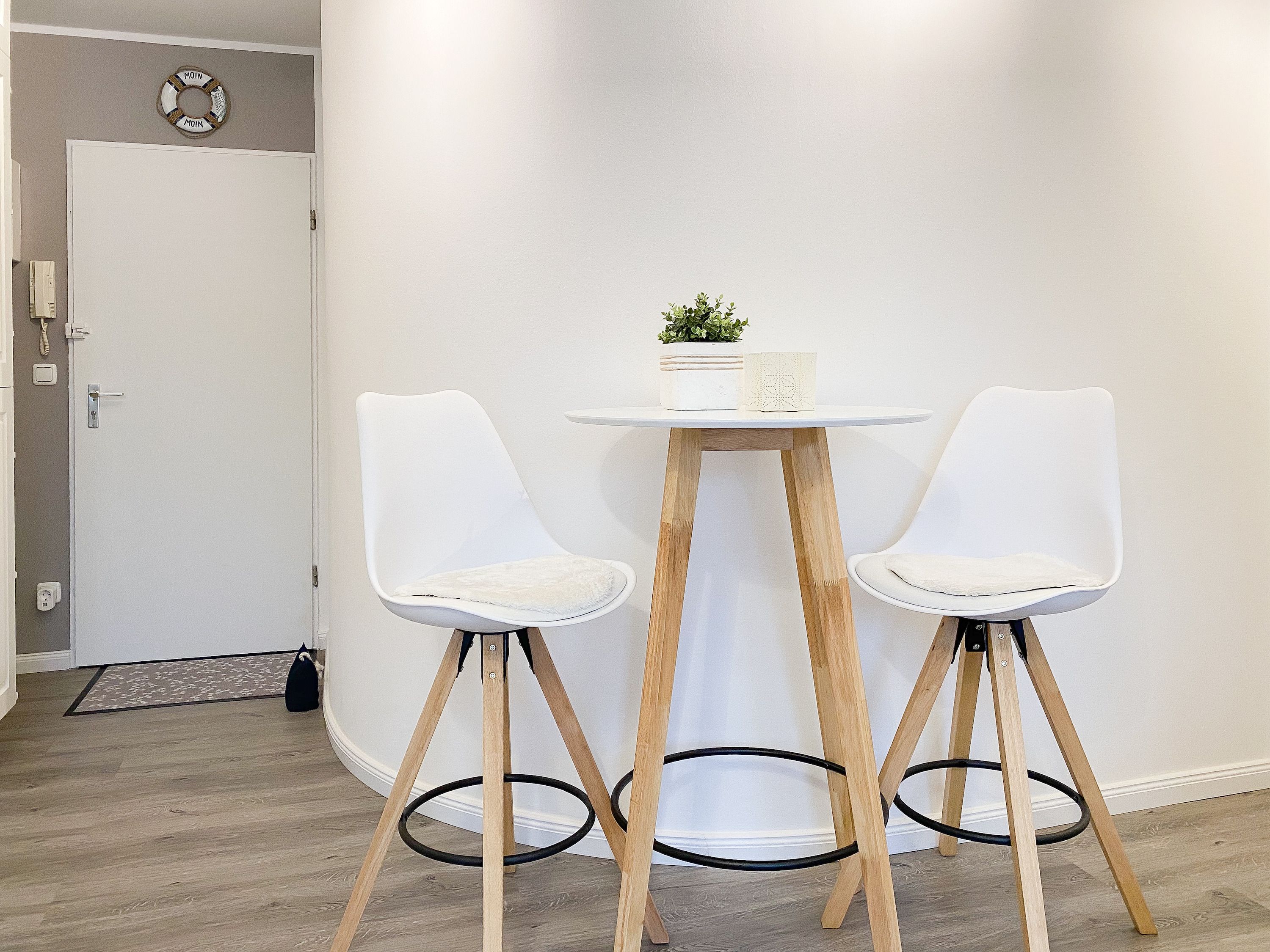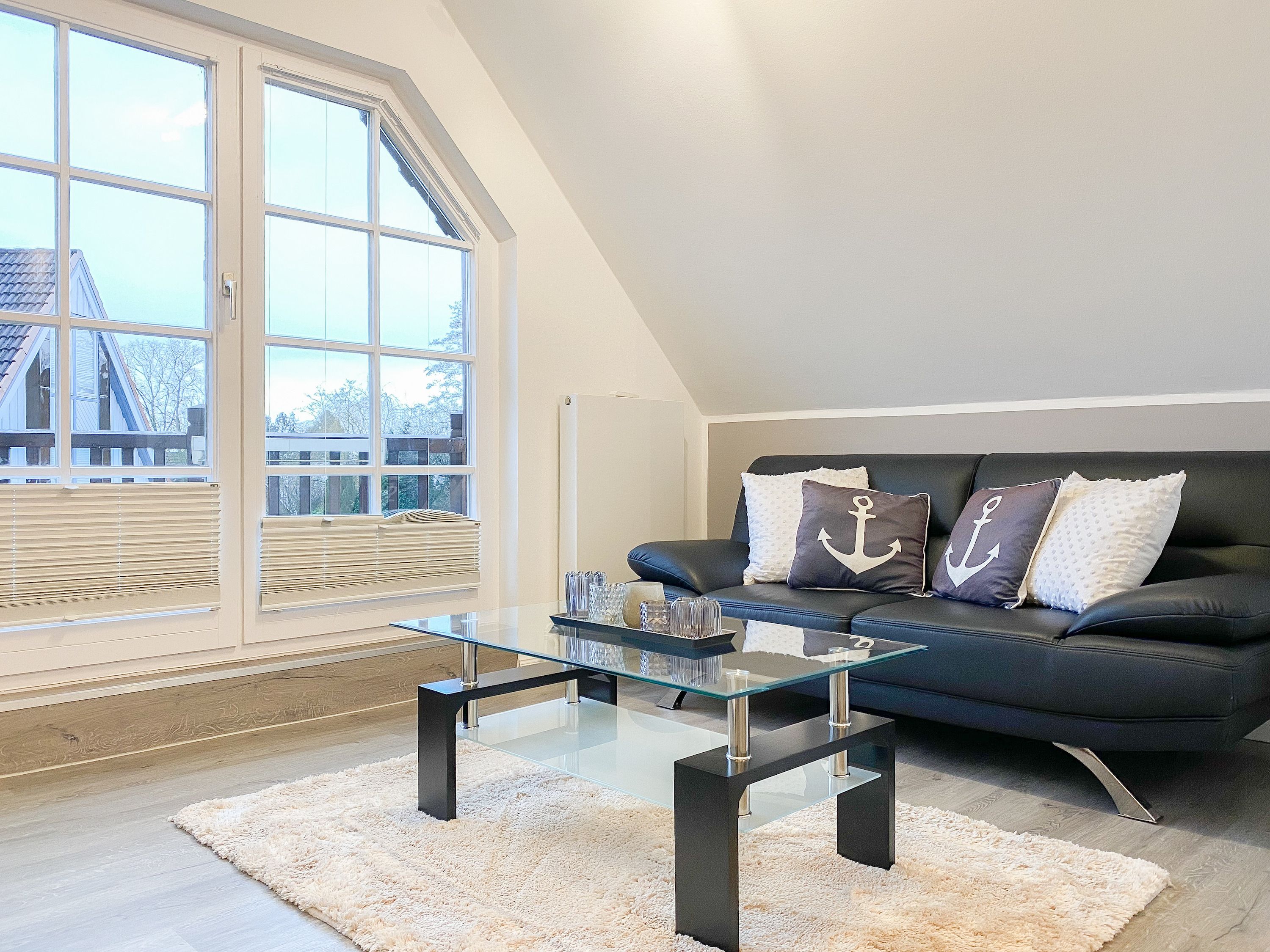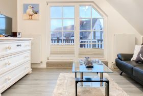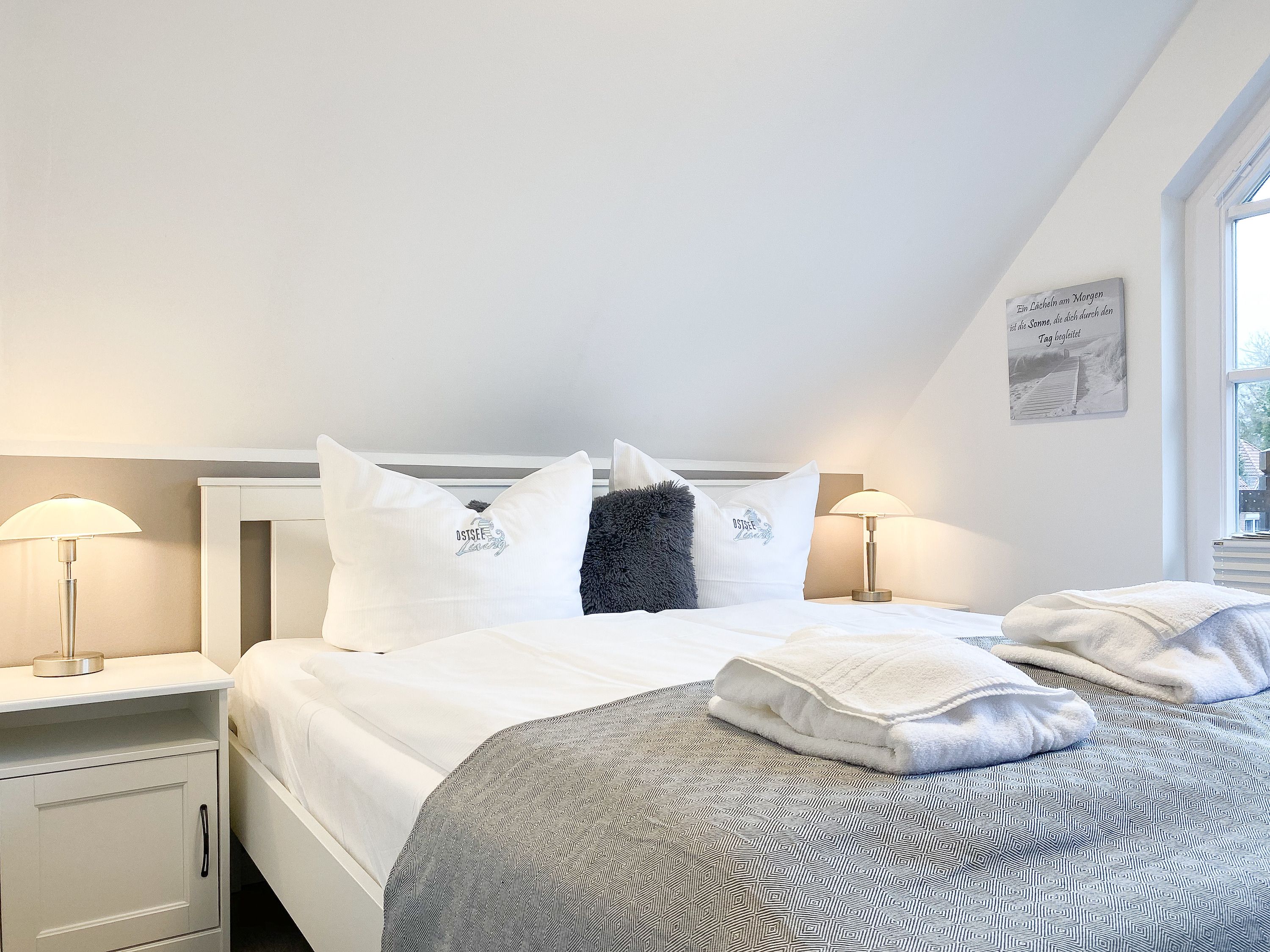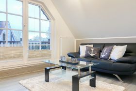 Die aufwendig renovierte und hochwertig ausgestattete Ferienwohnung bietet einen offenen Wohn- Essbereich mit Zugang zum möblierten Balkon. Hier können Sie bereits die ersten Sonnenstrahlen des Tages bei einer Tasse Kaffee genießen. Große Fensterelemente lassen viel Tageslicht in die Räume und liebevoll ausgesuchte Dekorationselemente sorgen für eine maritime Wohnatmosphäre. Die integrierte, neue Einbauküche ist hochwertig und bestens ausgerüstet. Das separate Schlafzimmer verfügt ebenfalls über einen Balkonzugang und ist mit einem Doppelbett, einem Kleiderschrank und Verdunkelungsplissees ausgestattet. Hier können Sie nach einem ereignisreichen Urlaubstag perfekt zur Ruhe kommen und ausgeruht in den neuen Tag starten. Das neue, moderne Bad verfügt über eine bodentiefe Dusche und einen Handtuchwärmer. TV, Radio und WLAN stehen selbstverständlich zur Verfügung, ebenso ein fester PKW Stellplatz direkt vor dem Haus. Fahrräder können trocken im Keller abgestellt werden.
