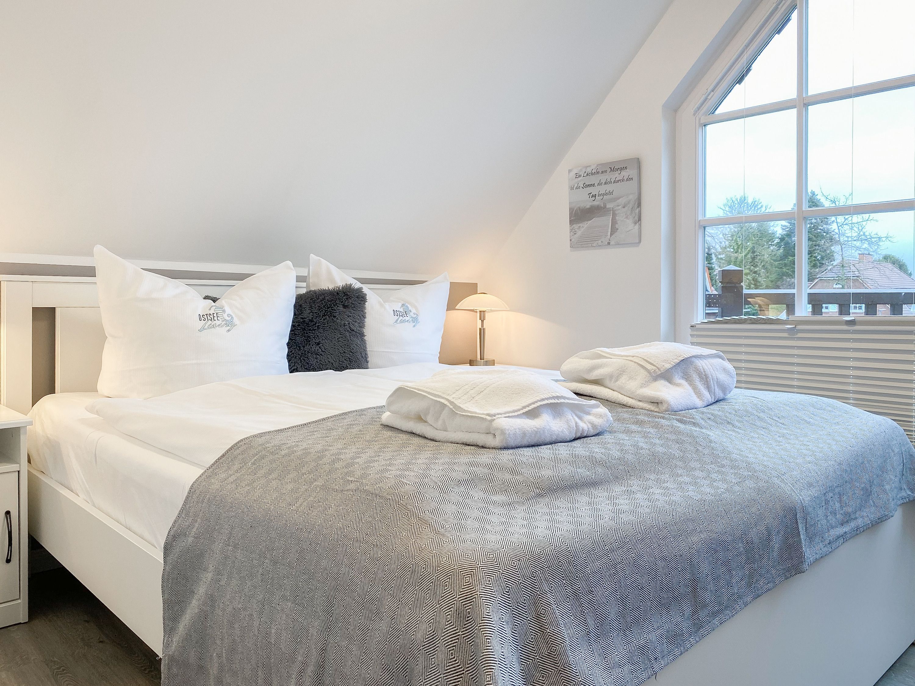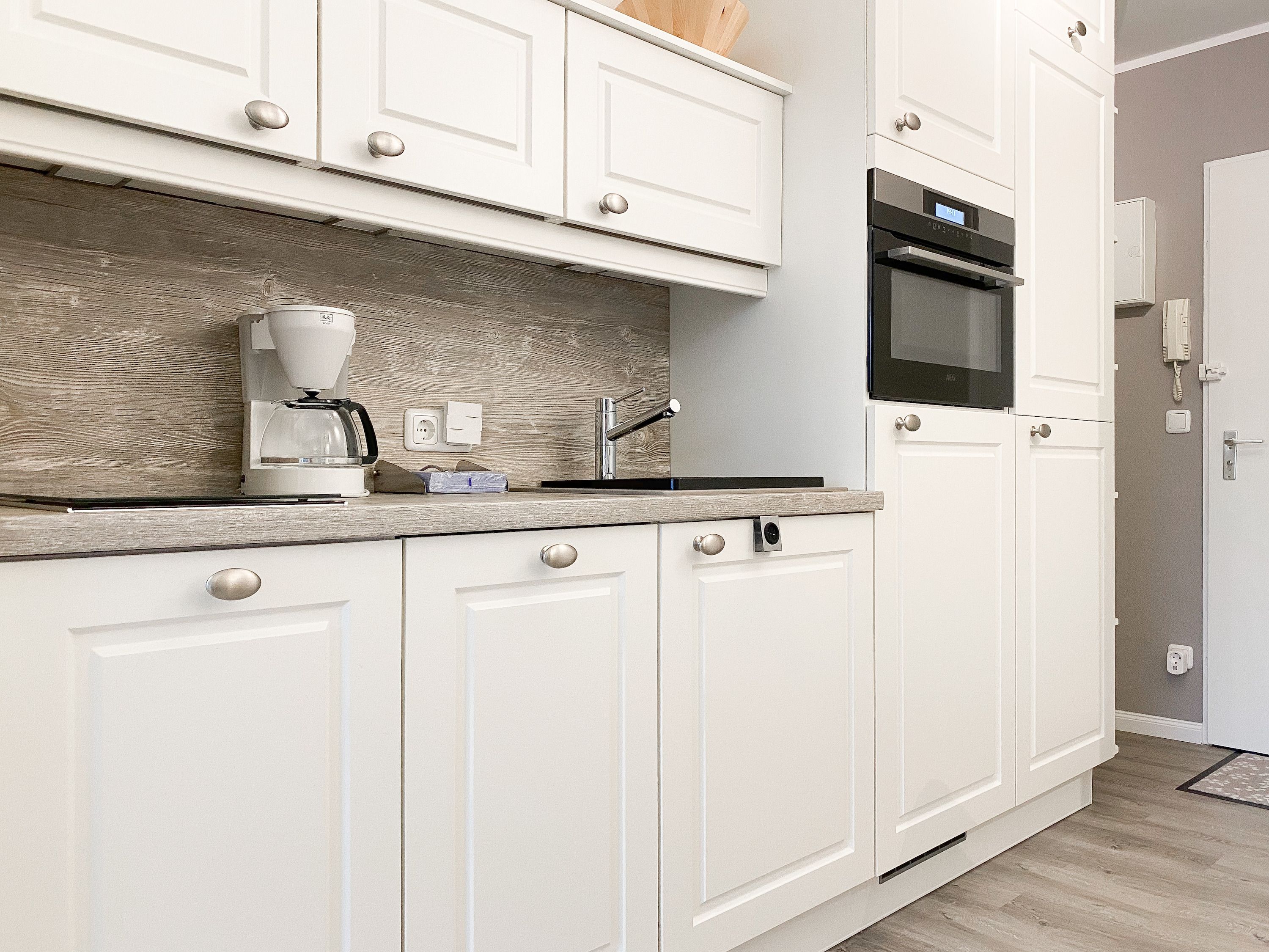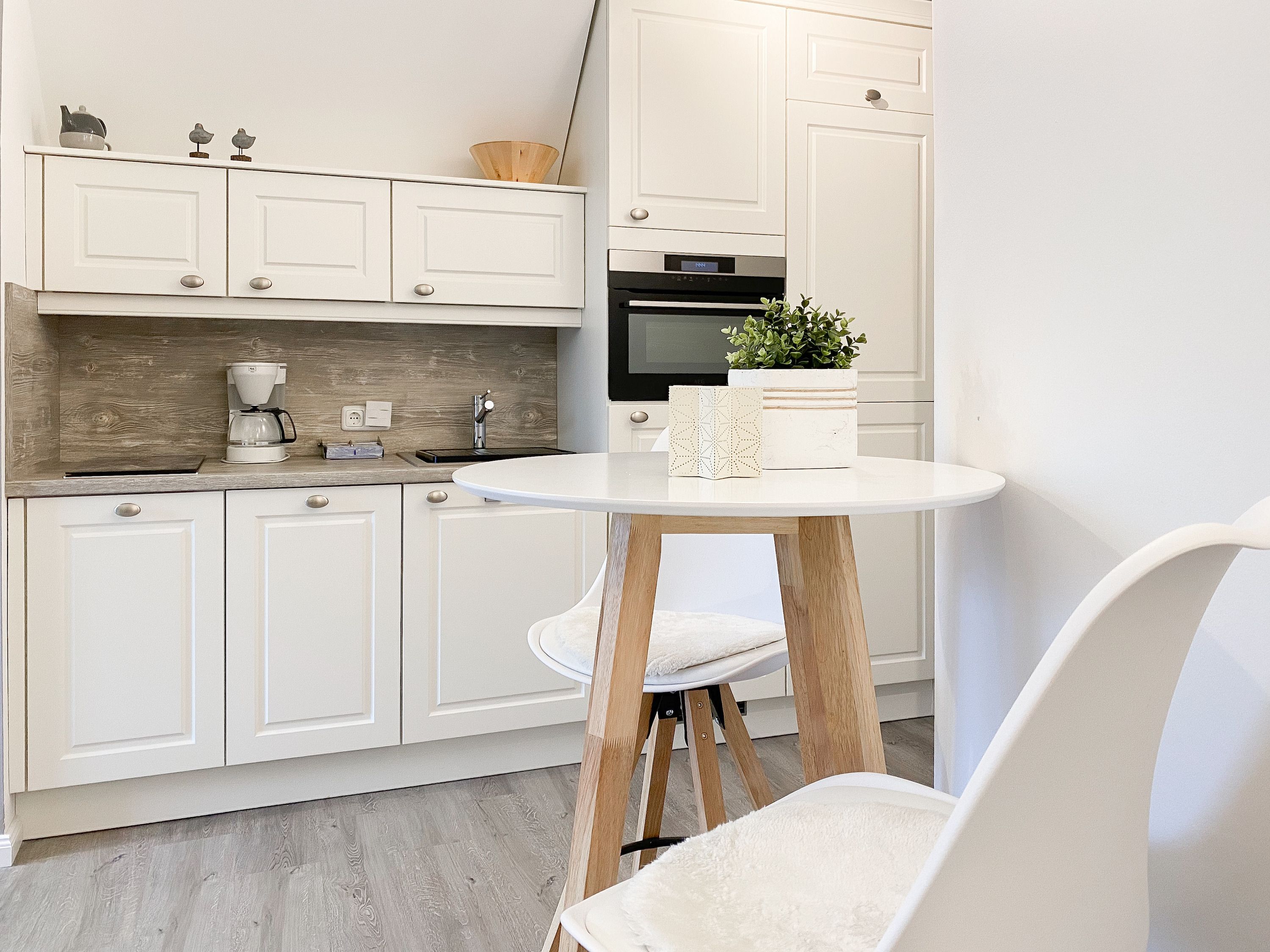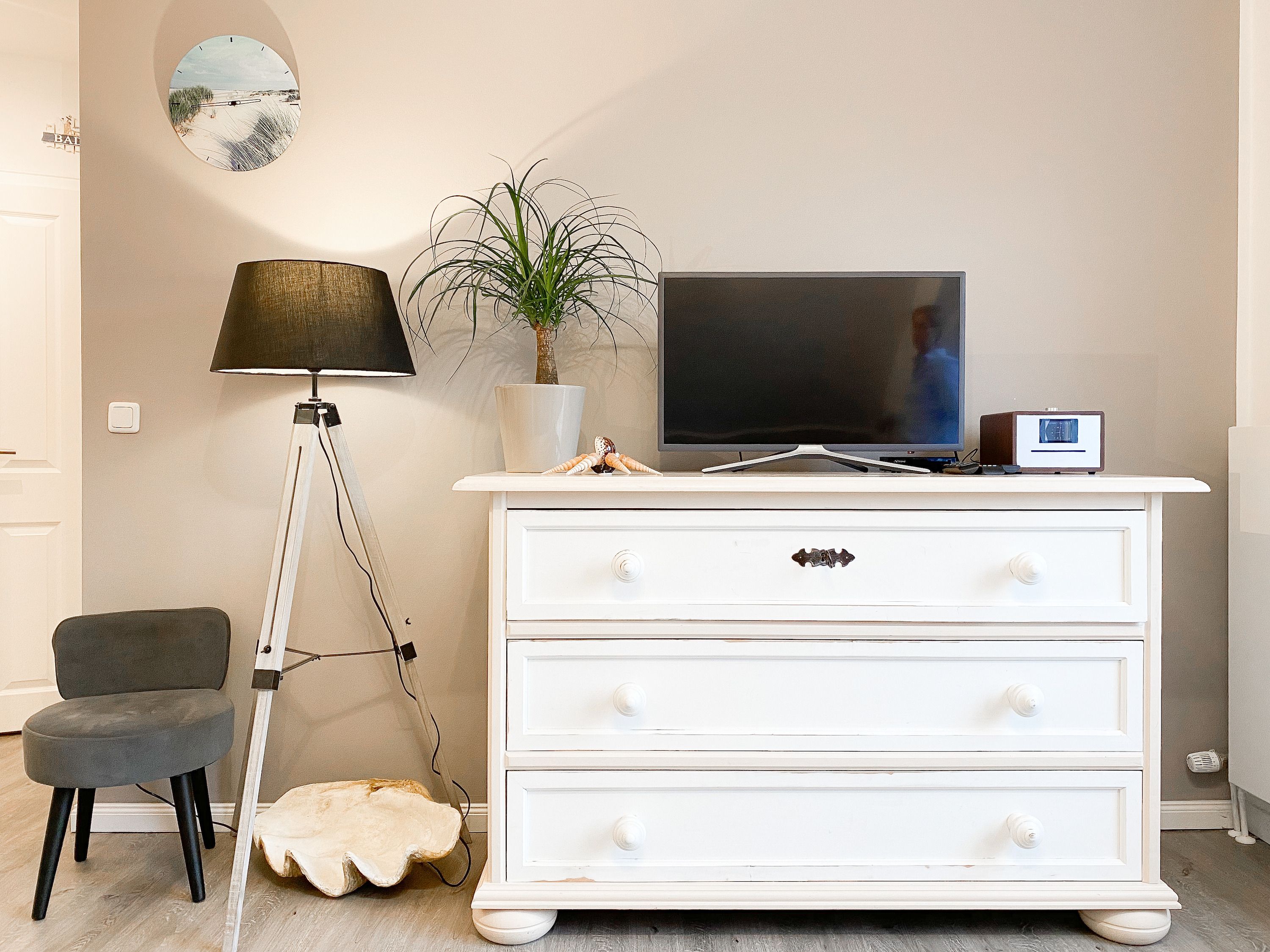 Die aufwendig renovierte und hochwertig ausgestattete Ferienwohnung bietet einen offenen Wohn- Essbereich mit Zugang zum möblierten Balkon. Hier können Sie bereits die ersten Sonnenstrahlen des Tages bei einer Tasse Kaffee genießen. Große Fensterelemente lassen viel Tageslicht in die Räume und liebevoll ausgesuchte Dekorationselemente sorgen für eine maritime Wohnatmosphäre. Die integrierte, neue Einbauküche ist hochwertig und bestens ausgerüstet. Das separate Schlafzimmer verfügt ebenfalls über einen Balkonzugang und ist mit einem Doppelbett, einem Kleiderschrank und Verdunkelungsplissees ausgestattet. Hier können Sie nach einem ereignisreichen Urlaubstag perfekt zur Ruhe kommen und ausgeruht in den neuen Tag starten. Das neue, moderne Bad verfügt über eine bodentiefe Dusche und einen Handtuchwärmer. TV, Radio und WLAN stehen selbstverständlich zur Verfügung, ebenso ein fester PKW Stellplatz direkt vor dem Haus. Fahrräder können trocken im Keller abgestellt werden.