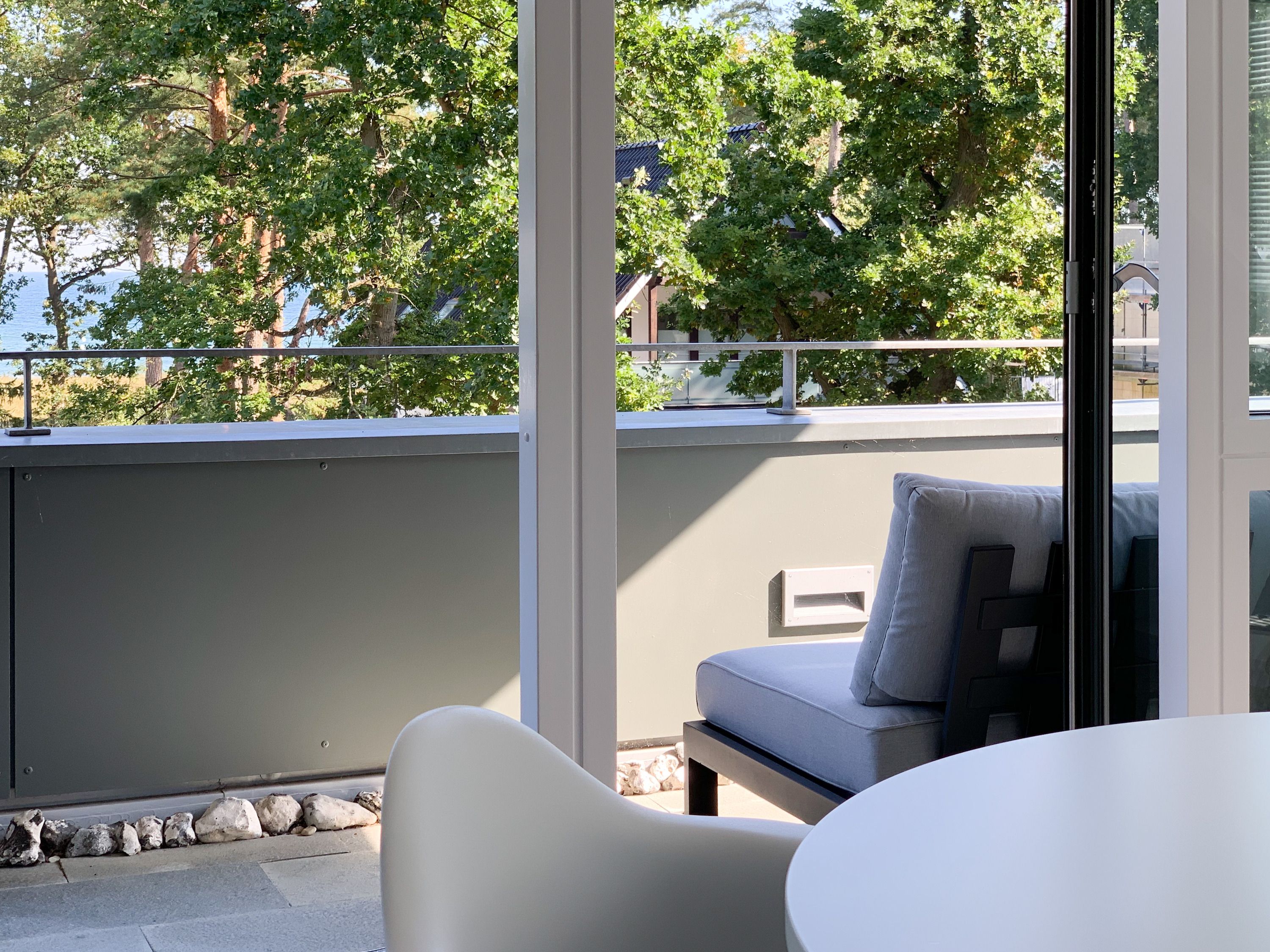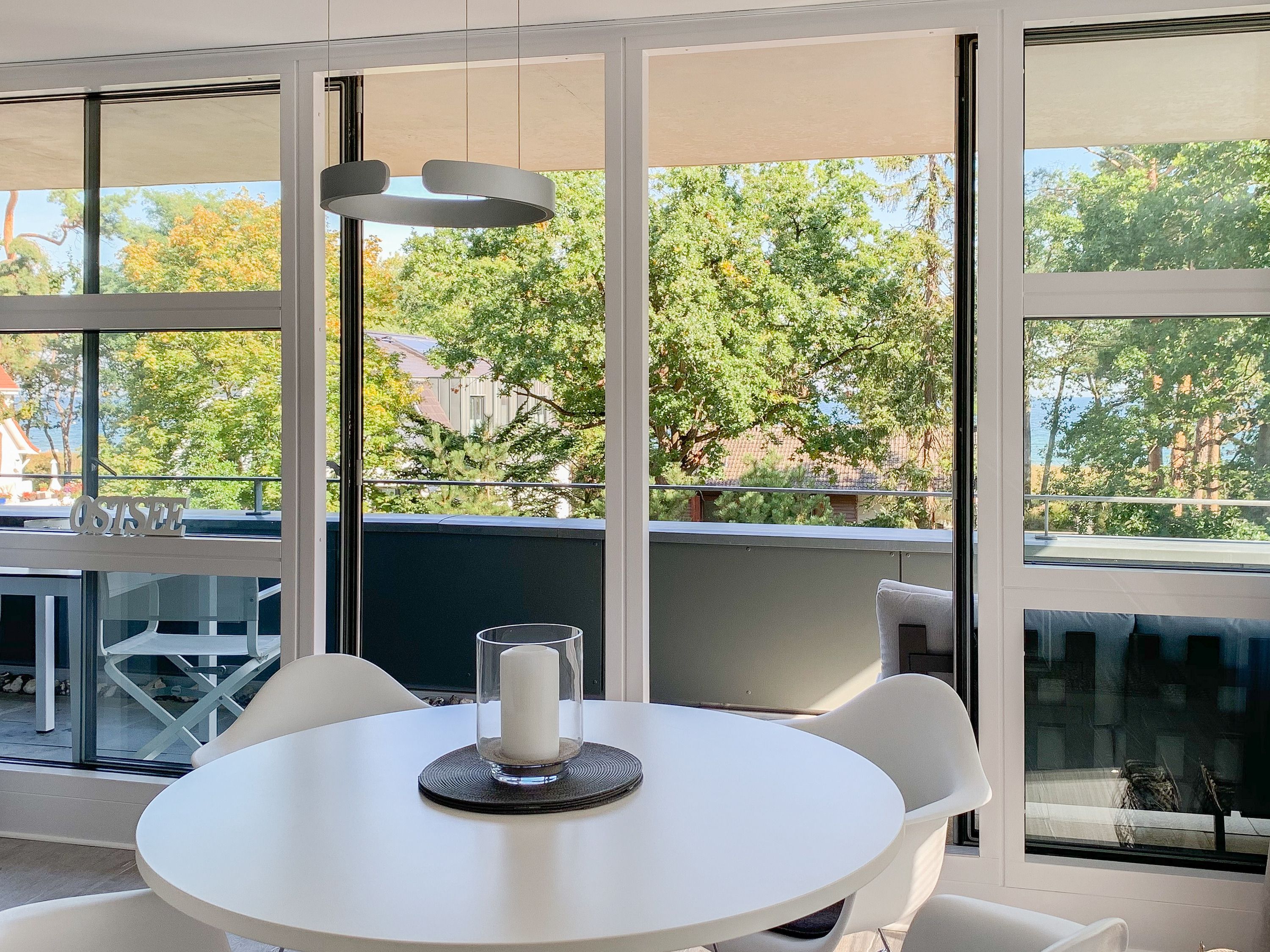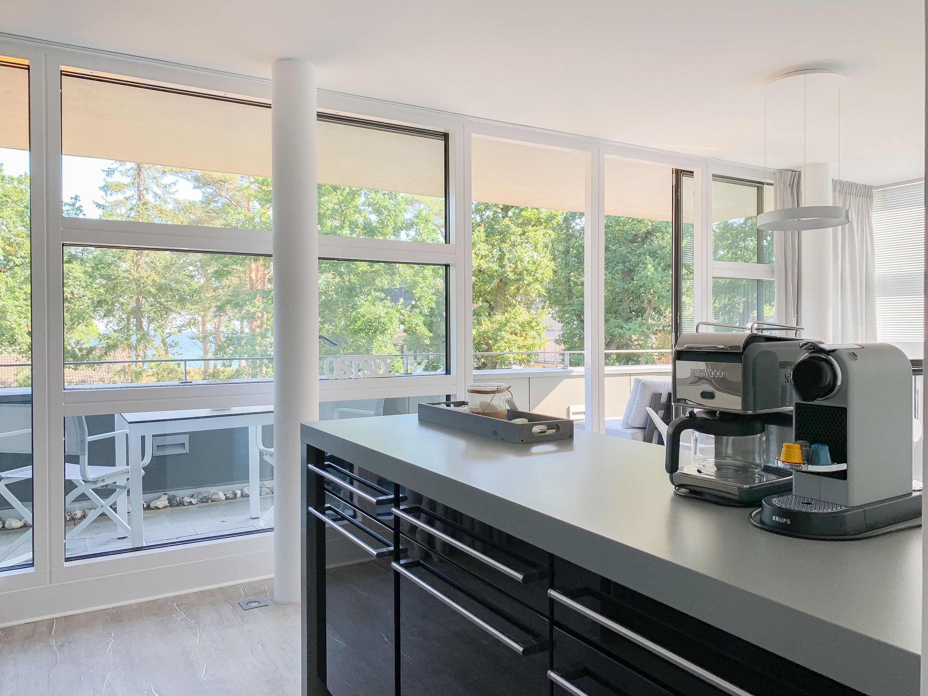 Die Ferienwohnung „Sea View“ bietet zeitgemäßen Luxus für 2 Personen. Große Fensterflächen sorgen für helle Räumlichkeiten mit schönem Blick bis auf die Ostsee. Der großzügige, überdachte Balkon ist mit Garten- und Loungesofa ausgestattet und erstreckt sich über den gesamten Wohnbereich. Die Ferienwohnung verfügt über ein Schlafzimmer mit Boxspringbett und begehbarem Kleiderschrank, ein modernes Duschbad und einen offen gestalteten Wohn-, Essbereich mit integrierter Einbauküche. Die absolut hochwertige, designorientierte Einrichtung machen dieses Objekt zu etwas Besonderem.