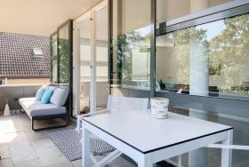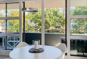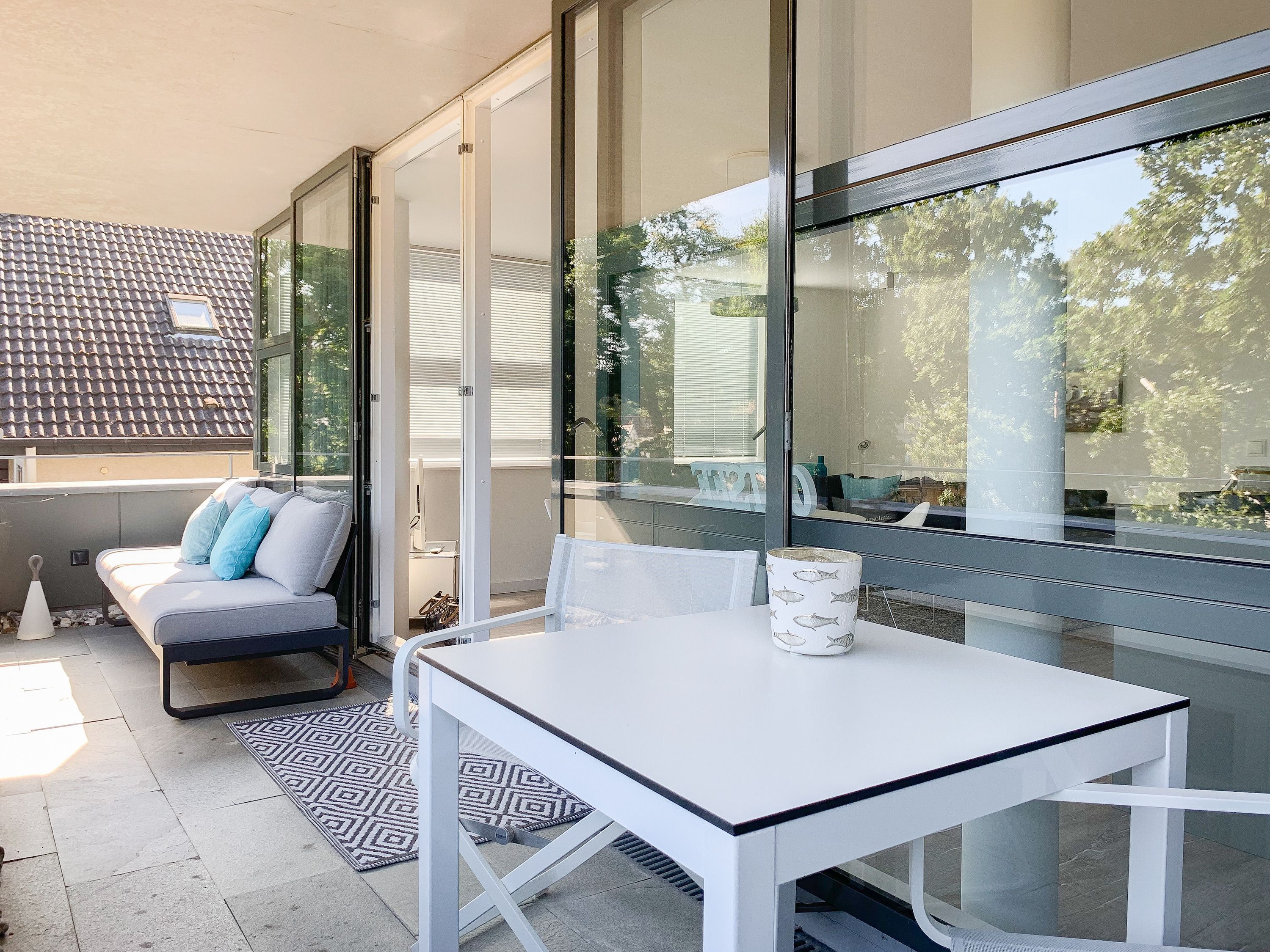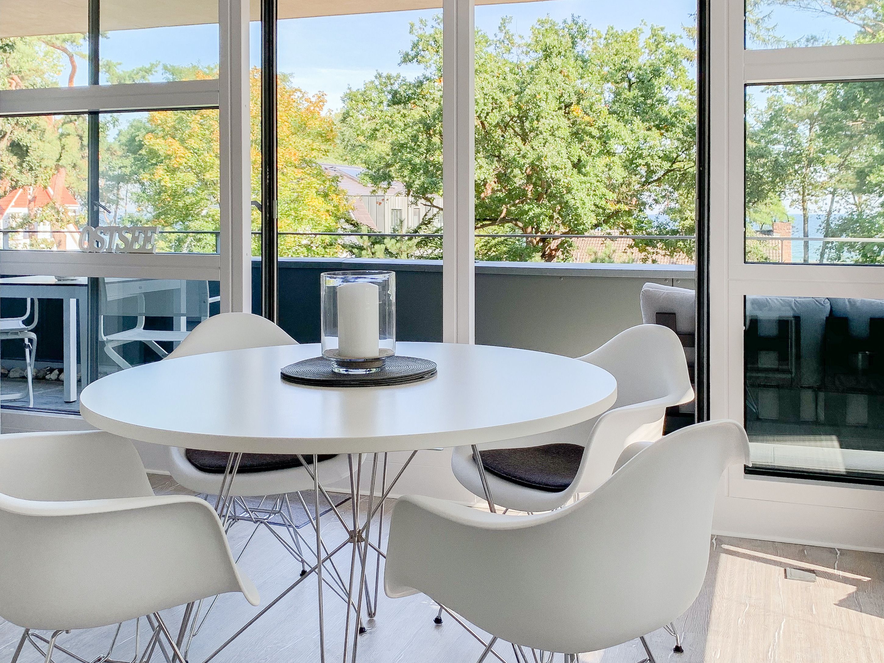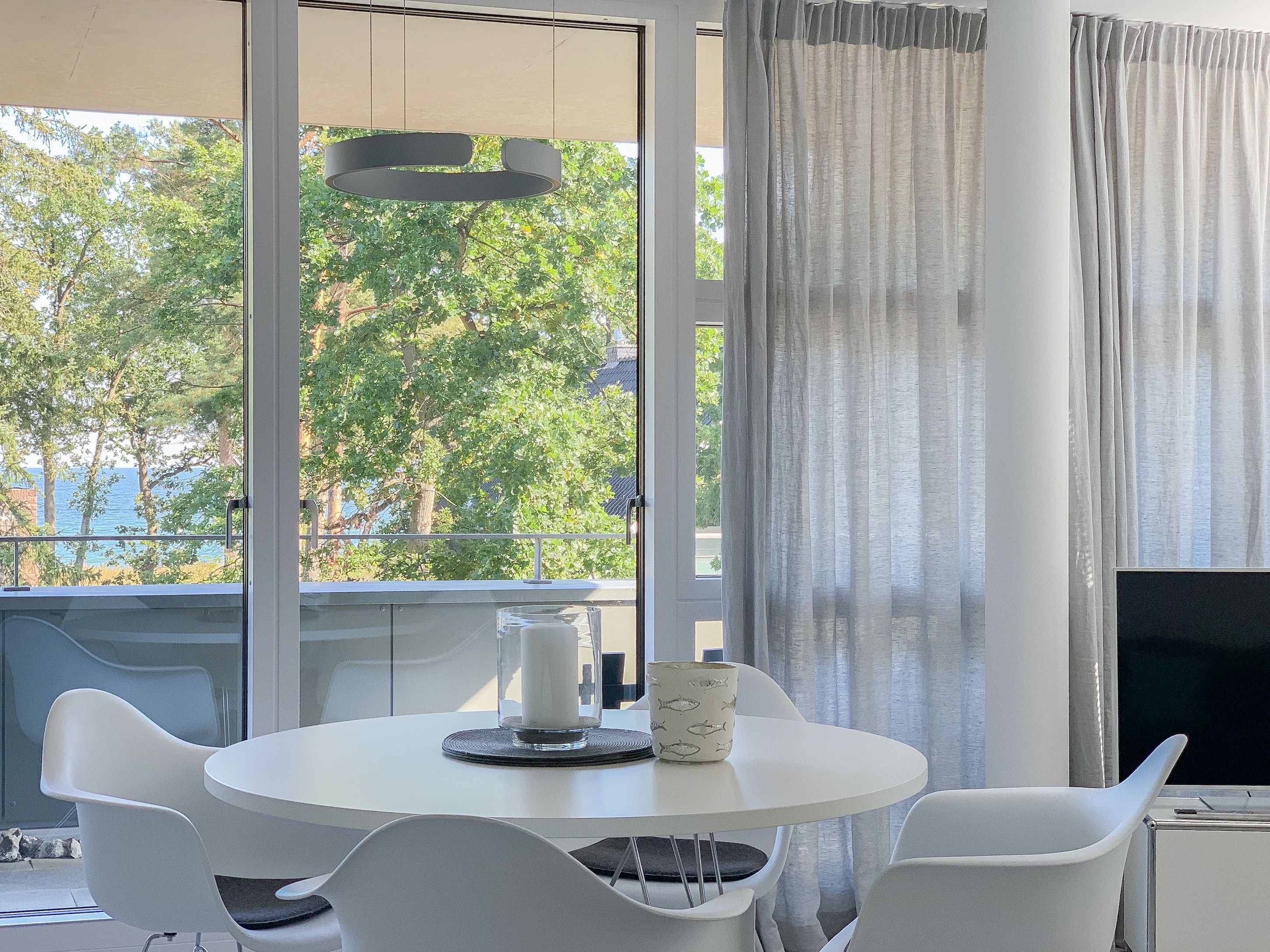 Die Ferienwohnung „Sea View“ bietet zeitgemäßen Luxus für 2 Personen. Große Fensterflächen sorgen für helle Räumlichkeiten mit schönem Blick bis auf die Ostsee. Der großzügige, überdachte Balkon ist mit Garten- und Loungesofa ausgestattet und erstreckt sich über den gesamten Wohnbereich. Die Ferienwohnung verfügt über ein Schlafzimmer mit Boxspringbett und begehbarem Kleiderschrank, ein modernes Duschbad und einen offen gestalteten Wohn-, Essbereich mit integrierter Einbauküche. Die absolut hochwertige, designorientierte Einrichtung machen dieses Objekt zu etwas Besonderem.