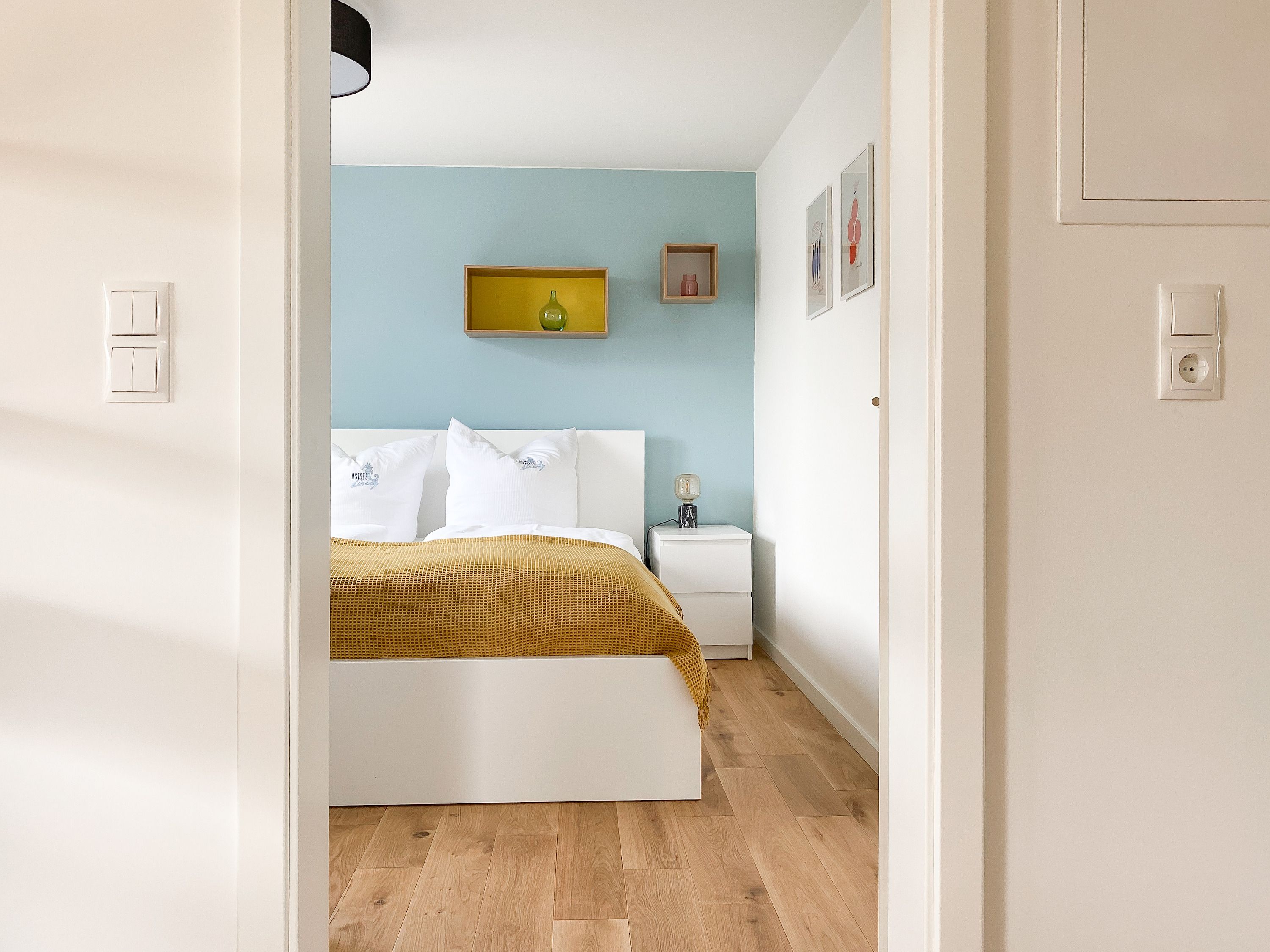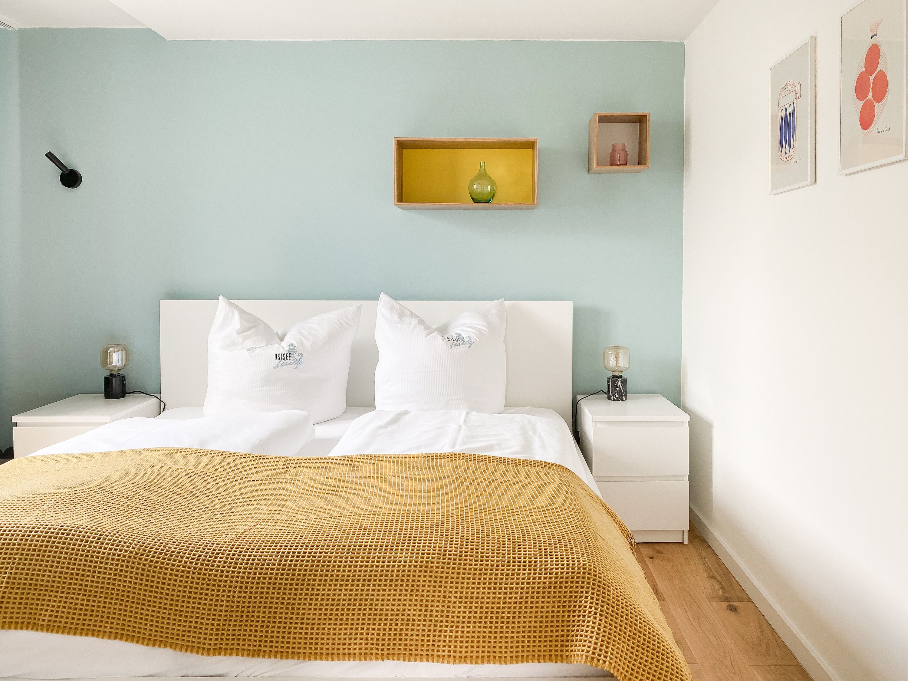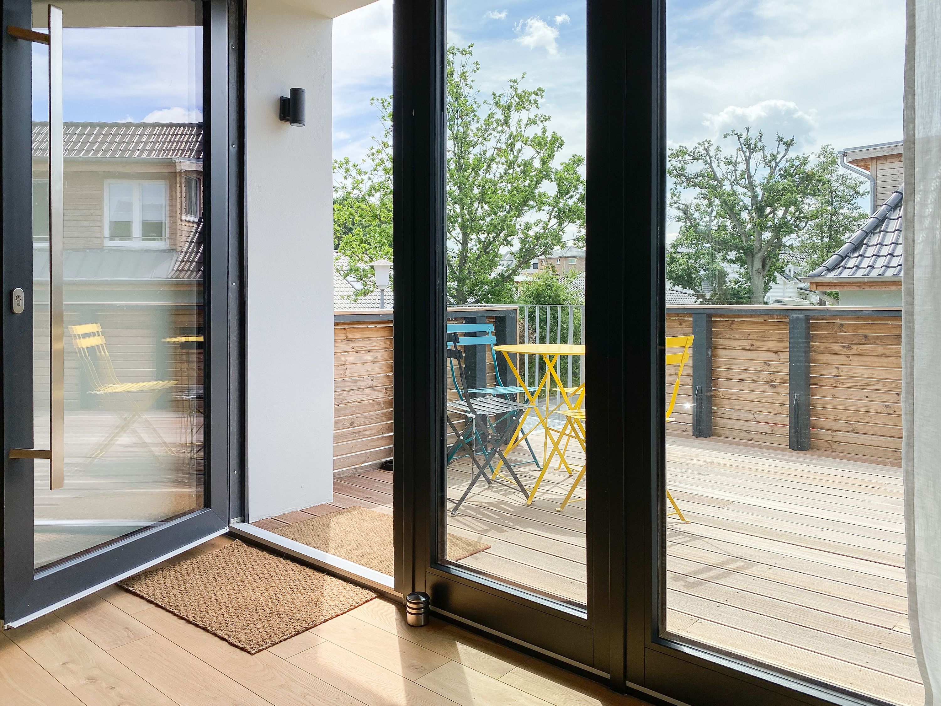 Es erwartet Sie eine wunderschöne Ferienwohnung im hyggeligen Wohnstil, der Gemütlichkeit und Wohlbefinden vermittelt. Natürliche Materialien, warme Farben und ein durchdachtes Raumkonzept schaffen eine ganz besondere Atmosphäre, um wohl verdiente Urlaubstage zu genießen. Der lichtdurchflutete Wohnbereich ist mit einem gemütlichen Ecksofa und TV ausgestattet. Die vorgelagerte Holzveranda in Südwest Ausrichtung ist großzügig angelegt und bietet ein tolles Ambiente für geselliges Zusammensein. Der anschließende Essbereich bietet ausreichend Platz für 6 Personen und fügt sich harmonisch in die top ausgestattete Wohnküche ein. Es gibt insgesamt 3 Schlafzimmer. Schlafzimmer 1 ist mit einem Doppelbett (180x200) und Verdunkelungsvorhängen, Schlafzimmer 2 mit einem Einzelbett (90x200) mit Auszug (80x175) und black out Rollo eingerichtet. Das dritte Schlafzimmer (Palettenbett 160x200 und black out Rollos) ist über eine Treppe vom Flur zu erreichen und als halboffene Galerie gestaltet. Im lichtdurchfluteten Bad wurde jeder qm optimal genutzt und ein Doppelwaschtisch, WC und eine Walk In Dusche untergebracht. WLAN steht selbstverständlich kostenlos zur Verfügung. Eine Waschmaschine ist in der Küche integriert.