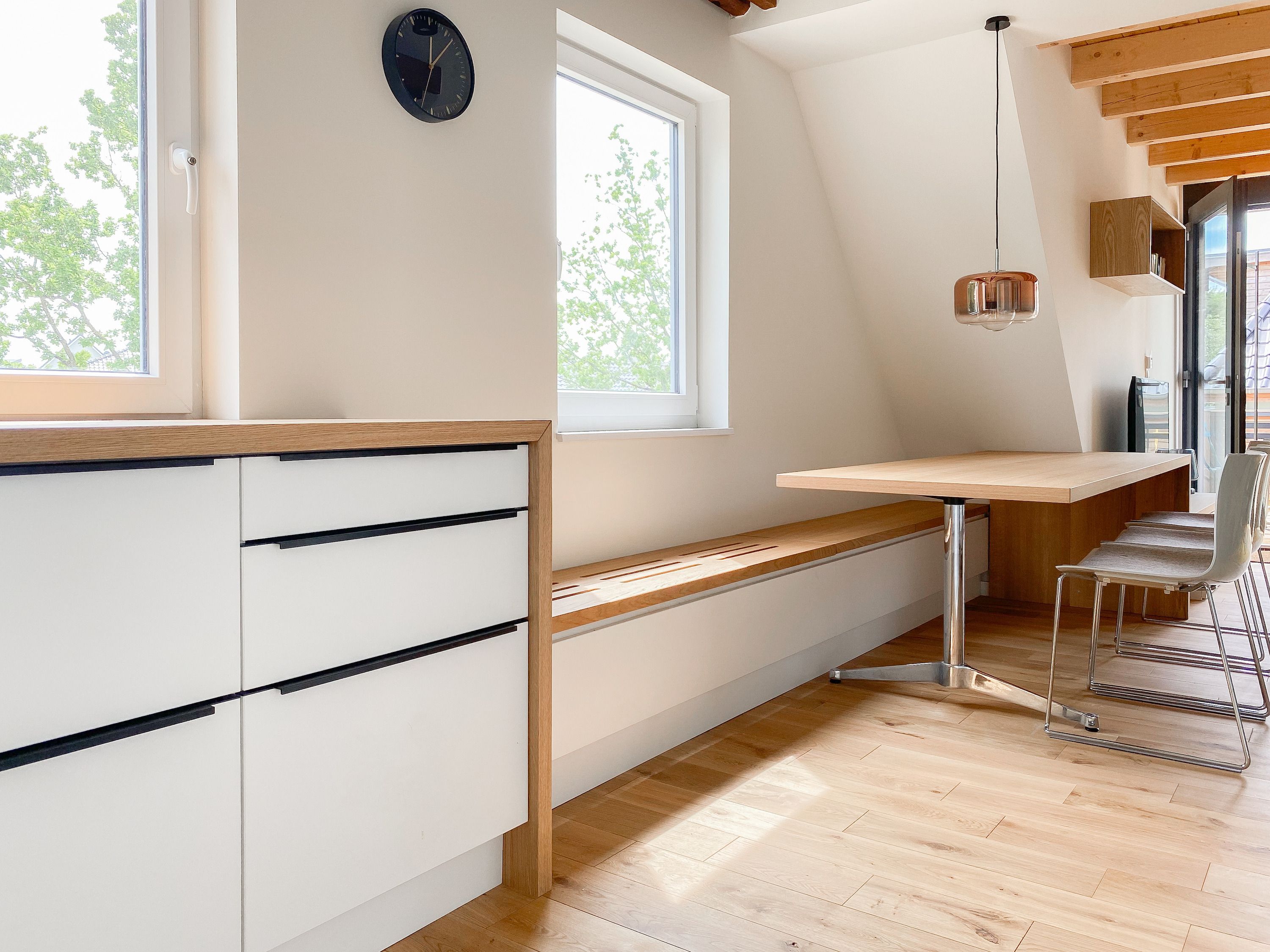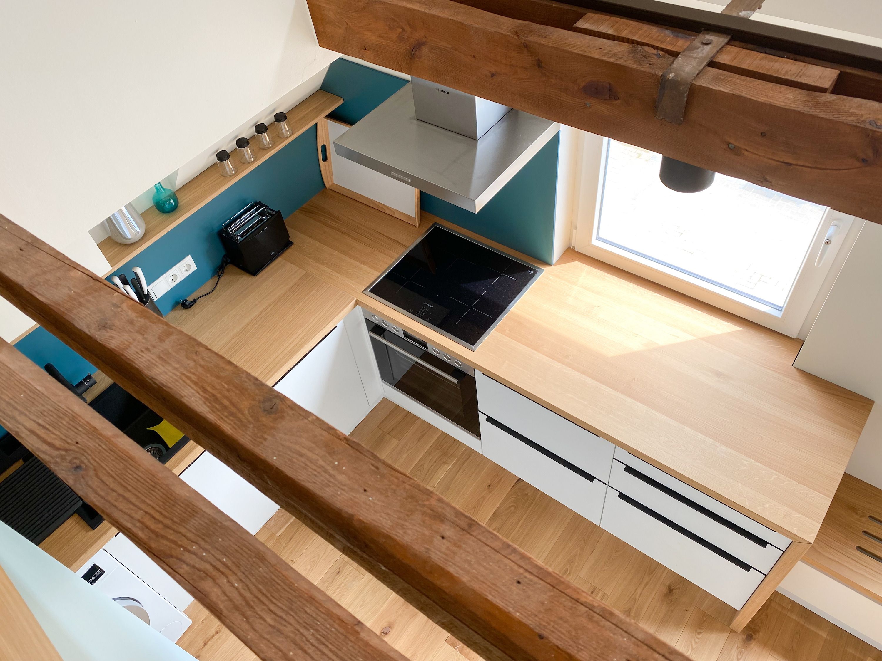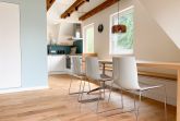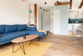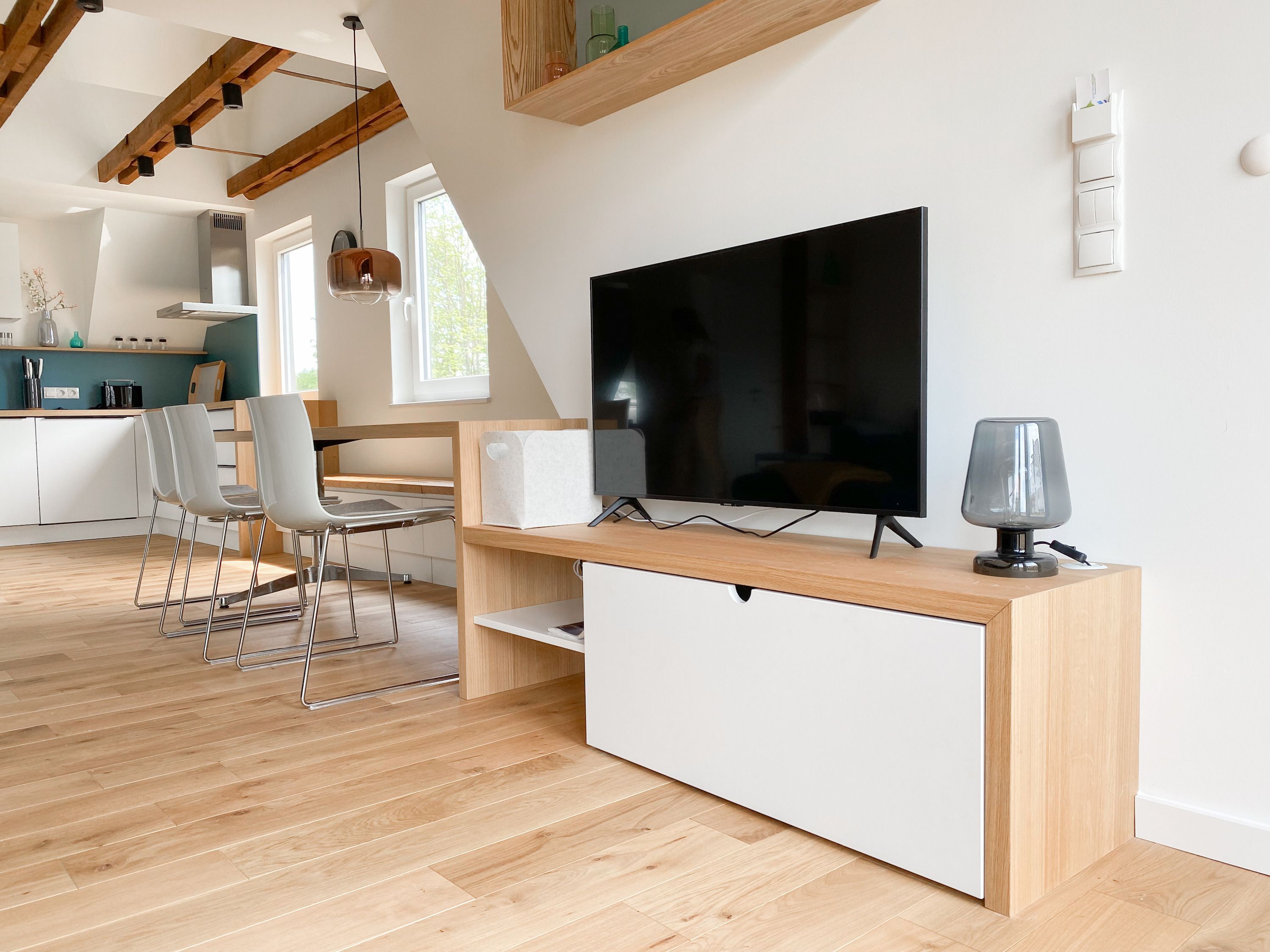 Es erwartet Sie eine wunderschöne Ferienwohnung im hyggeligen Wohnstil, der Gemütlichkeit und Wohlbefinden vermittelt. Natürliche Materialien, warme Farben und ein durchdachtes Raumkonzept schaffen eine ganz besondere Atmosphäre, um wohl verdiente Urlaubstage zu genießen. Der lichtdurchflutete Wohnbereich ist mit einem gemütlichen Ecksofa und TV ausgestattet. Die vorgelagerte Holzveranda in Südwest Ausrichtung ist großzügig angelegt und bietet ein tolles Ambiente für geselliges Zusammensein. Der anschließende Essbereich bietet ausreichend Platz für 6 Personen und fügt sich harmonisch in die top ausgestattete Wohnküche ein. Es gibt insgesamt 3 Schlafzimmer. Schlafzimmer 1 ist mit einem Doppelbett (180x200) und Verdunkelungsvorhängen, Schlafzimmer 2 mit einem Einzelbett (90x200) mit Auszug (80x175) und black out Rollo eingerichtet. Das dritte Schlafzimmer (Palettenbett 160x200 und black out Rollos) ist über eine Treppe vom Flur zu erreichen und als halboffene Galerie gestaltet. Im lichtdurchfluteten Bad wurde jeder qm optimal genutzt und ein Doppelwaschtisch, WC und eine Walk In Dusche untergebracht. WLAN steht selbstverständlich kostenlos zur Verfügung. Eine Waschmaschine ist in der Küche integriert.