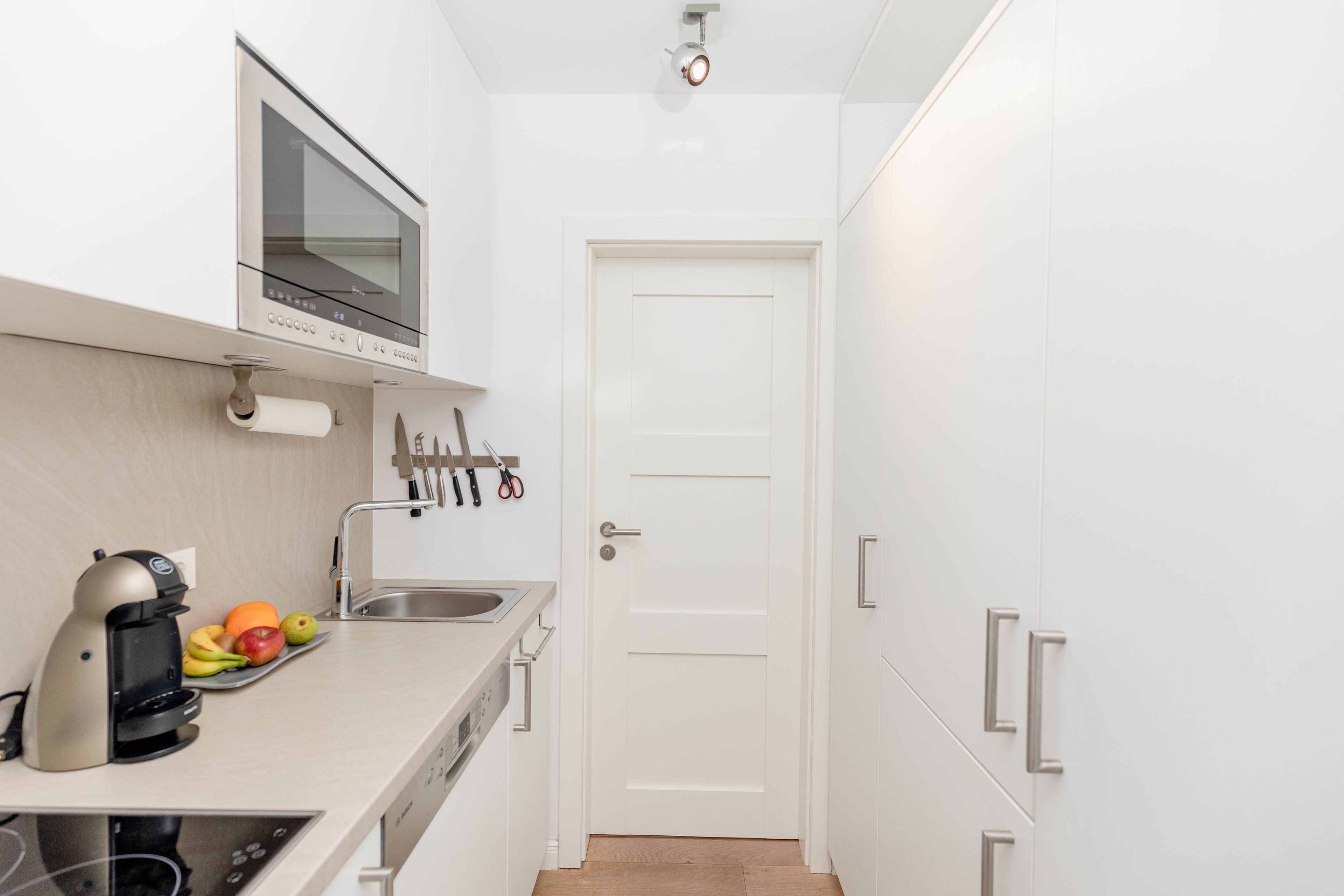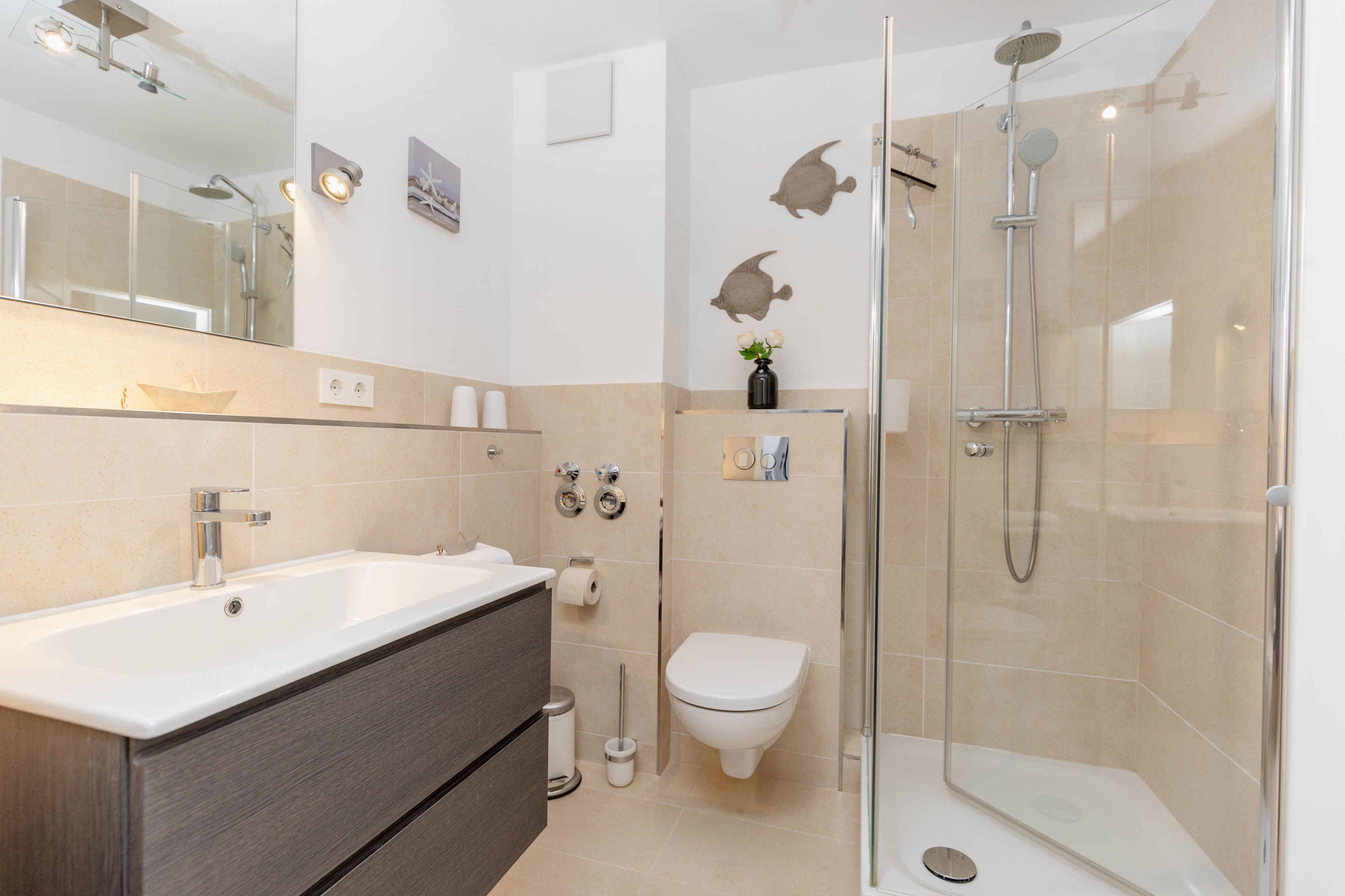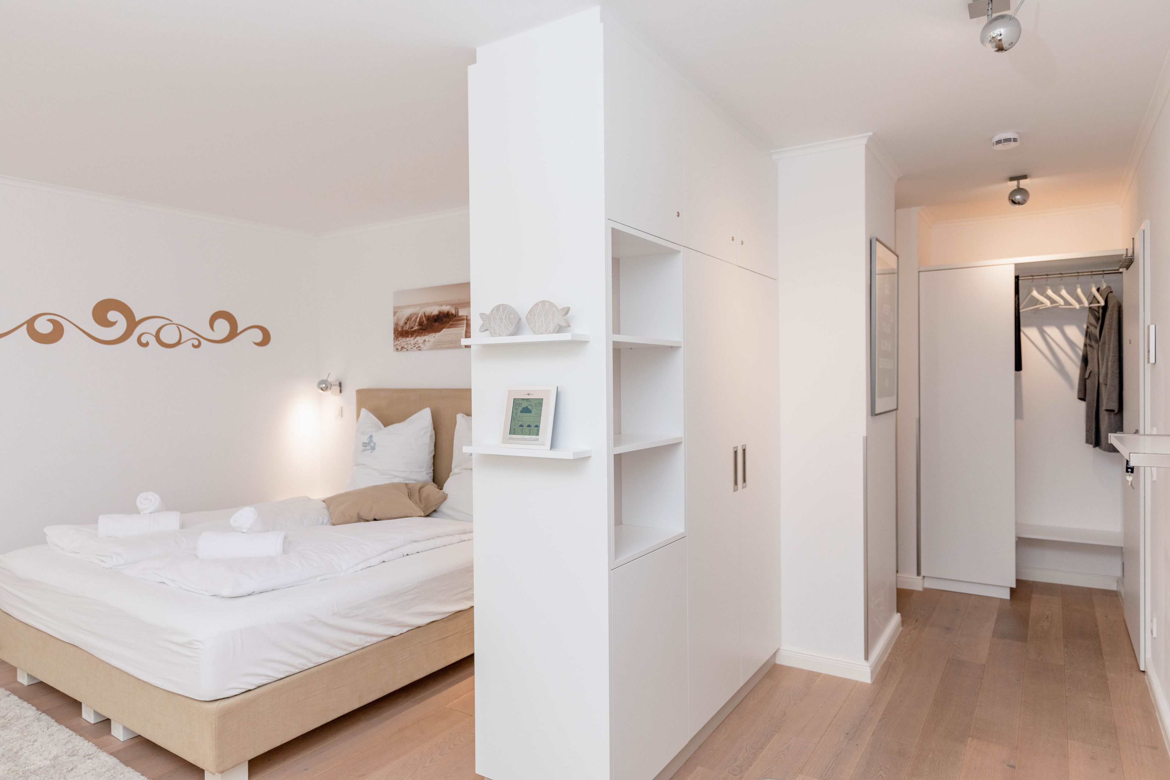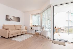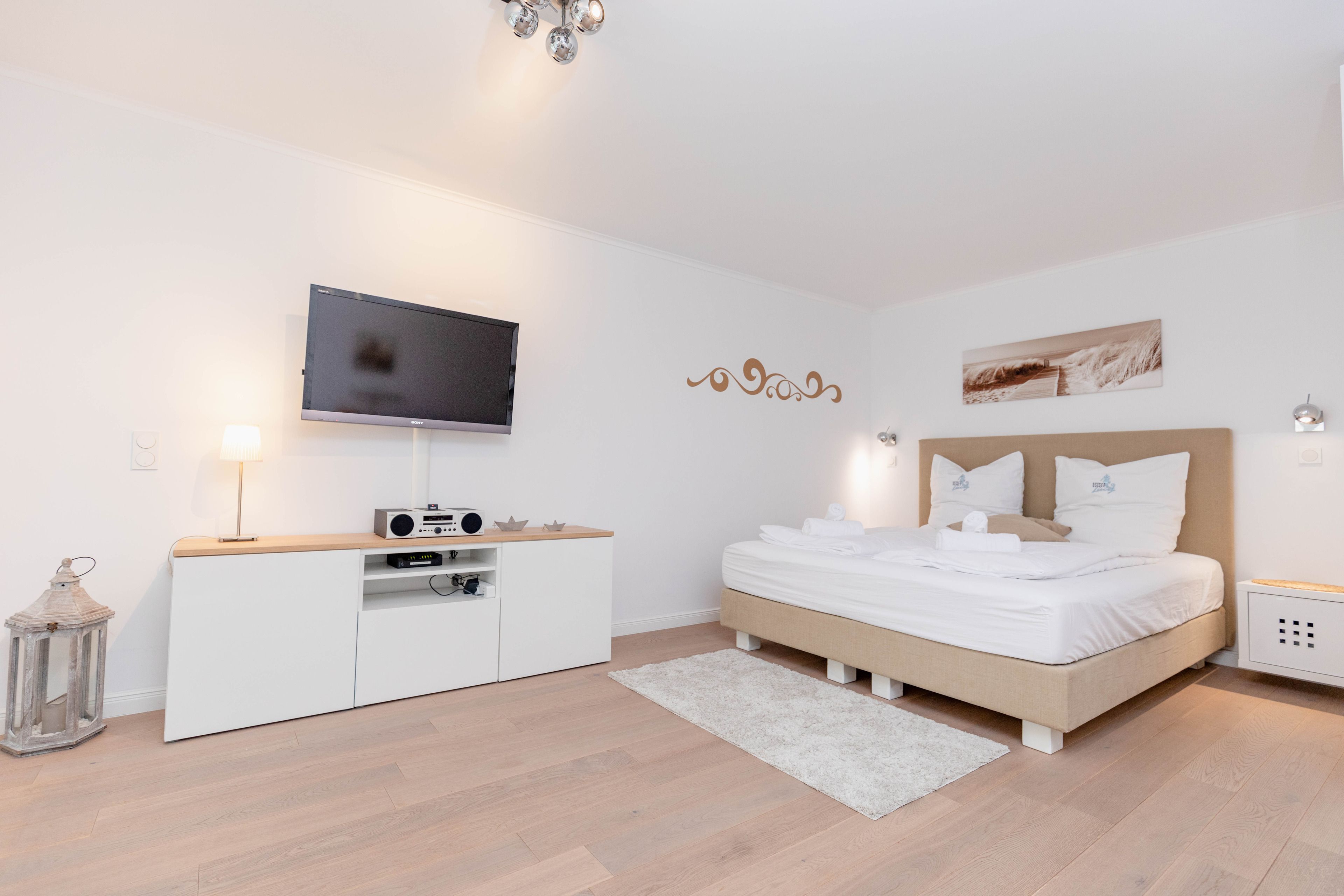 Bodentiefe Fensterelemente, Echtholzparkett und die hochwertige Einrichtung schaffen eine helle und freundliche Wohnatmosphäre. Die 42 qm wurden optimal genutzt und bieten ausreichend Platz für 2 Personen. Es steht ein geschmackvoller, großzügiger Wohn- Schlafbereich mit einem bequemen Sofa  und ein Essbereich für 2 Personen zur Verfügung. Das hochwertige Luxusbett aus der Bettenmanufaktur Sleep&Dream superior in Hotelqualität (180x200) ist besonders hervorzuheben und Garant für einen erholsamen Schlaf. Unterhaltung bieten der Sony TV 50 Zoll (127 cm) schwenkbar mit USB Anschluß, Blue-Ray Player, Hifi-Anlage mit Bluetooth und kostenloser Internetzugang über WLAN. Die moderne individuell eingerichtete Küchenzeile ist bestens ausgestattet und verfügt über Geschirrspülmaschine und Mikrowelle mit Backfunktion.  Das moderne, geräumige Bad verfügt über eine Dusche, Waschtisch, WC, Handtuchwärmer und Fön. Tiefgaragenstellplatz (Einfahrtshöhe 1,75 m), Aufzug, Fahrradkeller (eine Platzgarantie für Ihre Fahrräder besteht nicht) sowie Waschmaschine und Trockner (Münzgeräte) sind vorhanden.