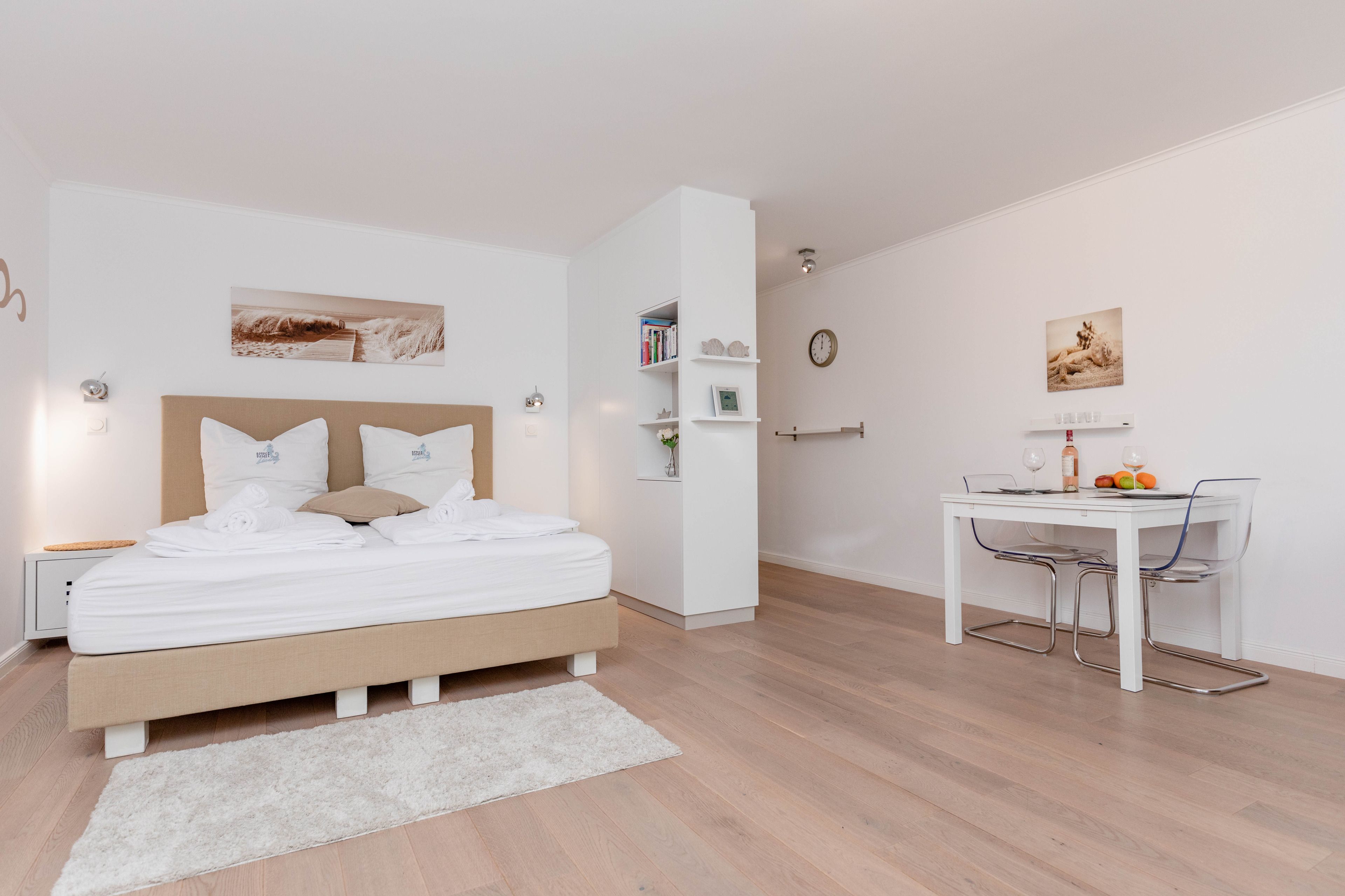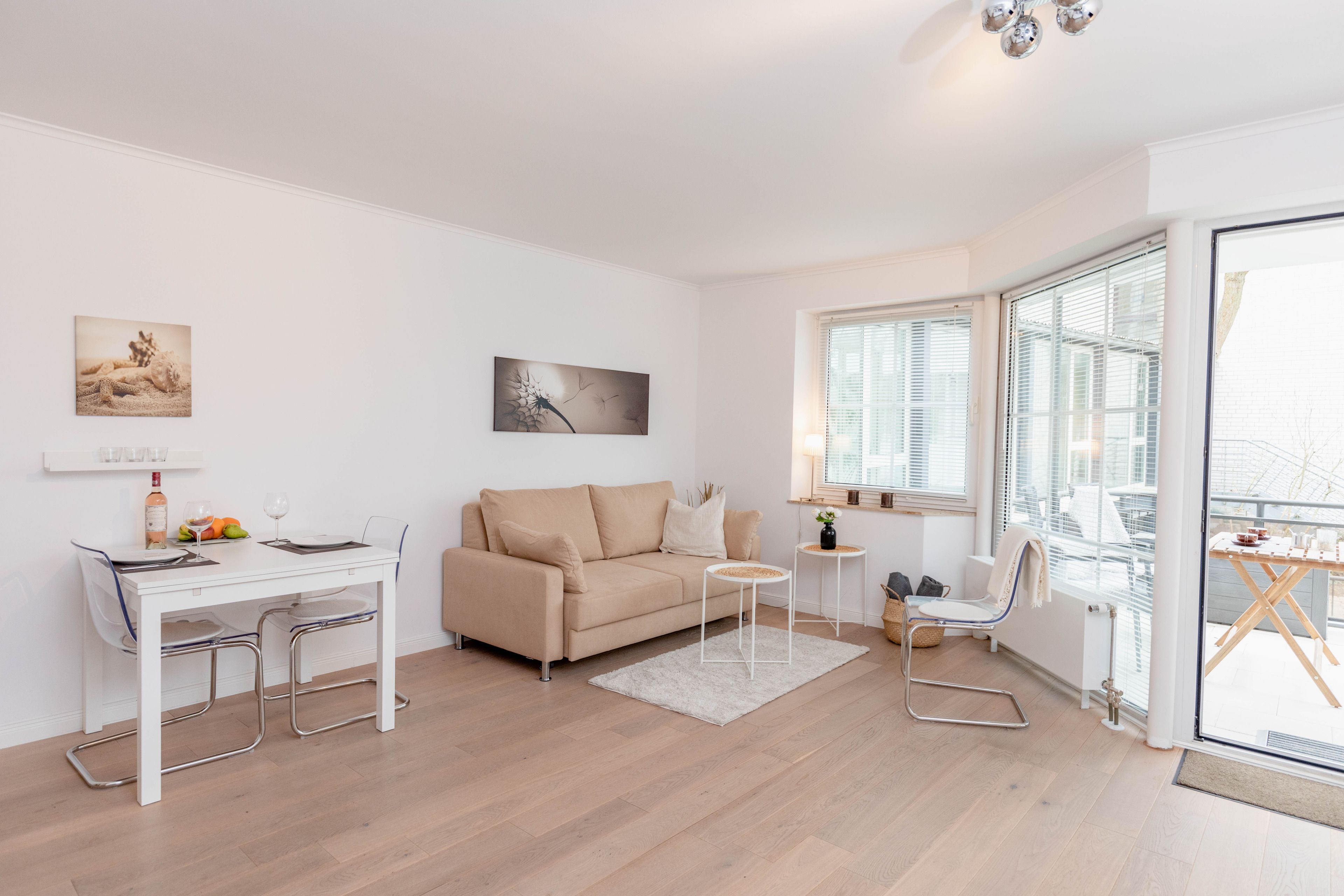 Das hochwertige Studio befindet sich im Erdgeschoss eines kernsanierten Hauses in Timmendorfer Strand nur wenige Meter von der Ostsee und dem Strand entfernt. Eine schöne, teilweise überdachte Terrasse von  lädt zu jeder Tageszeit zum Entspannen ein. Man kann die Ostsee hören und riechen.