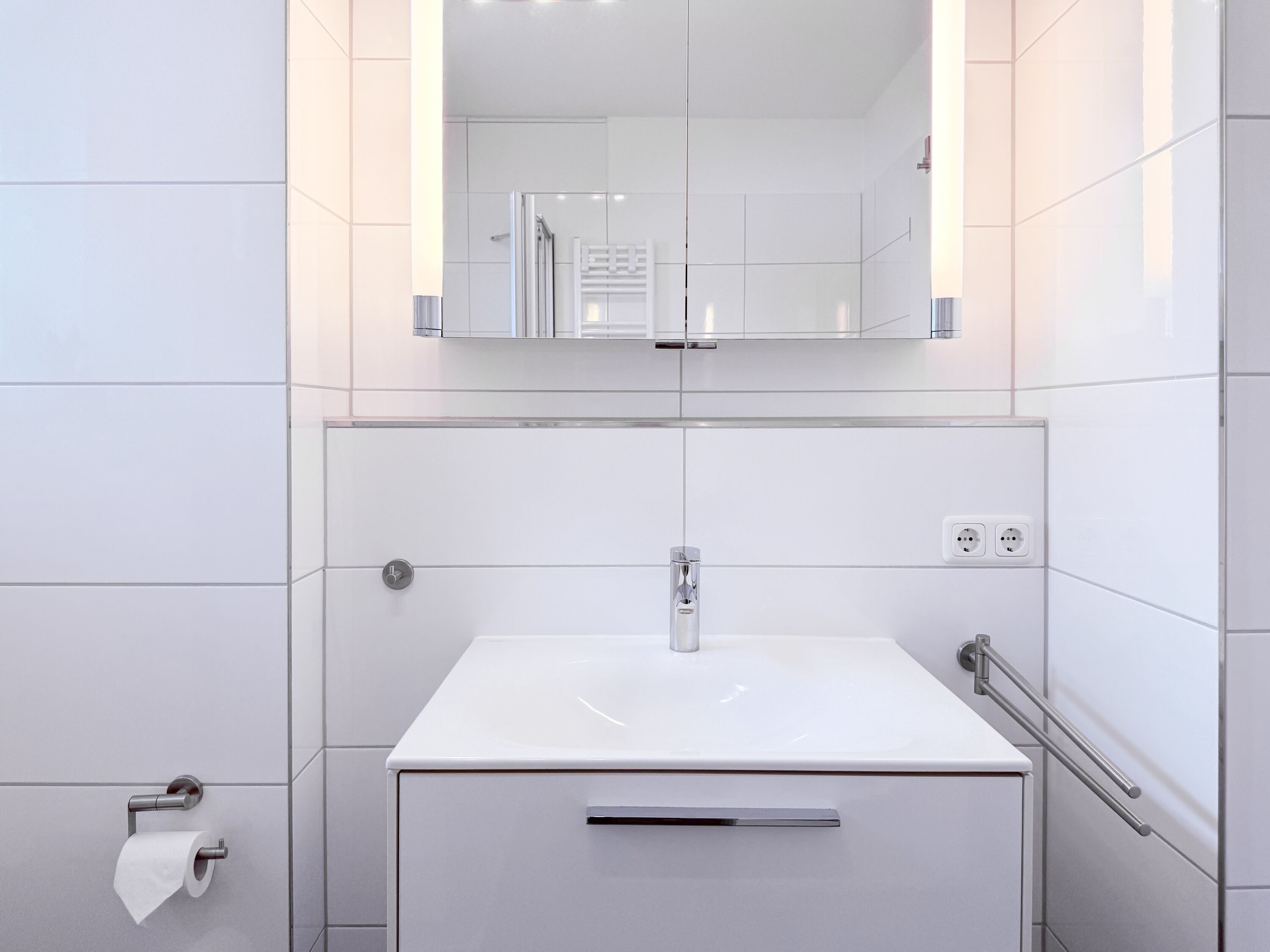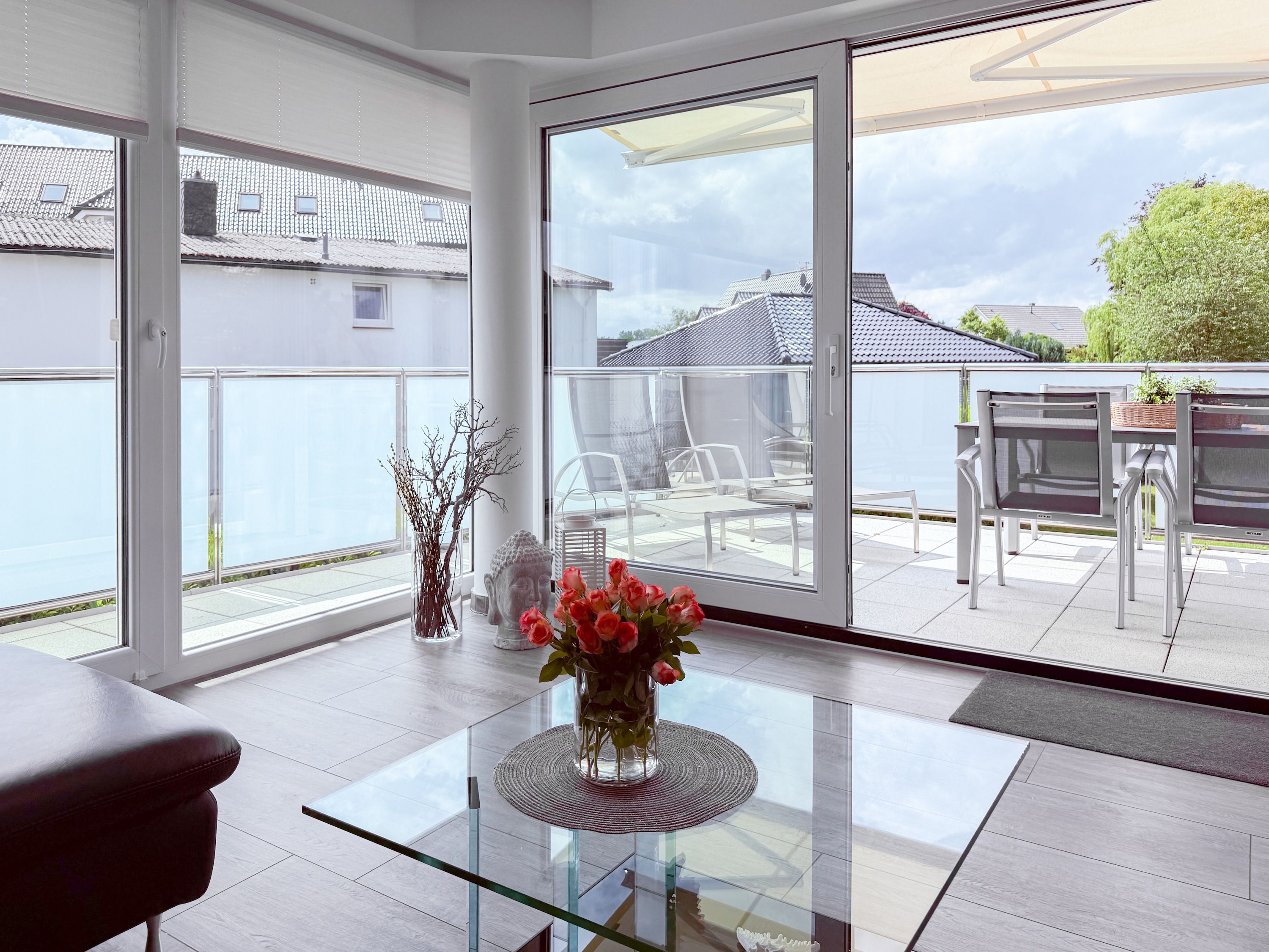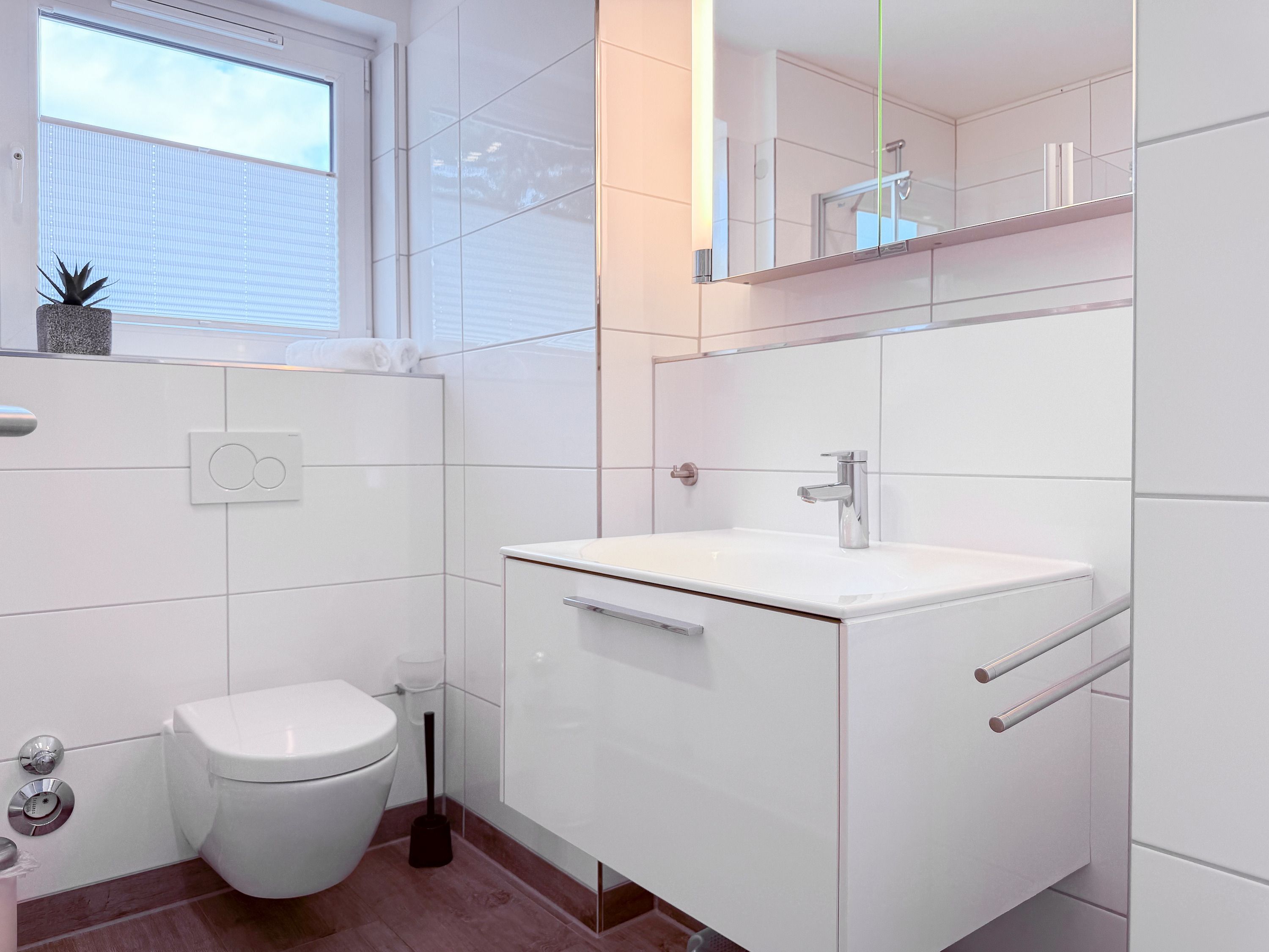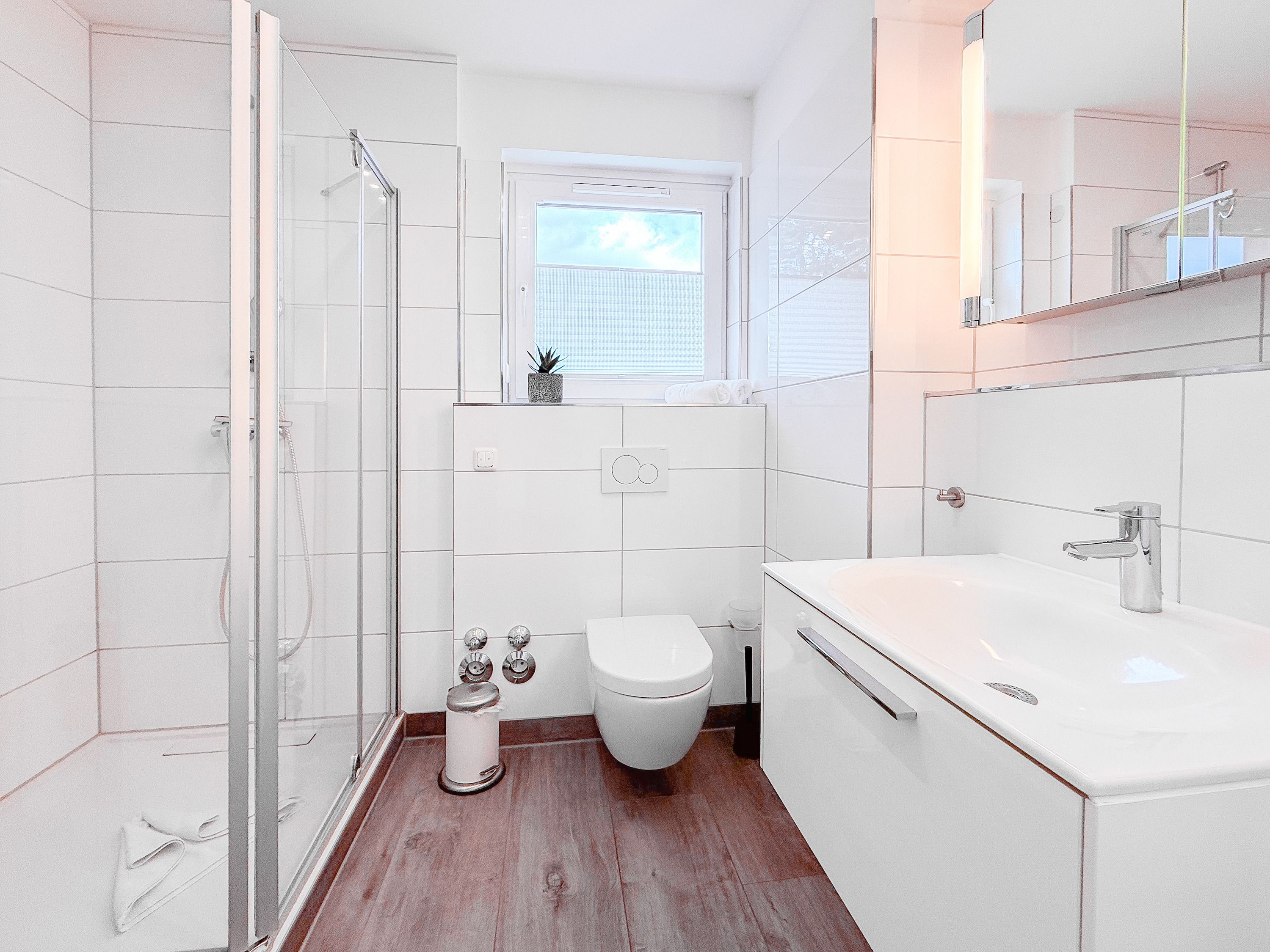 Die luxuriöse Ferienwohnung bietet mit 2 separaten Schlafzimmern ausreichend Platz für 4 Personen, um einen schönen Urlaub zu verleben. Es stehen ein Doppelbett (180x200) und zwei Einzelbetten (80x200) zur Verfügung. Beide Schlafzimmer sind mit einem TV ausgestattet. Bei der Einrichtung und Ausstattung der Immobilie wurde nicht gespart und sehr viel Wert auf hochwertige Materialien gelegt. 3 TV, Hifi-Anlage, Bose Bluetooth Anlage, kostenloser Internetzugang über WLAN, Fußbodenheizung, elektrische Außenjalousien, modernes Duschbad mit viel Tageslicht und integrierter Waschmaschine. Die hochwertige, moderne Einbauküche mit angrenzendem Essbereich ist bestens mit allen technischen Geräten ausgestattet und genügt höchsten Ansprüchen. Sehr charmant ist der Blick ins Grüne durch das große Bullauge. Übergroße Fensterelemente sorgen für einen lichtdurchfluteten Wohnbereich mit Blick zur ruhigen Gartenseite und auf den großzügig angelegten Südwestbalkon mit Dachterrassen Charakter, selbstverständlich komfortabel möbliert mit Sitzgruppe, Sonnenliegen und elektrischer Außenmarkise.