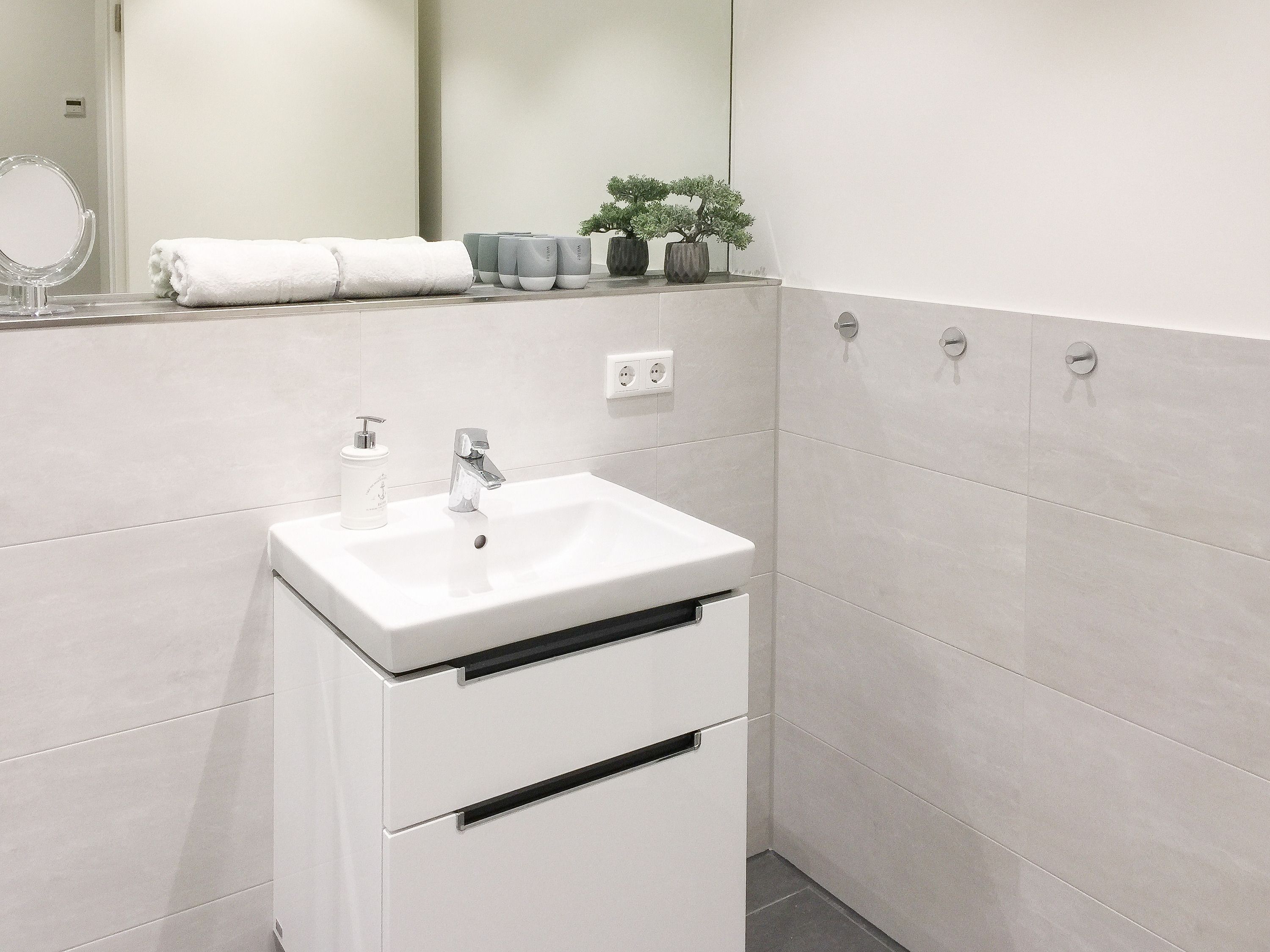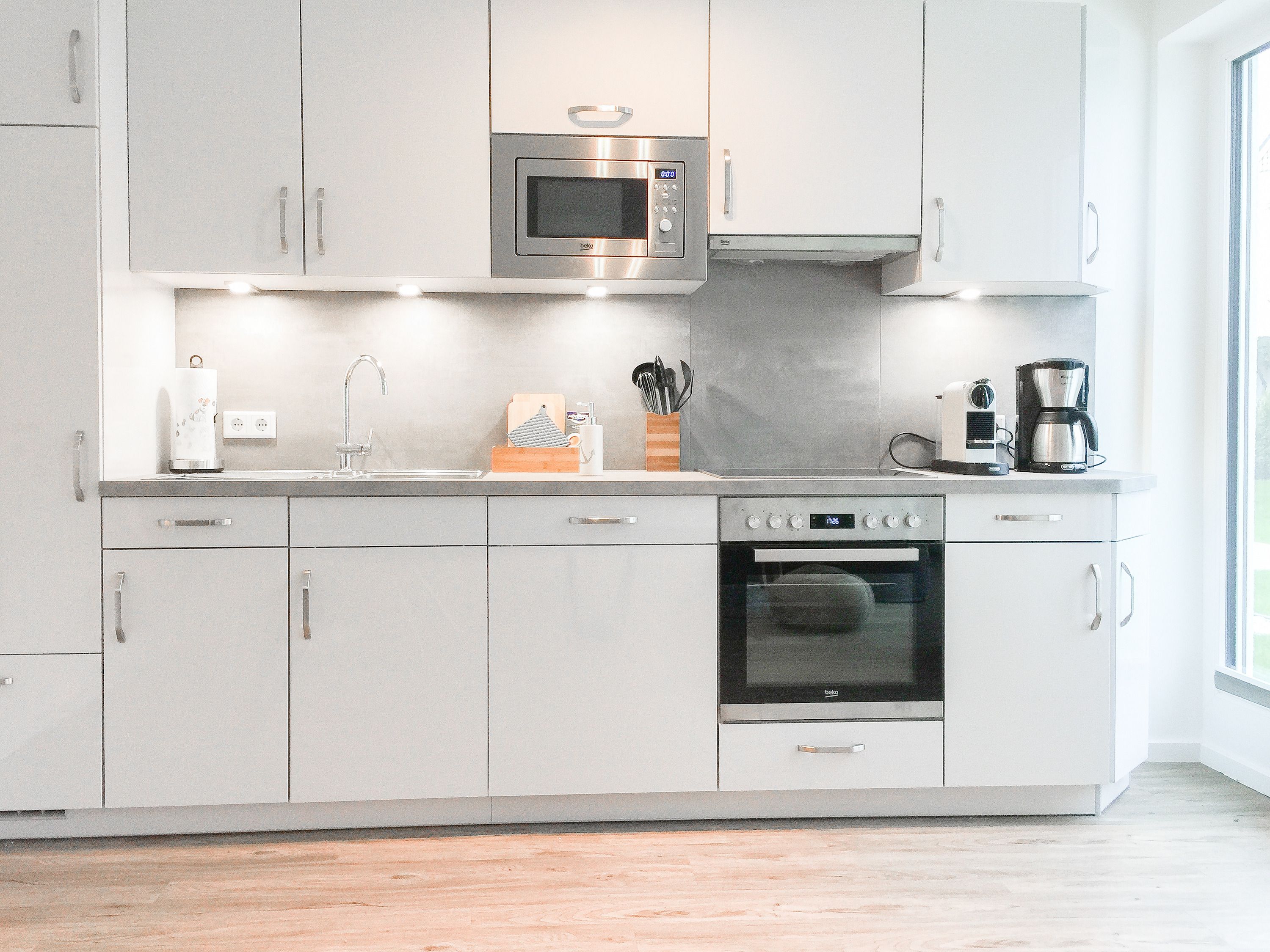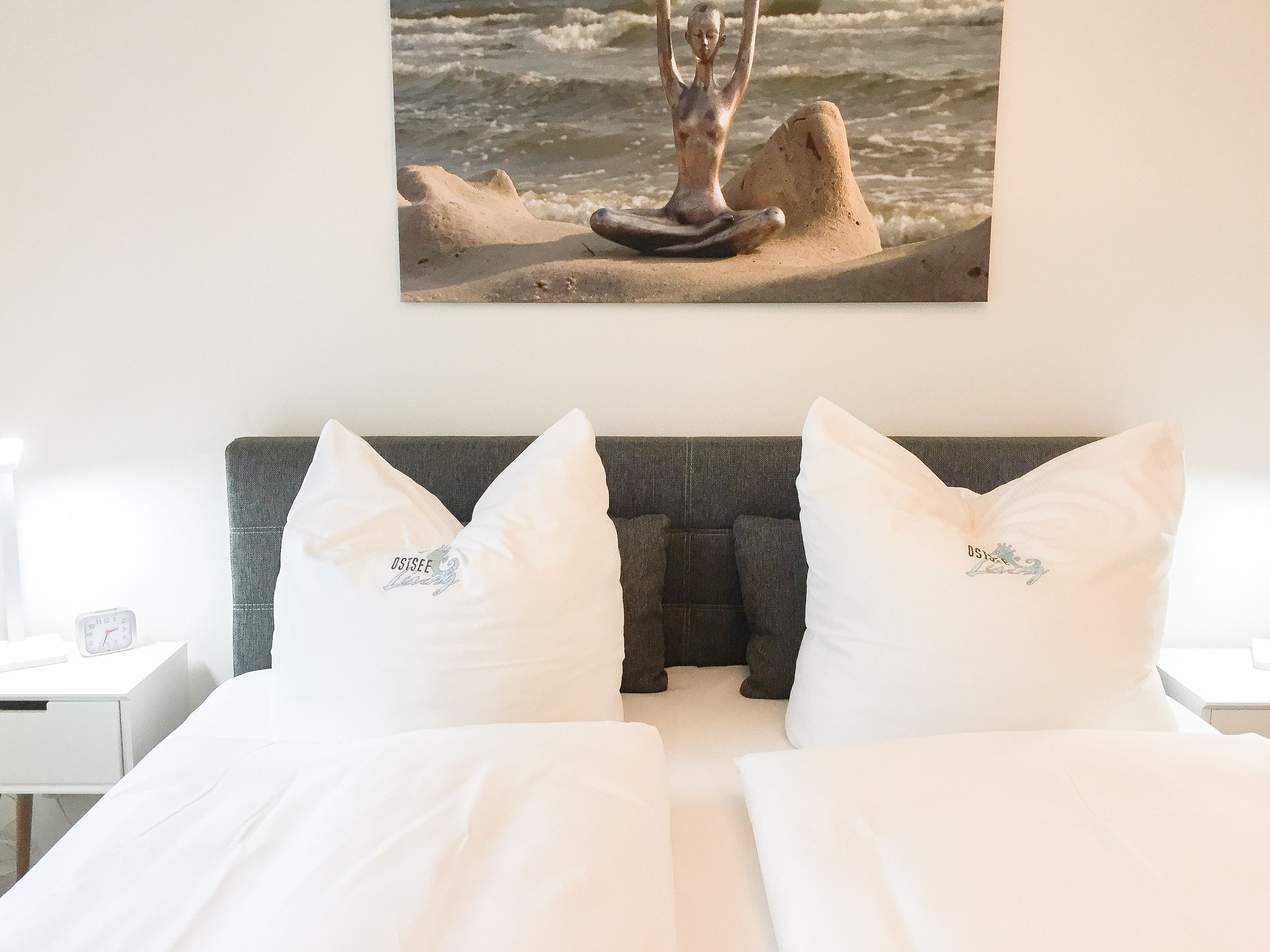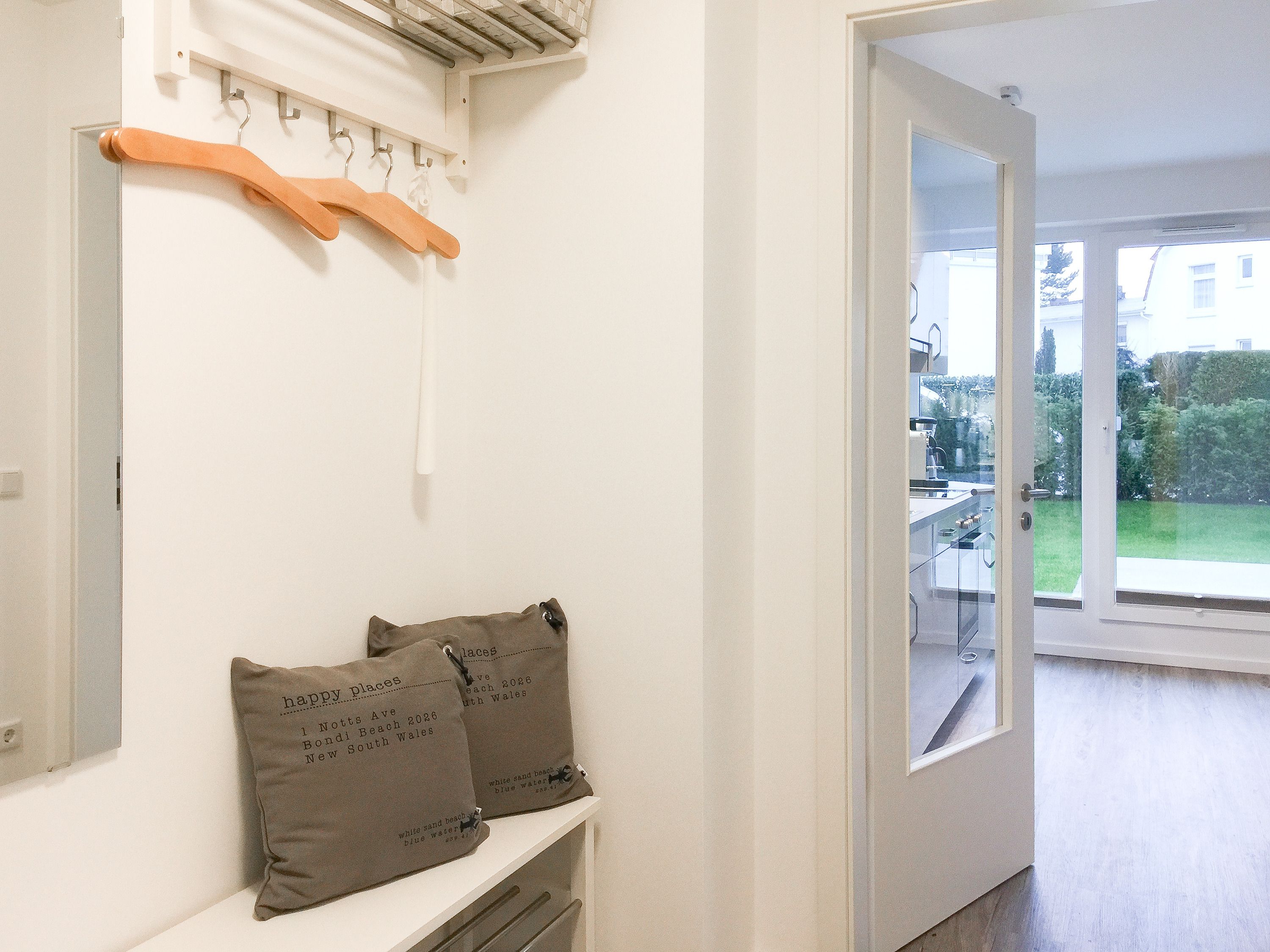 Die ca. 60 qm großzügig geschnittene Wohnung mit 3 Räumen, bietet genügend Platz für 4 Personen und befindet sich im Erdgeschoss einer Neubau-Wohnanlage. Die moderne Einbauküche ist direkt mit dem gemütlichen Wohn-Essbereich verbunden. Schöne Designböden sowie liebevolle, maritime Dekorationselemente sorgen für Behaglichkeit und spiegeln die Nähe zum Meer wieder. Alle bodentiefen Fenster sind mit elektrischen Außenjalousien ausgestattet und sorgen am Tag für lichtdurchflutete Räume. Zwei Schlafzimmer, eingerichtet mit einem Boxspringbett (180x200) und einem Doppelbett (140x200), lassen Sie nach einem ereignisreichen Urlaubstag perfekt zur Ruhe kommen. Das Bad bietet eine ebenso moderne Ausstattung wie die anderen Bereiche der Wohnung. Selbstverständlich gehören die kostenlose WLAN Nutzung, Radio und ein großer Flat Screen-TV zum Entertainment-Paket. Auf der dazugehörigen, möblierten Terrasse mit elektrischer Markise können Sie die Sonnentage an der frischen Luft genießen, entspannen oder einfach Ihre Seele baumeln lassen.