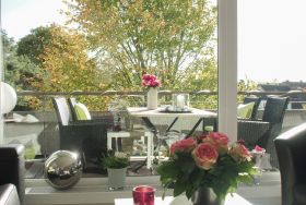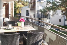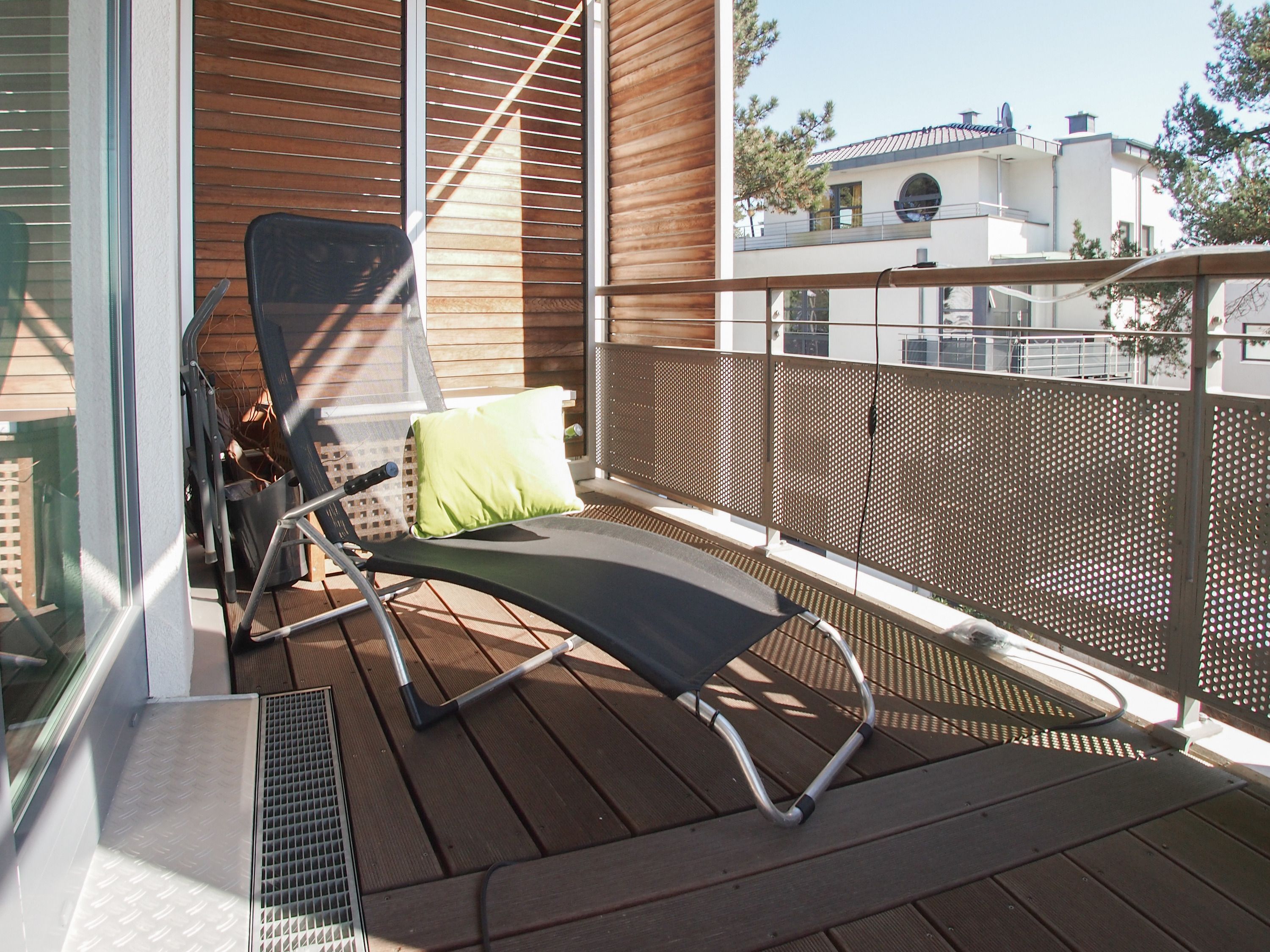 Die exklusive Wohnung befindet sich in hervorragender Lage von Timmendorfer Strand nur wenige Meter von der Ostsee und dem Strand entfernt. Ein riesiger Sonnenbalkon, der mit Esstisch, Stühlen und Liegen ausgestattet ist, verläuft entlang der gesamten Wohnung. Ein echtes Highlight mit Sonne von früh bis spät. In östlicher Richtung kann man die Ostsee blitzen sehen.