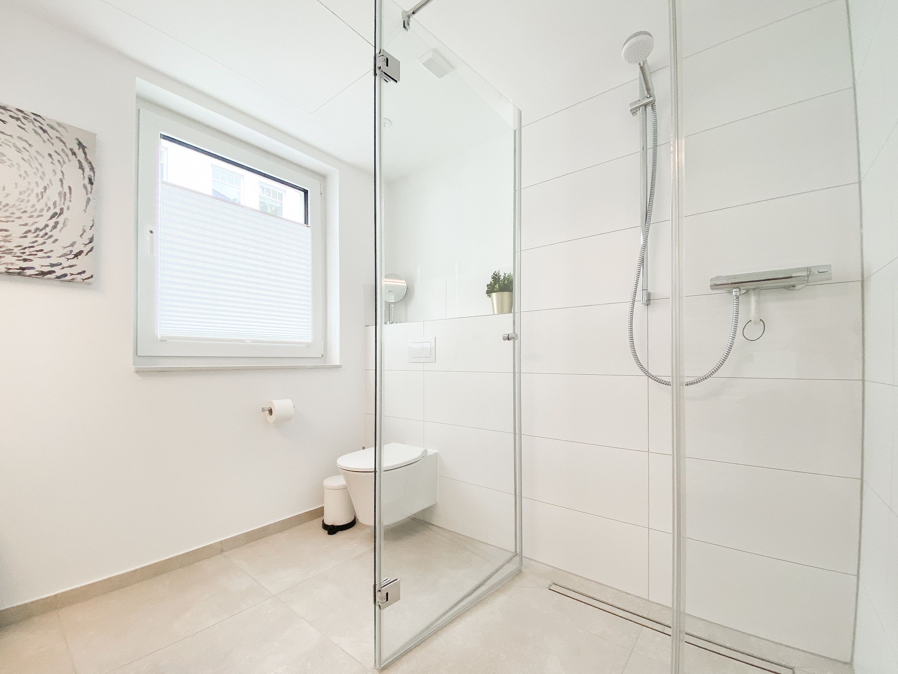 Zehn exklusive Wohnungen mit Balkonen und Terrassen zur Meerseite bieten traumhafte Ausblicke bis auf die Ostsee und jeglichen Komfort zur Gewährleistung eines hohen Wohnstandards in schönem Ambiente. Alle Wohnungen verfügen über moderne Bäder mit Walk In Duschen, Fußbodenheizung und elektrische Außenjalousien mit einstellbaren Lamellen, die gleichermaßen für Tageslicht und Privatsphäre sorgen.