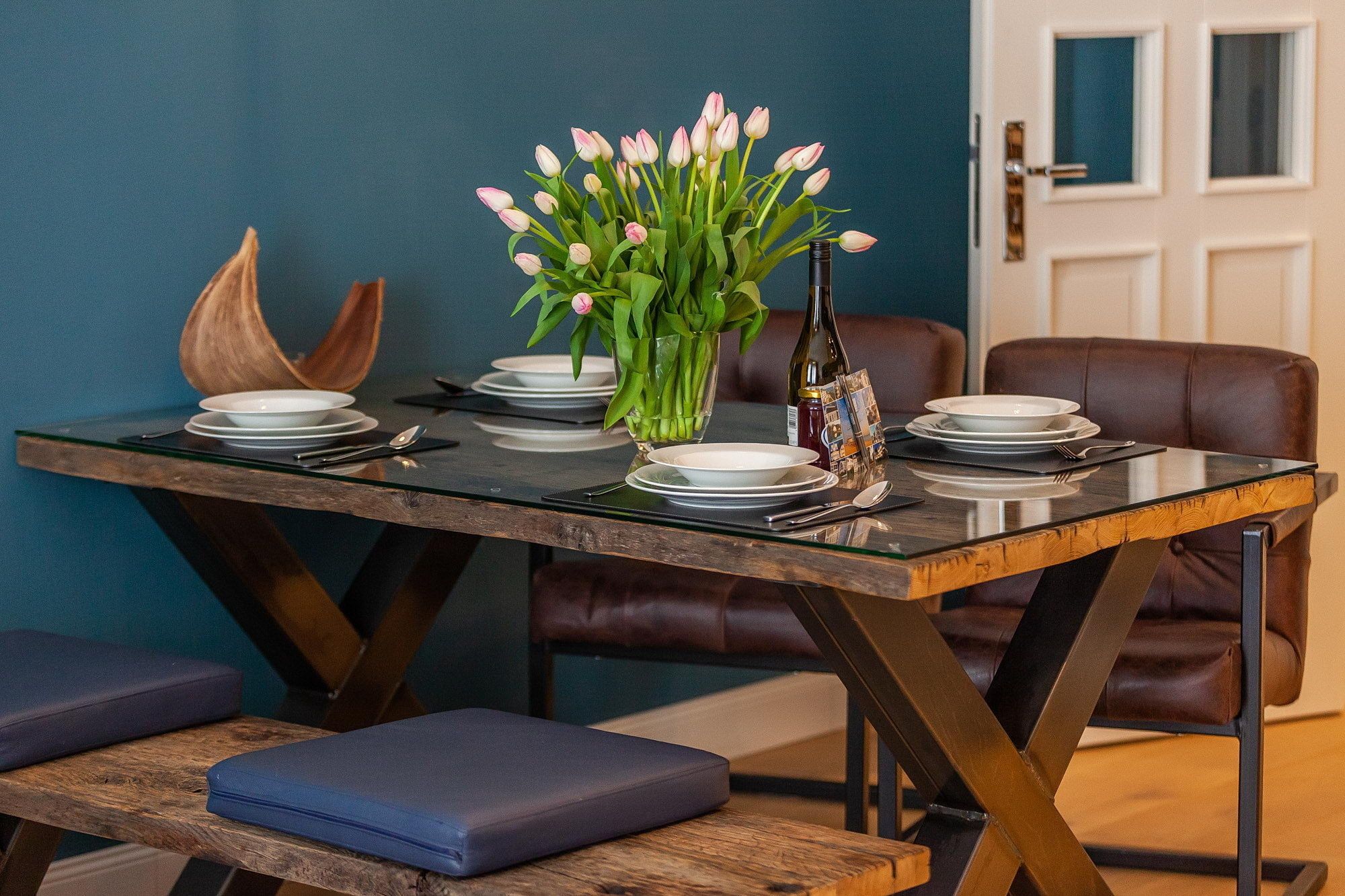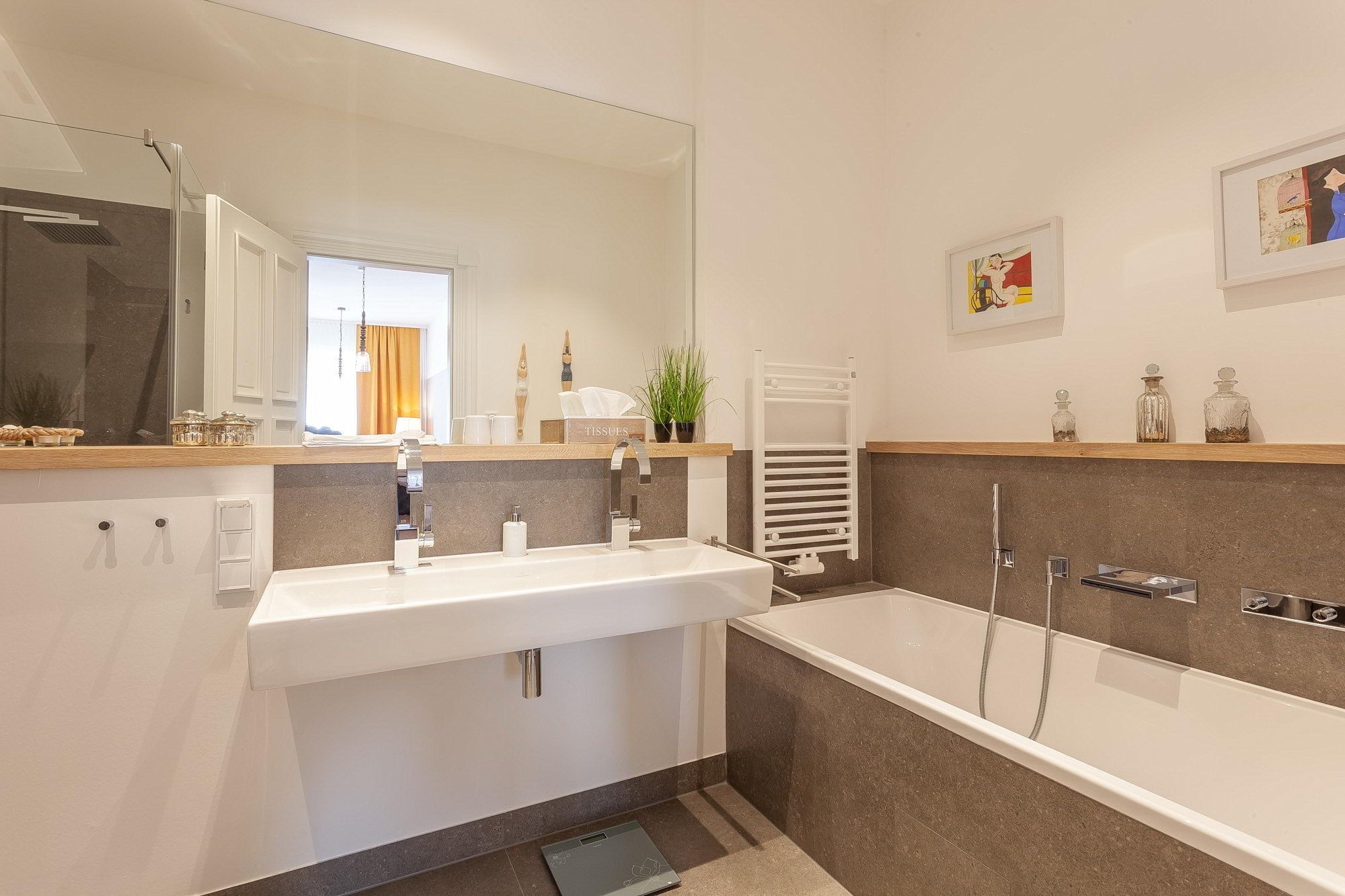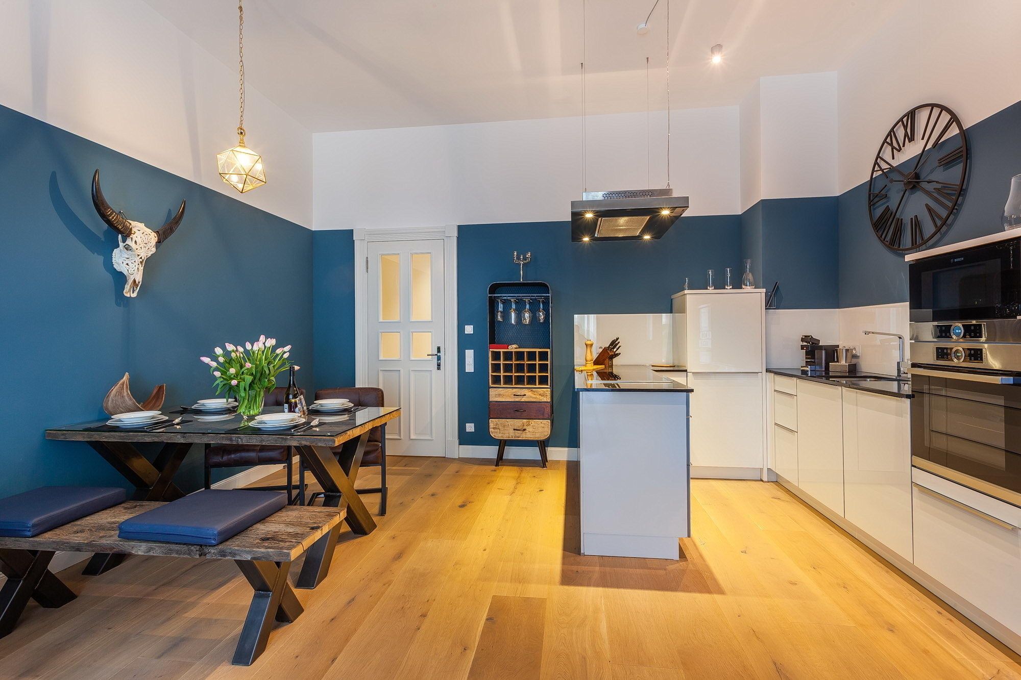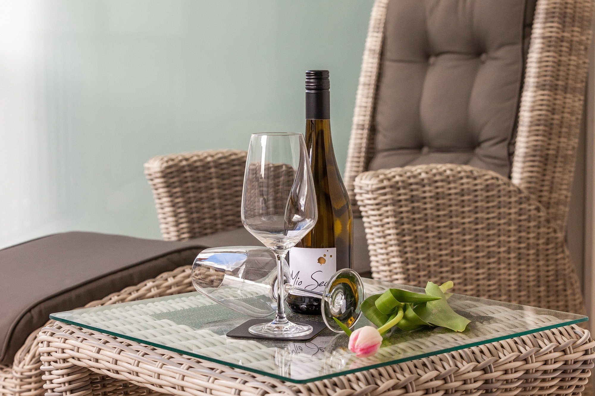 Die Ferienwohnung [at] HOME verspricht viel. Es lädt durch seine überdachte Loggia, bequemen Gartenmöbel und einem traumhaften seitlichen Meerblick zum Verweilen ein. Das 90 qm große Appartement überzeugt durch den offenen Wohnbereich und eine hochwertige Einbauküche. Das Schlafzimmer lädt mit seinem 180x200 cm großen Boxspringbett zum Träumen ein. Hier besteht die Möglichkeit einer Aufbettung zur dritten Person durch ein separates Boxbett (90x200 cm). Selbstverständlich lässt das angrenzende Badezimmer mit bodentiefer Dusche und Badewanne keine Wünsche offen.