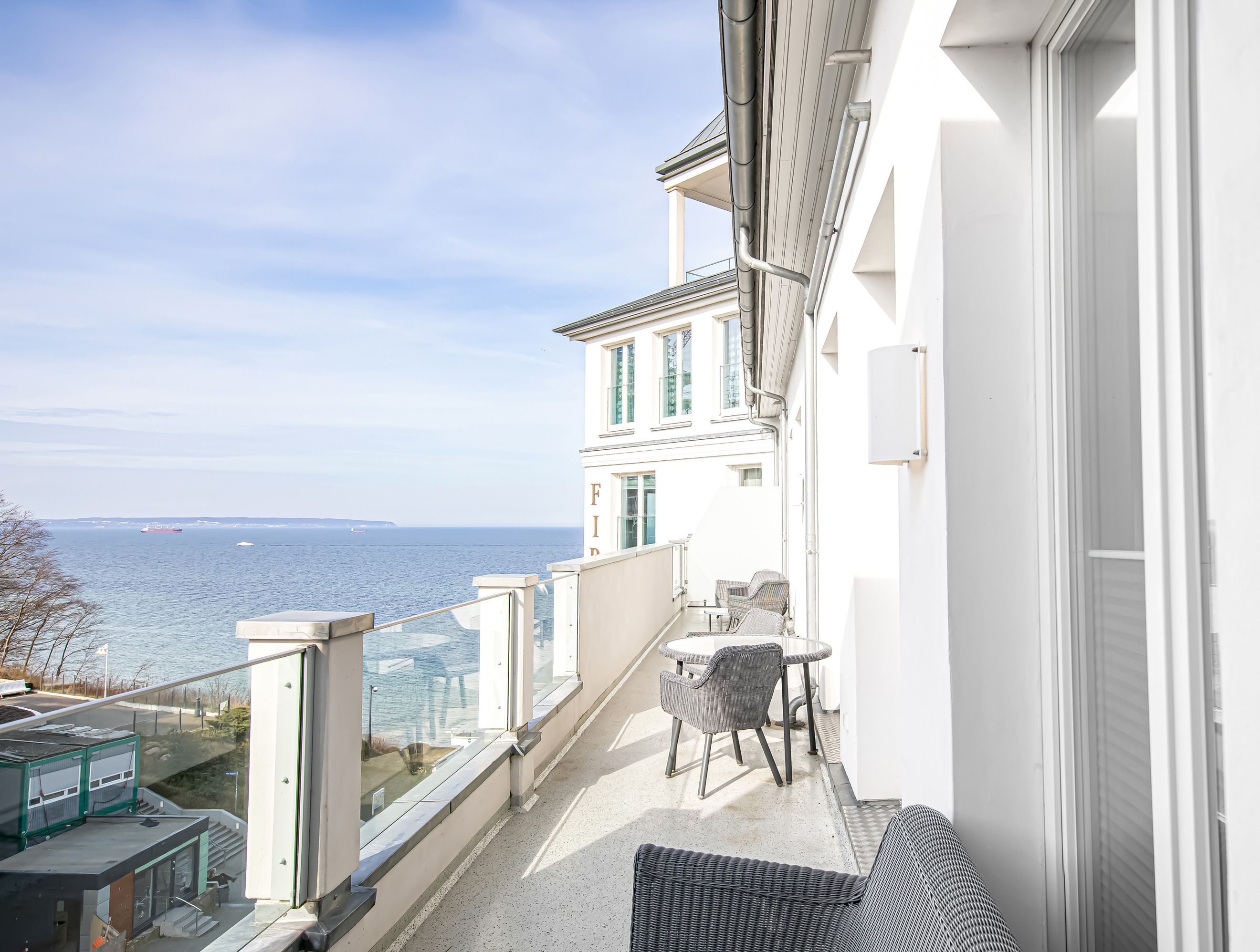 Am Hochufer über dem Hauptstrand mit der berühmten Seebrücke gelegen, verspricht das FIRST Ihnen schon von außen Luxus, Ambiente und Komfort vom Feinsten. Genau das setzt sich auch in Ihrem stolze 145 Quadratmeter fassenden Urlaubsdomizil fort: Überall nur beste Materialien, angenehm viel Licht und eine wohltuend elegante Atmosphäre. Und dazu eben dieser Meerblick, welcher sich insbesondere vom 15 Meter breiten Balkon genießen lässt!