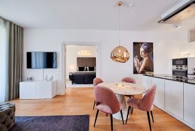 Die Ferienwohnung „Prinzessin Luise“ befindet sich in der dritten Etage und wird bequem über den Lift aus der Tiefgarage erreicht. Auf 74m2 Wohnfläche bietet sie ausreichend Platz für 3 Personen. Die hochwertige Ausstattung lässt keine Wünsche offen. So finden Sie, unter anderem, eine hochwertige Einbauküche mit angrenzendem Wohnbereich vor, welcher durch die großen Fensterfronten mit Licht nahezu durchflutet wird. Hochwertige und ausgesuchte Materialien unterstützen den hochwertigen Wohneindruck zusätzlich. Auf dem Dach des „FIRST SELLIN“ stehen Ihnen sowohl ein großzügiger Sky-Pool, als auch eine Saunalandschaft zur Verfügung. Der Blick von dort auf die Ostsee lässt Ihren Urlaub zu einem wahrlichen Traumurlaub werden.In der Sommersaison können Sie darüber hinaus im hauseigenen Außenpool (solar beheizt) relaxen oder sich natürlich in die Fluten der Ostsee am Strand stürzen.