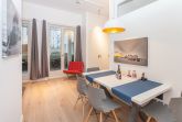 Im ersten Obergeschoss auf der südöstlich ausgerichteten Landseite des Gebäudes gelegen, ist das Windjammer mit rund 54 qm Wohnfläche der ideale Rückzugsort für vier Erwachsene. Von der vor Wind und Wetter geschützten Terrasse, die sich auf die gesamte Länge der ferienwohnung erstreckt, haben Sie einen schönen Blick in den begrünten, parkähnlich angelegten Garten. Hier können Sie wunderbar sitzen, die gesunde Seeluft genießen und die Seele baumeln lassen. Und nur einen Katzensprung vom FIRST entfernt, sind Sie bereits am schier endlosen Meer ...