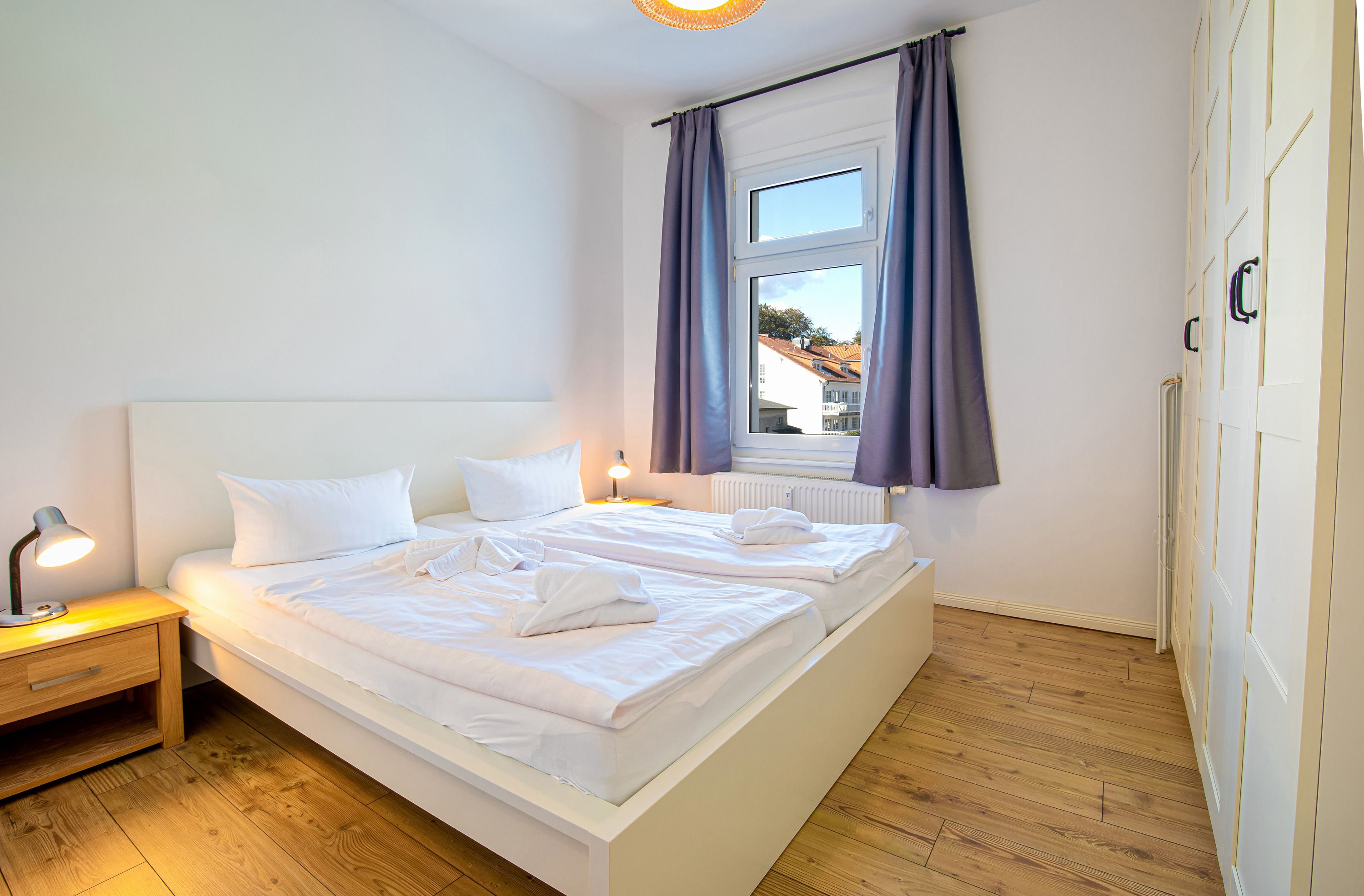 Auch beim Schlafkomfort müssen Sie auf nichts verzichten, das Schlafzimmer ist mit einem Doppelbett (180x200) und einem geräumigen Kleiderschrank ausgestattet.