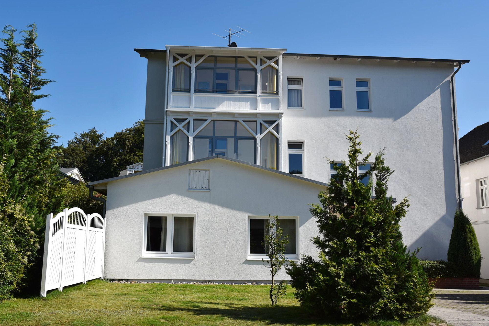 Selbstverständlich gehört zur Wohnung auch ein reservierter Parkplatz, sowie eine Abstellmöglichkeit für Ihre Fahrräder. Waschmaschine und Trockner (Münzgeräte) befinden sich zur gemeinsamen Nutzung im Nebengebäude der Villa Meeresgruss.