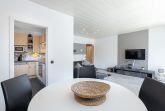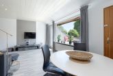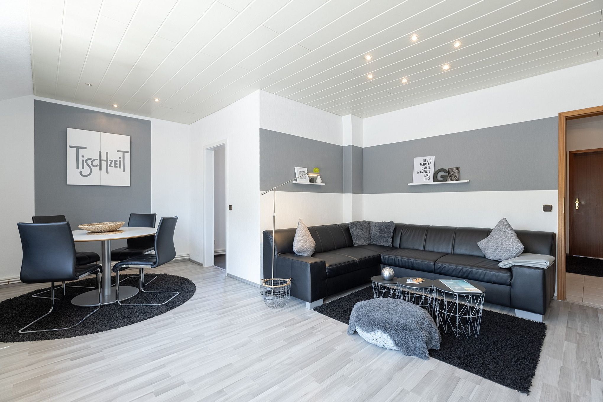 Helles, freundliches modern eingerichtetes Wohn- und Esszimmer mit direktem Zugang zum Balkon. Das Wohn- und Esszimmer ist mit einem Essplatz für 4 Personen, einer Eckcouch, einem Couchtisch, Ministereoanlage mit CD-Player, Flachbild-Fernseher und DVD-Player ausgestattet. Das Wohn- und Esszimmer ist mit Laminatboden ausgelegt.