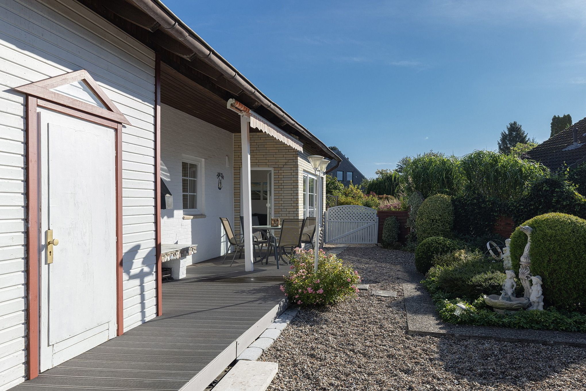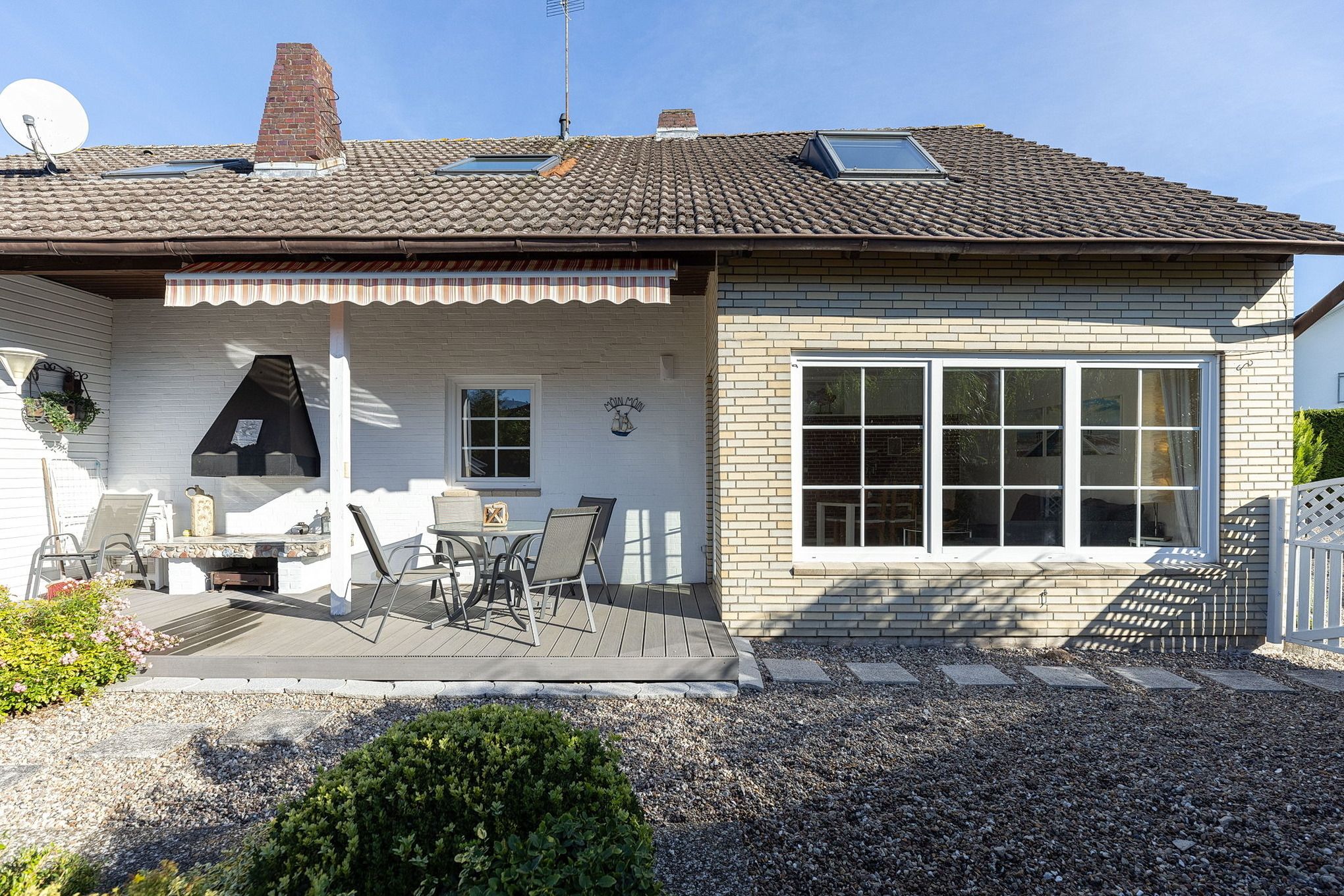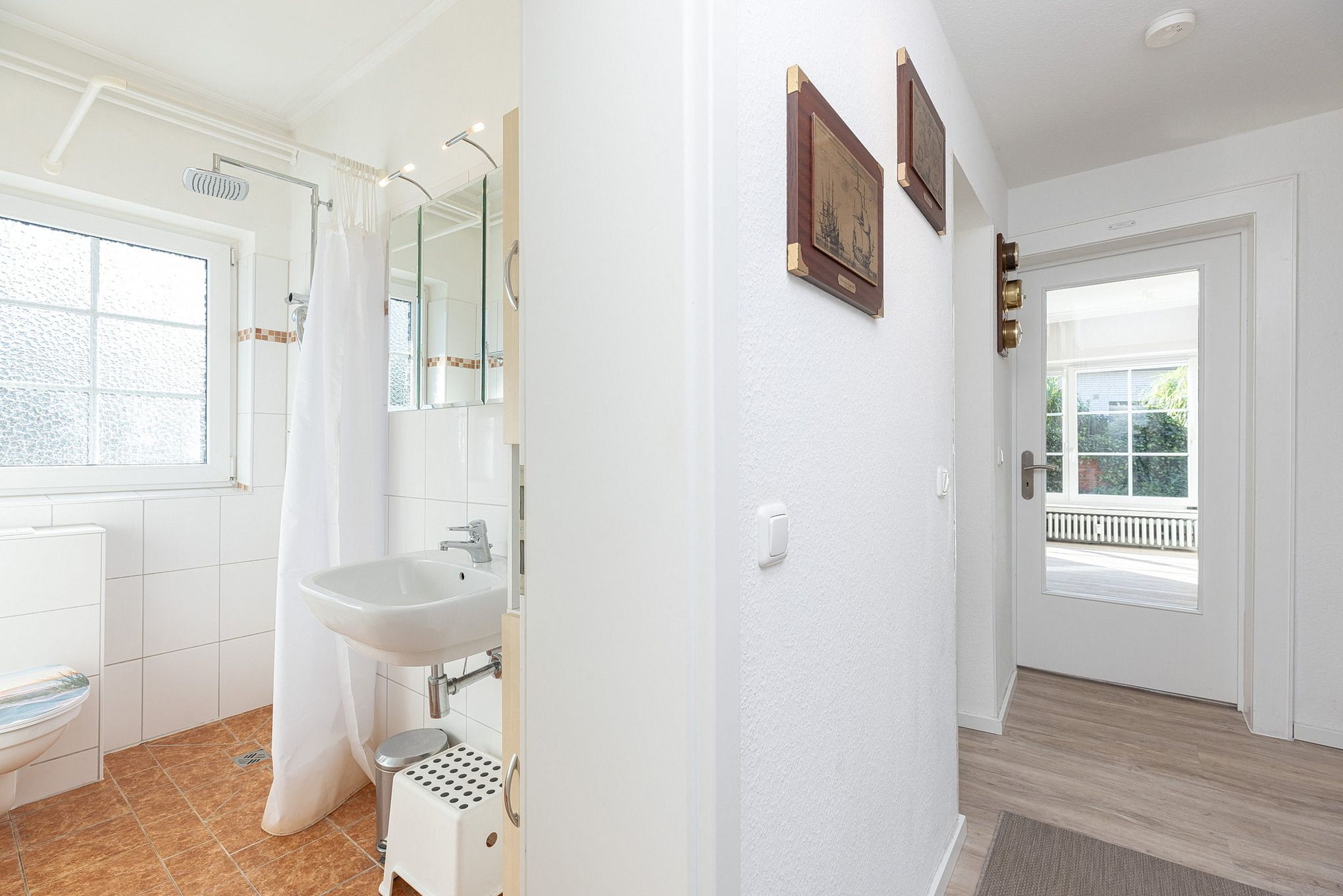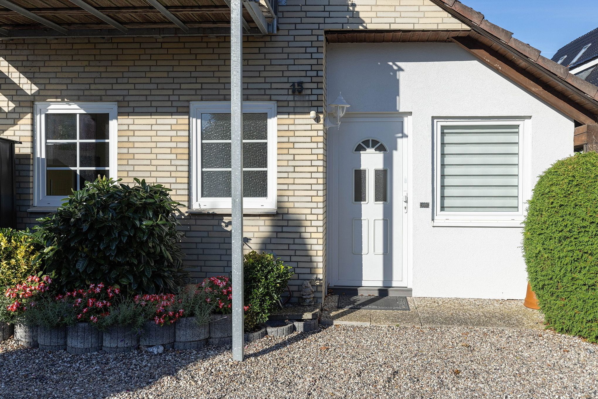 Große, sonnige Terrasse mit angrenzendem komplett eingezäuntem Garten, Parkplatz direkt am Haus. In einem grossen zusätzlichen Flurbereich können ein Kinderwagen oder ein Buggy bequem untergebracht werden.