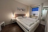 Modern ausgestattetes Schlafzimmer mit einem Doppelbett (2x 90x200cm), 2 Nachttischen, einem kleinen Kleiderschrank und einer Kommode. Das Schlafzimmer ist mit Laminatboden ausgelegt, das Fenster lässt sich durch einen Vorhang und einem Außenrollo vollständig verdunkeln.