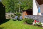 Die möblierte West-Terrasse mit Garten lädt zum gemütlichen Beisammensein ein.