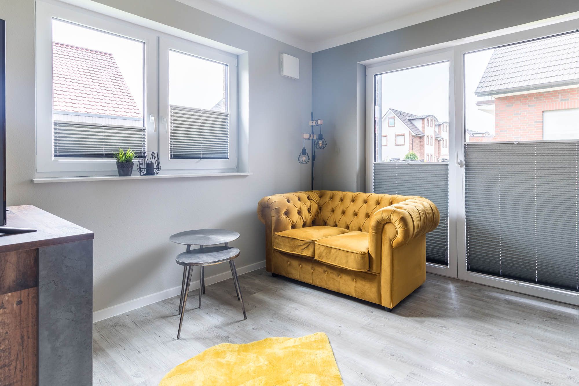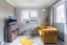 Im Erdgeschoss lädt ein gemütlicher Wohnbereich mit SAT-TV und DVD-Player zum Verweilen ein. Von hier aus gelangen Sie auch auf die möblierte Nordost-Terrasse. Das gepflegte angrenzende Grundstück ist fast vollständig eingezäunt, lediglich eine kleinere Öffnung zum Nachbargrundstück wurde gelassen.