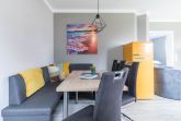 Die moderne Küche ist zum Wohnraum offen gestaltet und mit allen nötigen Küchengeräten wie Herd, Geschirrspüler, Kühlschrank mit Gefrierfach und Gläser und Geschirr ausgestattet. An der gemütlichen Essecke finden alle Gäste zum Gemeinsamen Essen ihren Platz.