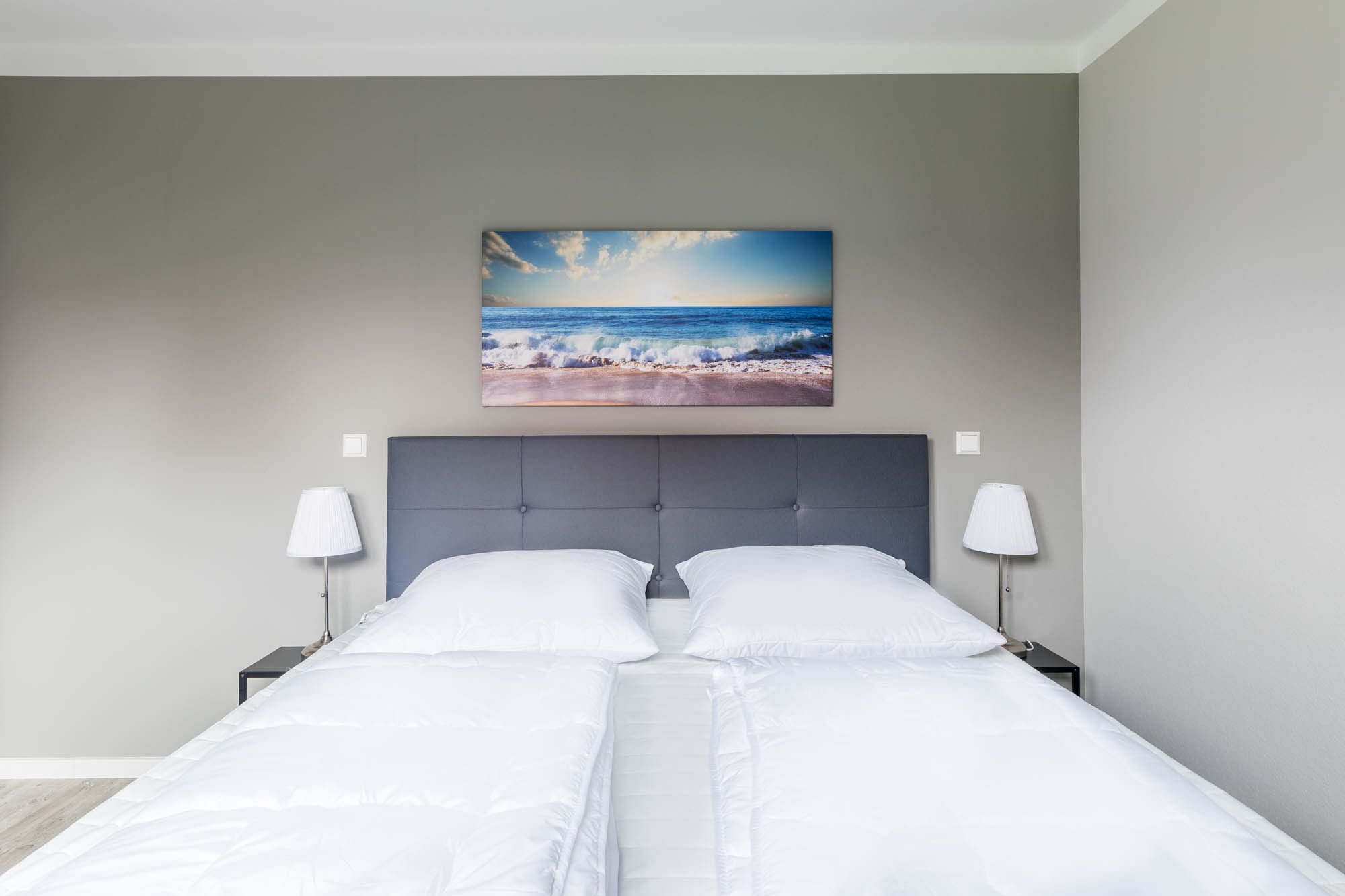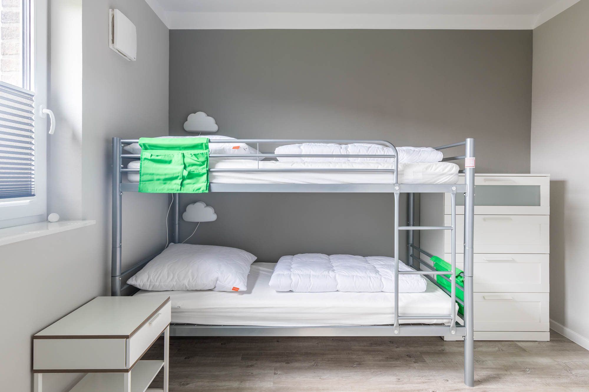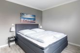 Eines der insgesamt drei Schlafzimmer finden Sie ebenfalls im Erdgeschoss, dieses ist mit einem Doppelbett (180x200cm) und einem Kleiderschrank ausgestattet. Ein Reisebettchen könnte in diesem Schlafzimmer auch noch mit aufgestellt werden.