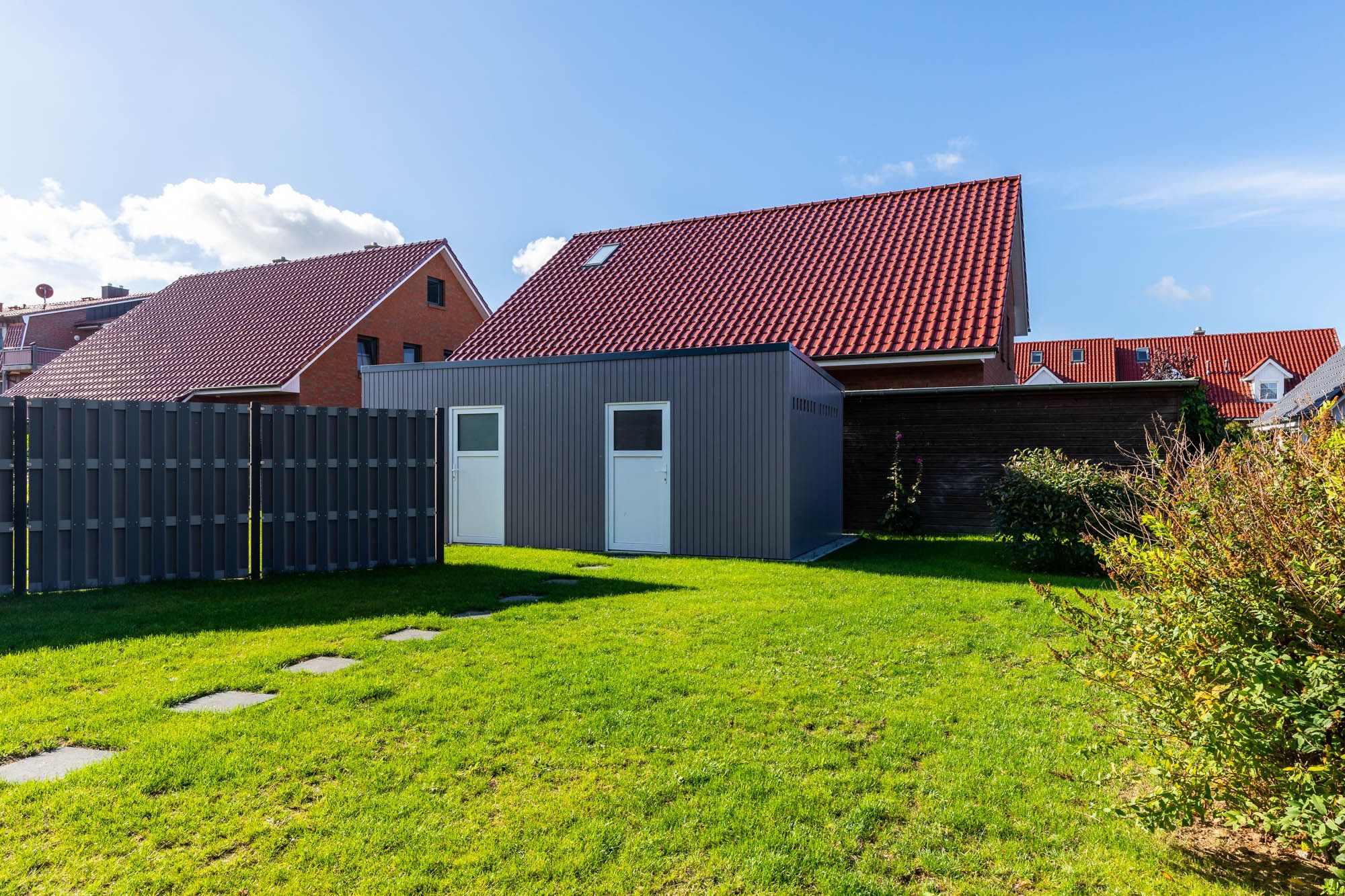 Auf dem Grundstück befindet sich auch ein eigenes abschließbares Abstellhäuschen (mit Steckdose, z.B. für E-Bikes). Hier können Räder & Co. sicher untergebracht werden.
