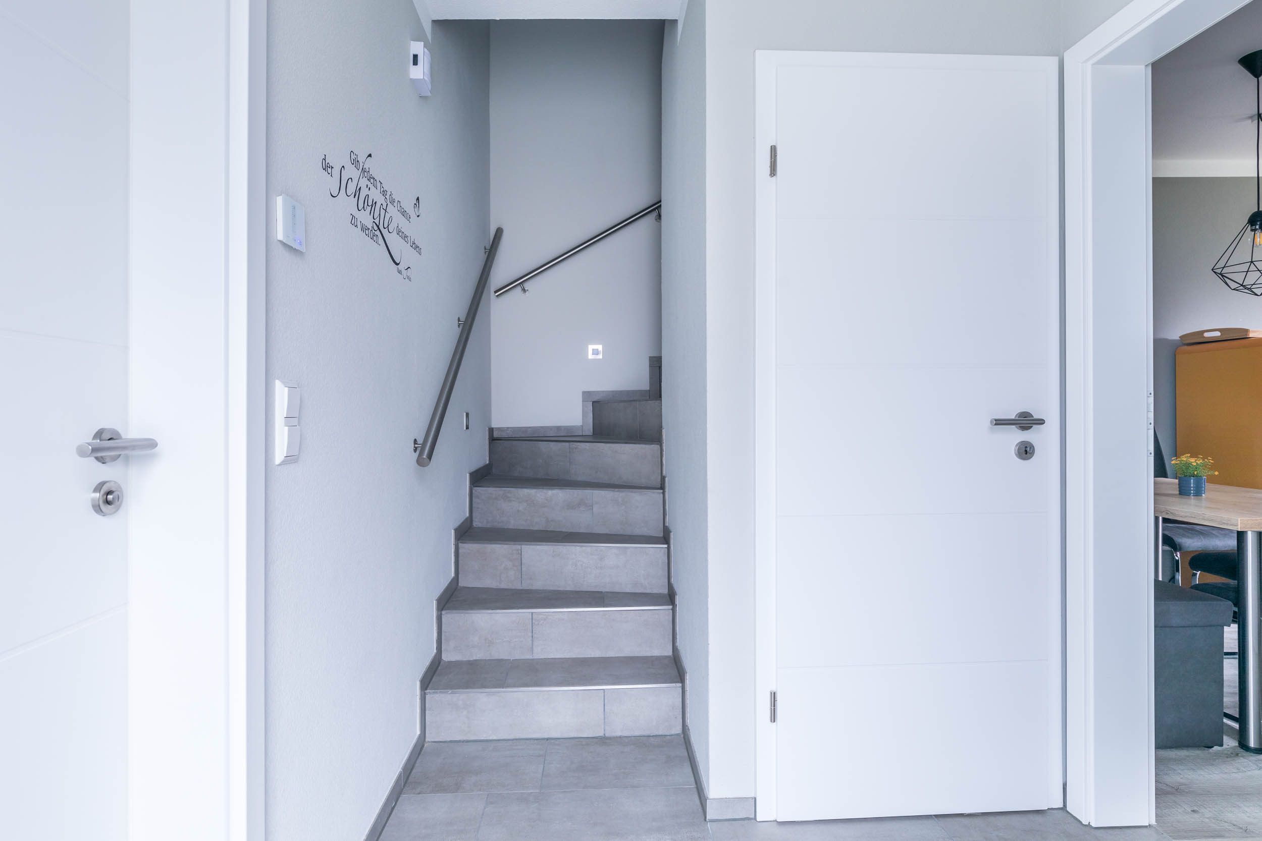 Diverse hilfreiche Utensilien wie z.B. Staubsauger, Bügelbrett/ Bügeleisen und Hochstuhl sind im separaten Hauswirtschaftsraum im Erdgeschoss untergebracht.