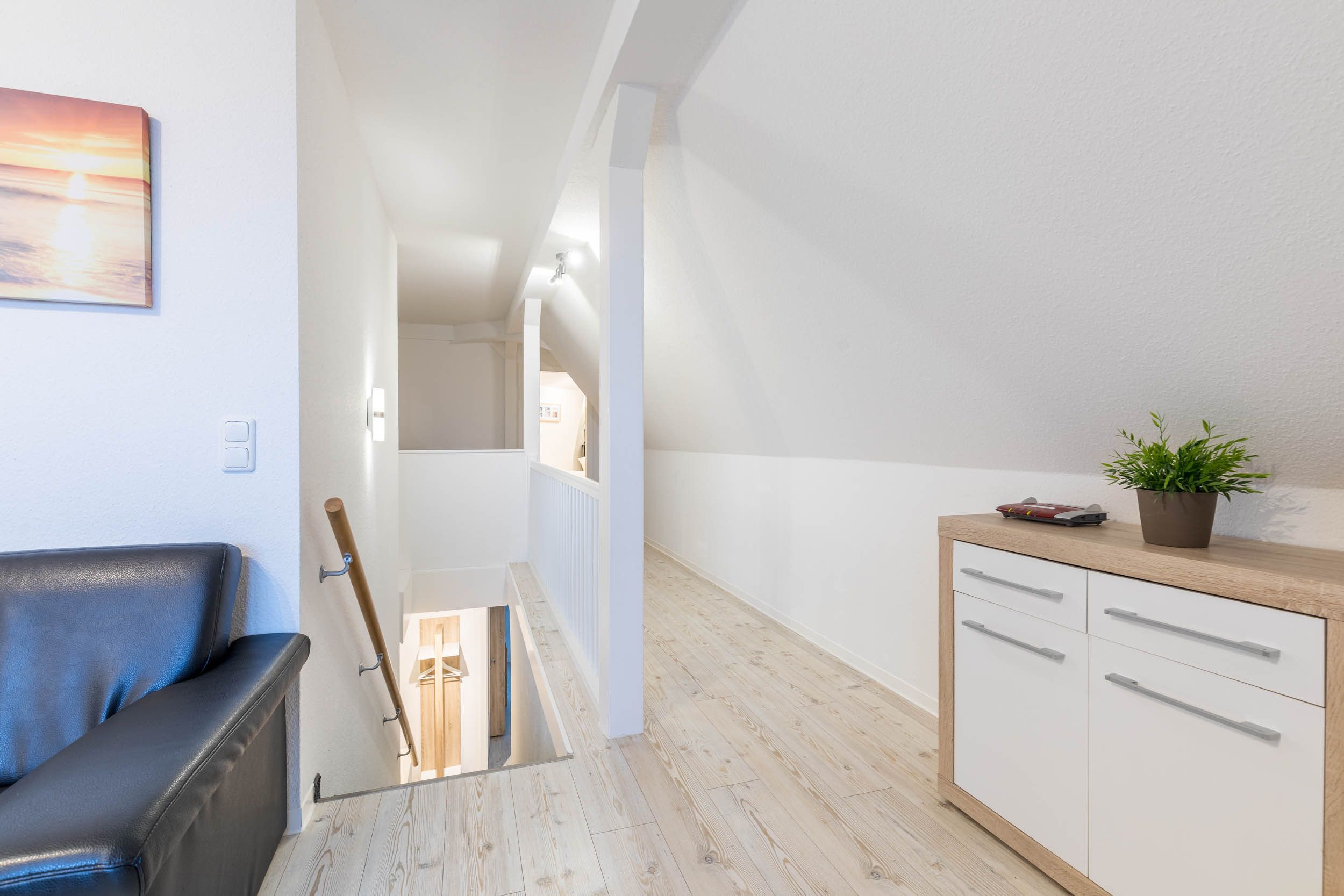Über eine Treppe vom Wohnungsflur aus gelangen Sie ins Dachgeschoss: