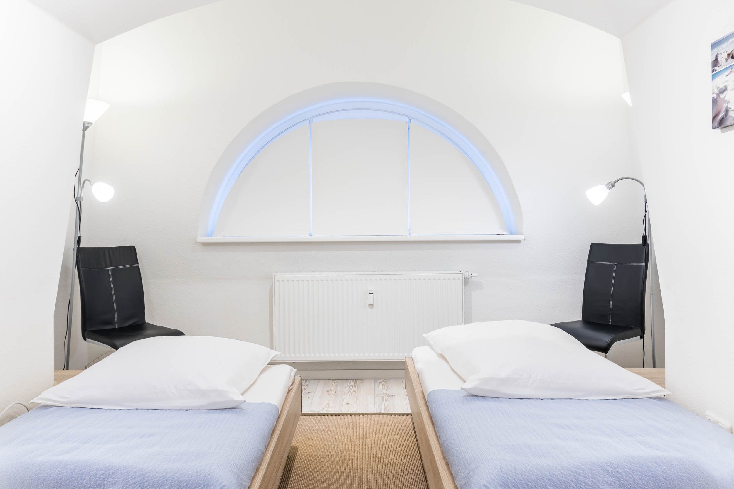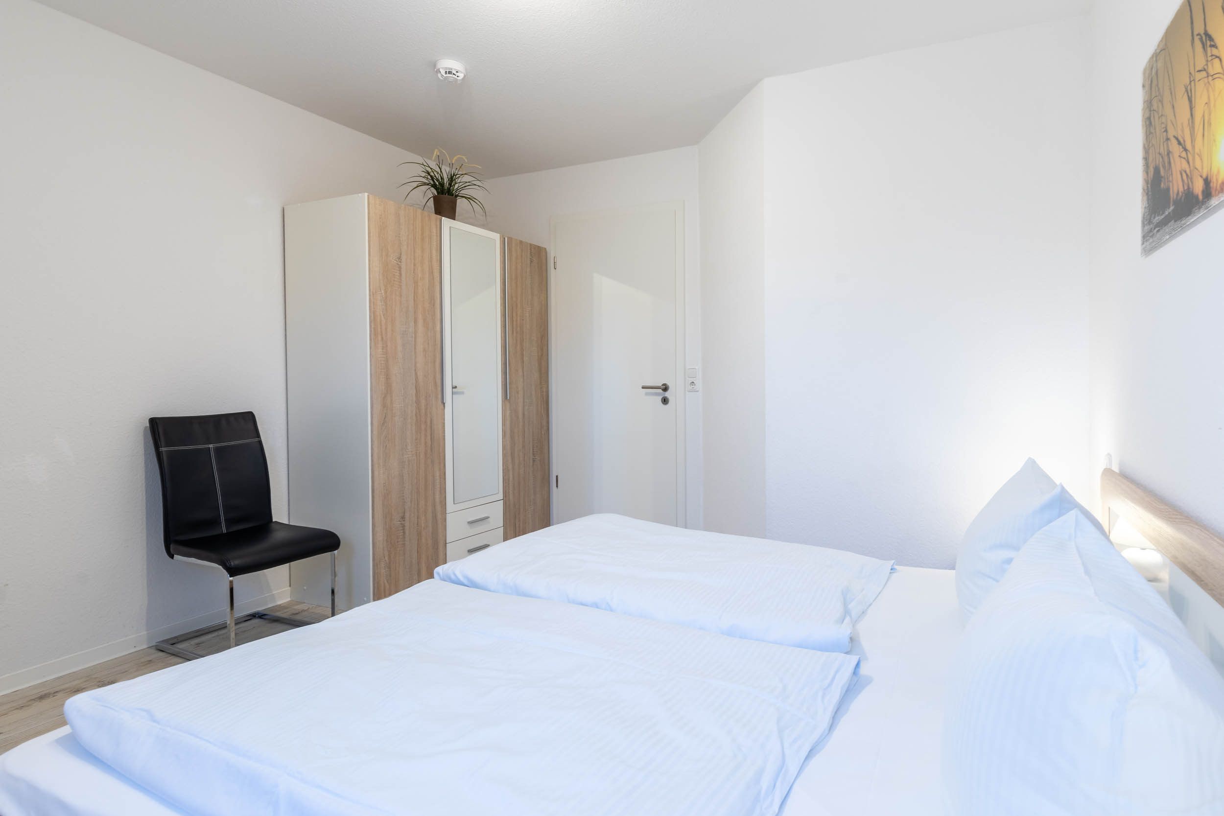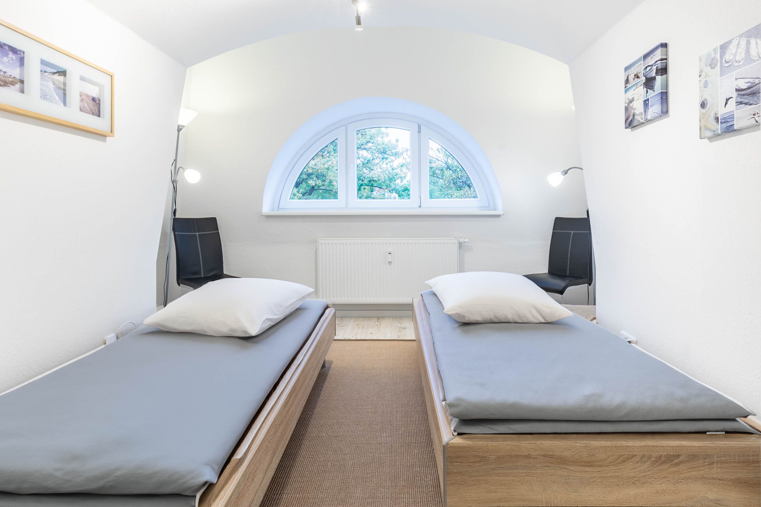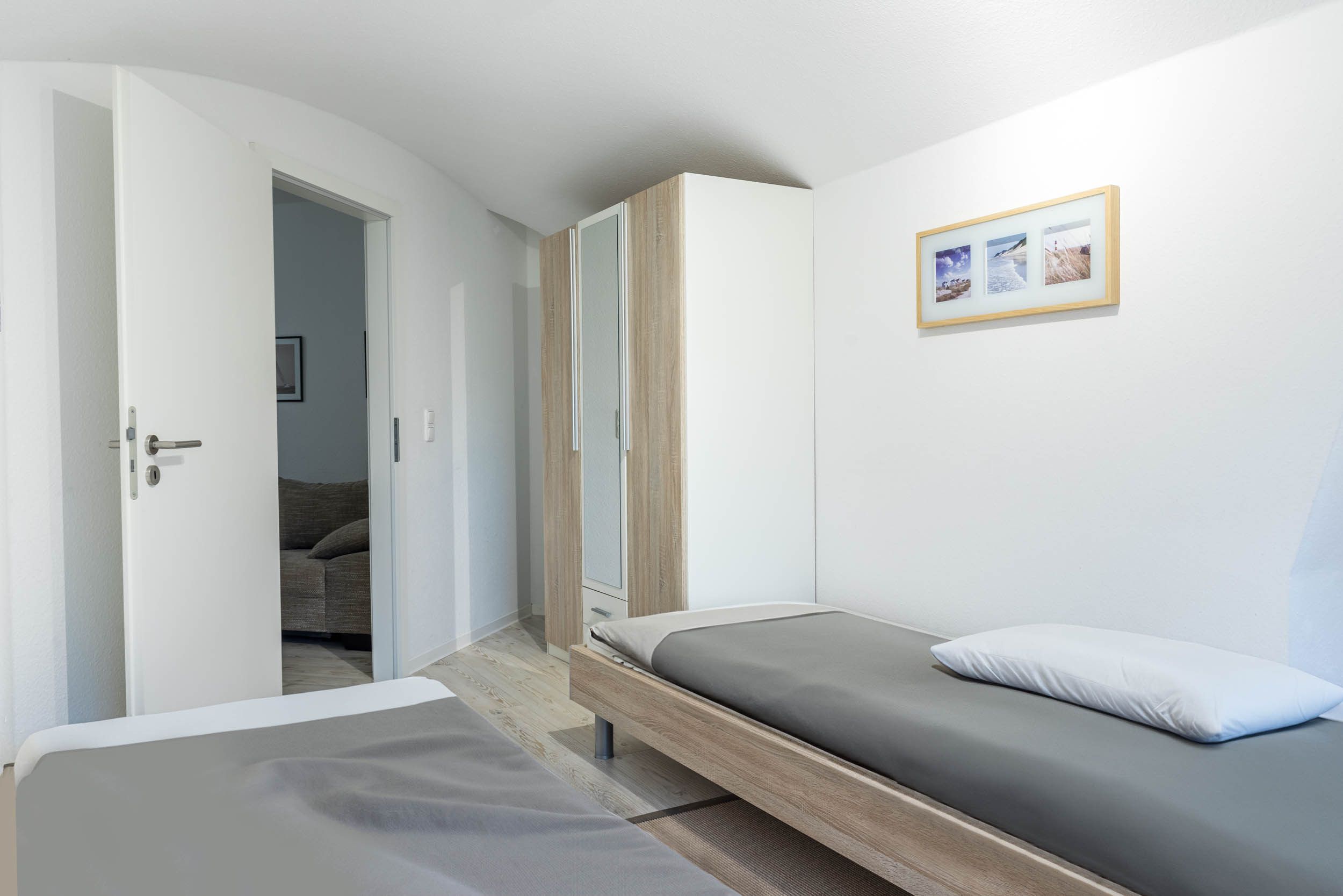 In dieser großzügigen 3-Zimmer-Ferienwohnung im 2.OG wurde auf den gesamten 94qm Wohnfläche sehr großen Wert auf individuelle Nutzungsmöglichkeiten gelegt. Ob für einen Familienurlaub mit bis zu 5 Gästen + Kleinkind oder auch für einen gemeinsamen Urlaub mit einem befreundeten Paar ist diese Wohnung optimal ausgestattet, da das zweite Schlafzimmer die Möglichkeit bietet, die beiden Einzelbetten direkt aneinander zu schieben, um somit ein zweites Doppelbett zu erhalten.