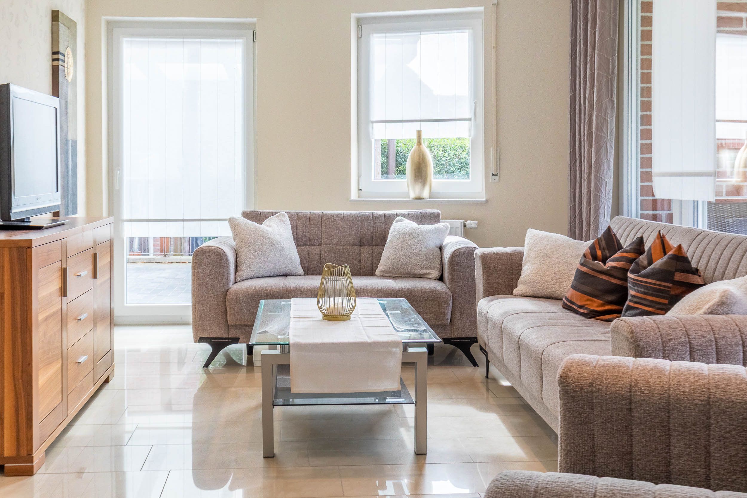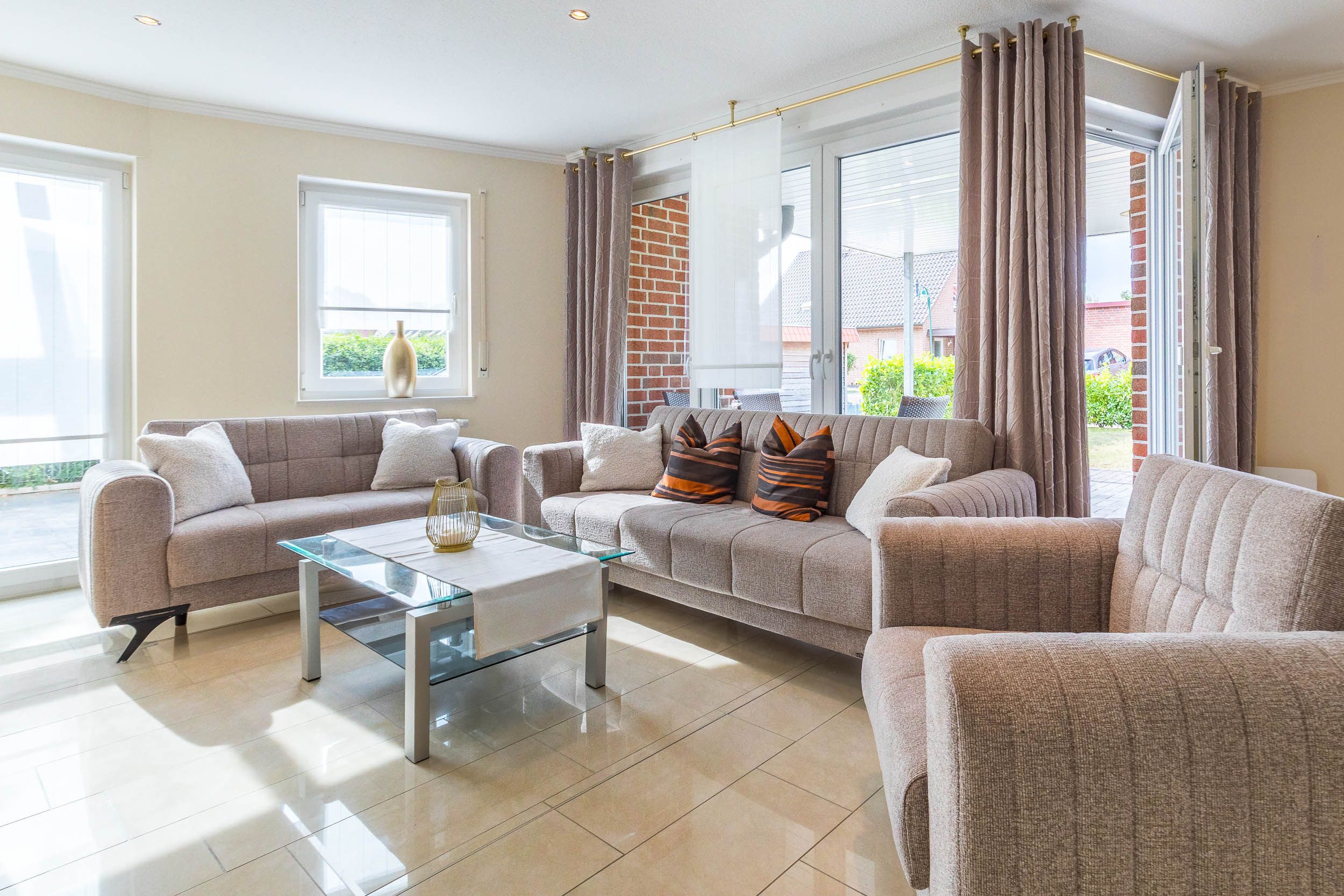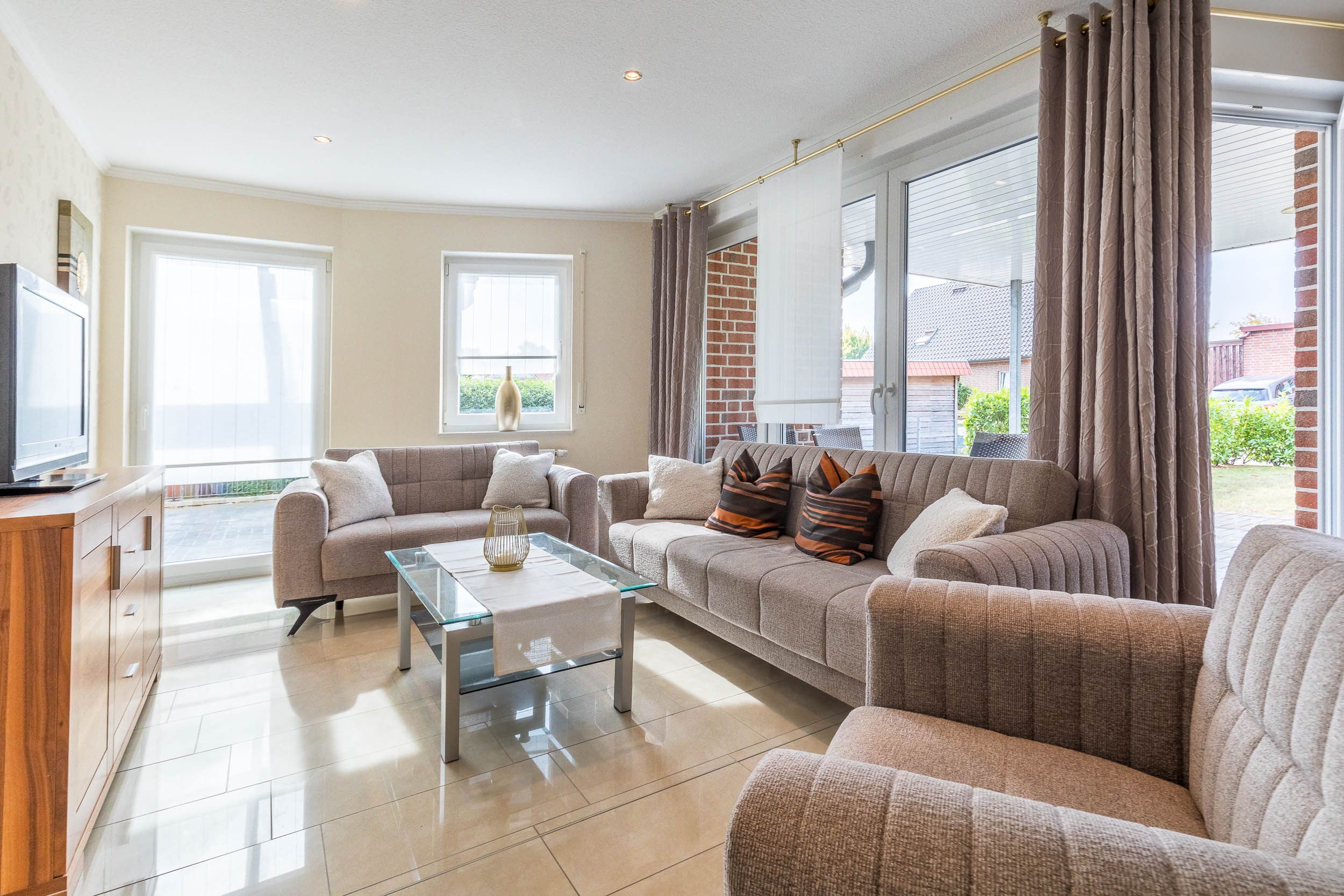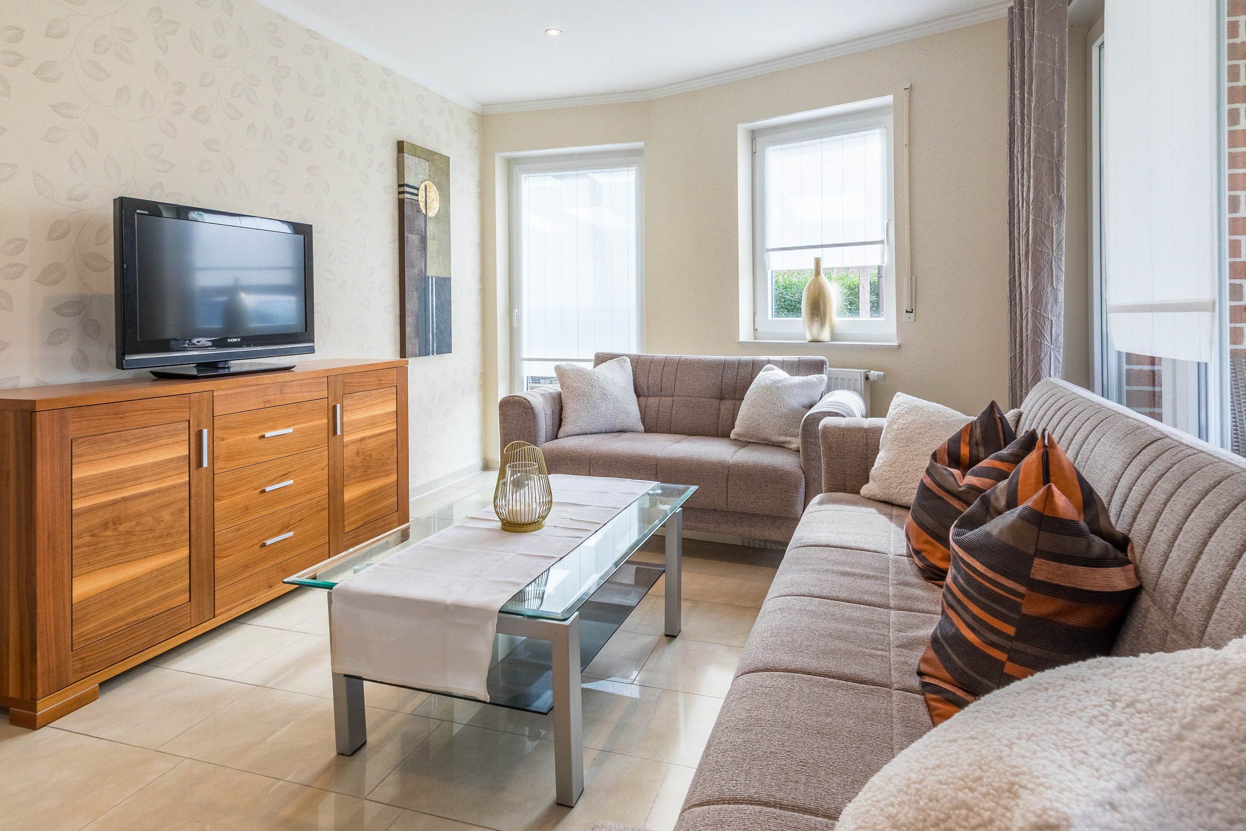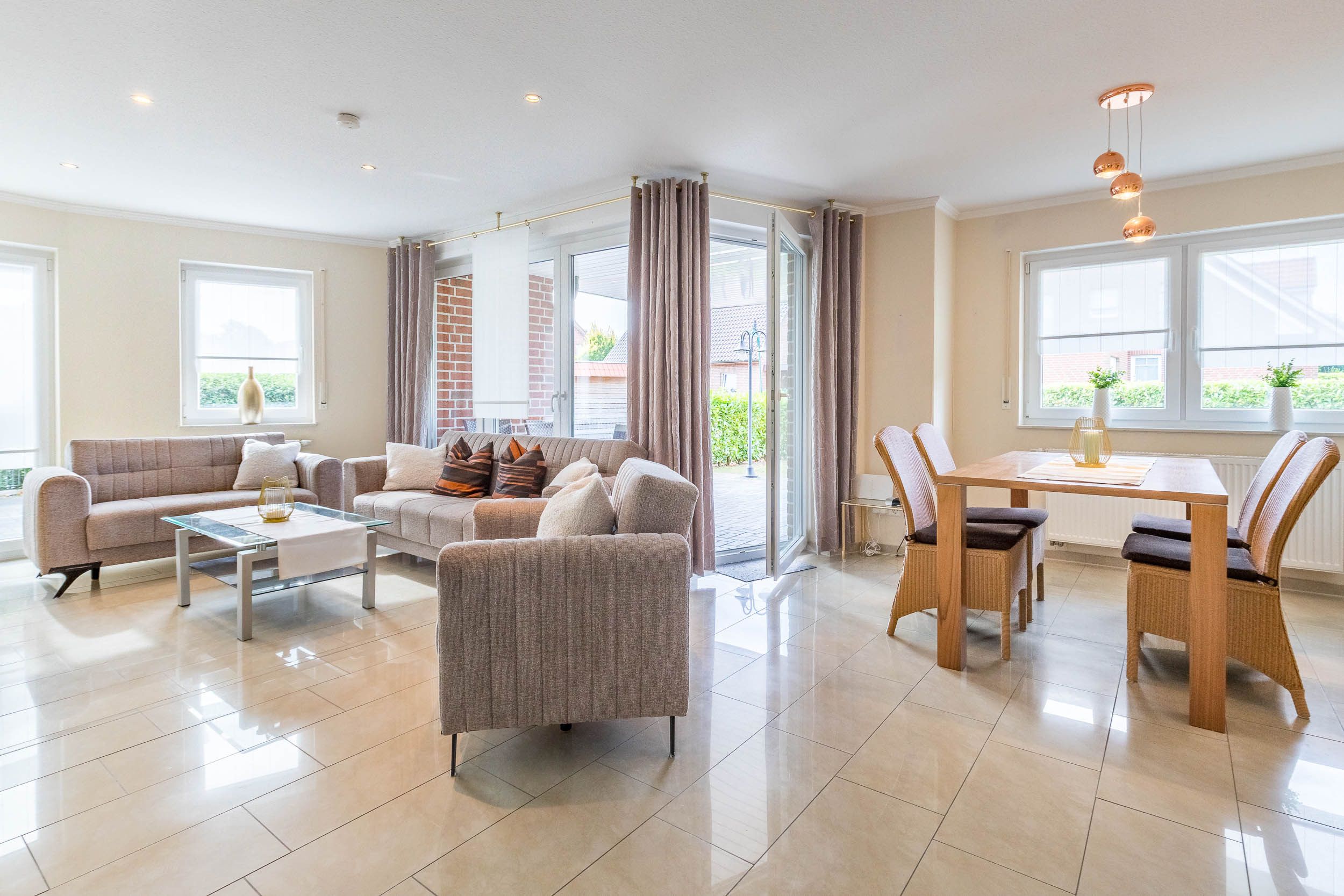 In dieser komfortabel eingerichteten 3-Zimmer-Ferienwohnung im EG finden auf 90qm Wohnfläche Familien mit 4 Gäste ausreichend Platz.