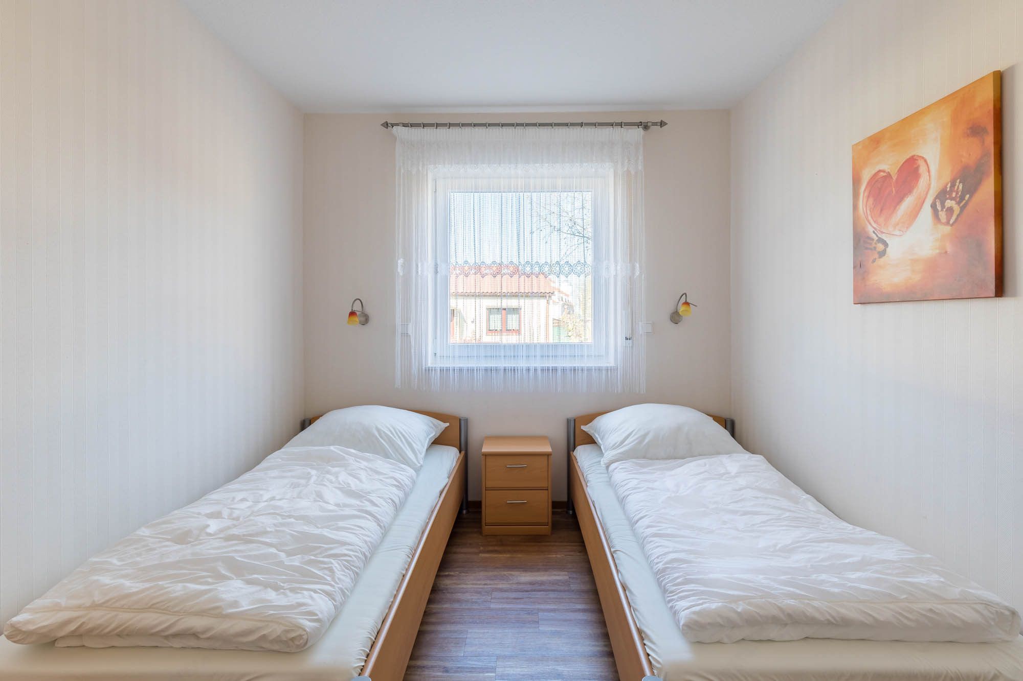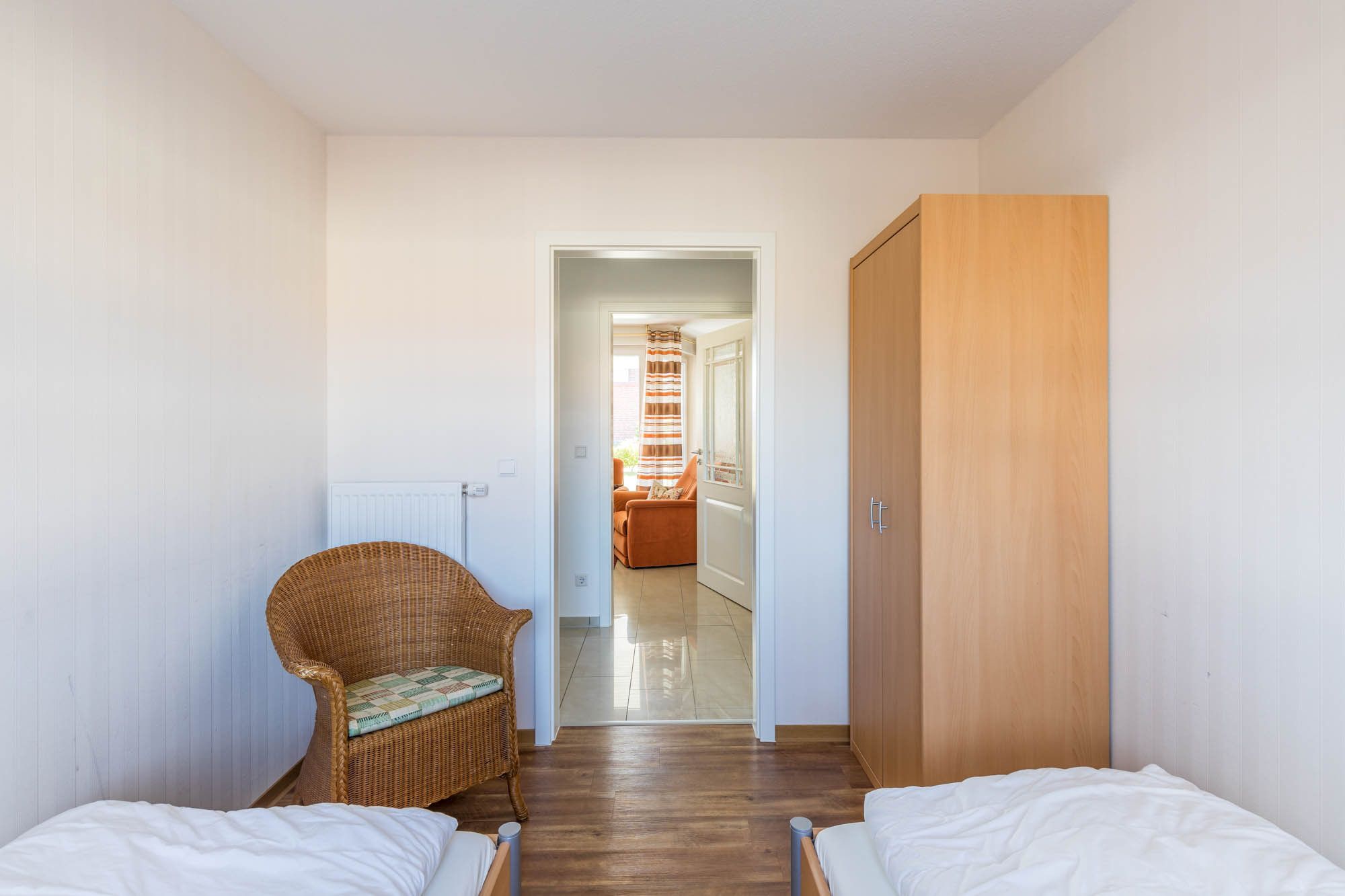 Die Wohnung verfügt über 2 separate Schlafzimmer, wobei jedes mit einem Kleiderschrank eingerichtet ist. In dem Schlafzimmer befindet sich ein bequemes Doppelbett, in dem Kinder-/ Gästezimmer wurden 2 Einzelbetten (90x200cm) aufgestellt.