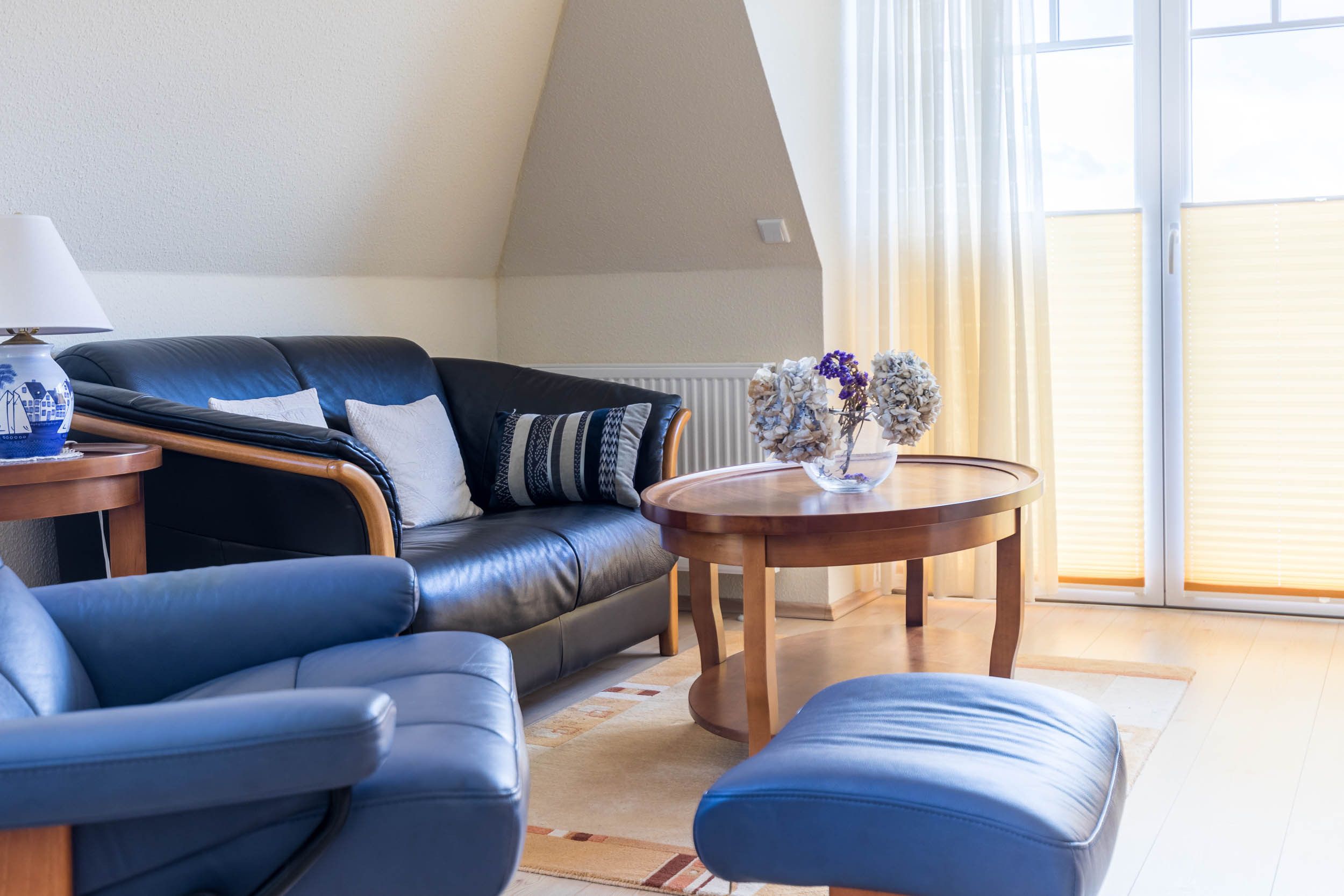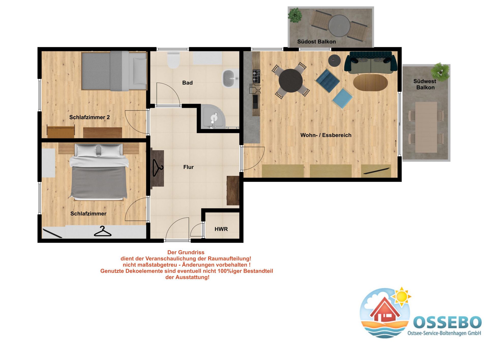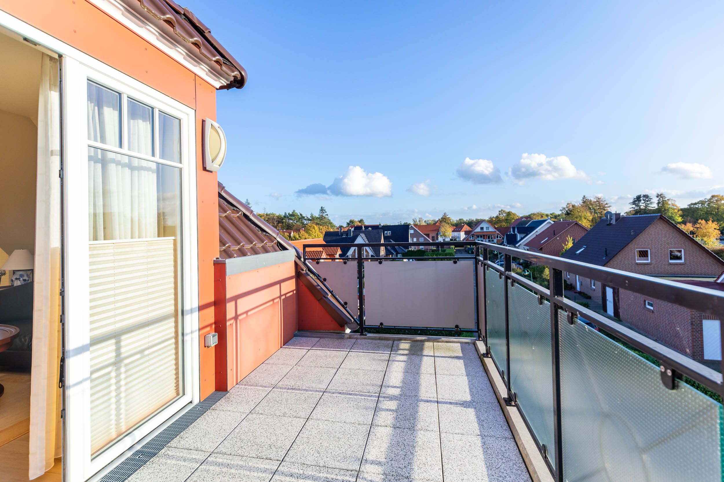 Die etwa 65 Quadratmeter große 3-Zimmer-Ferienwohnung liegt im 2.OG und bietet eine komfortable Ausstattung für 3 Gäste.