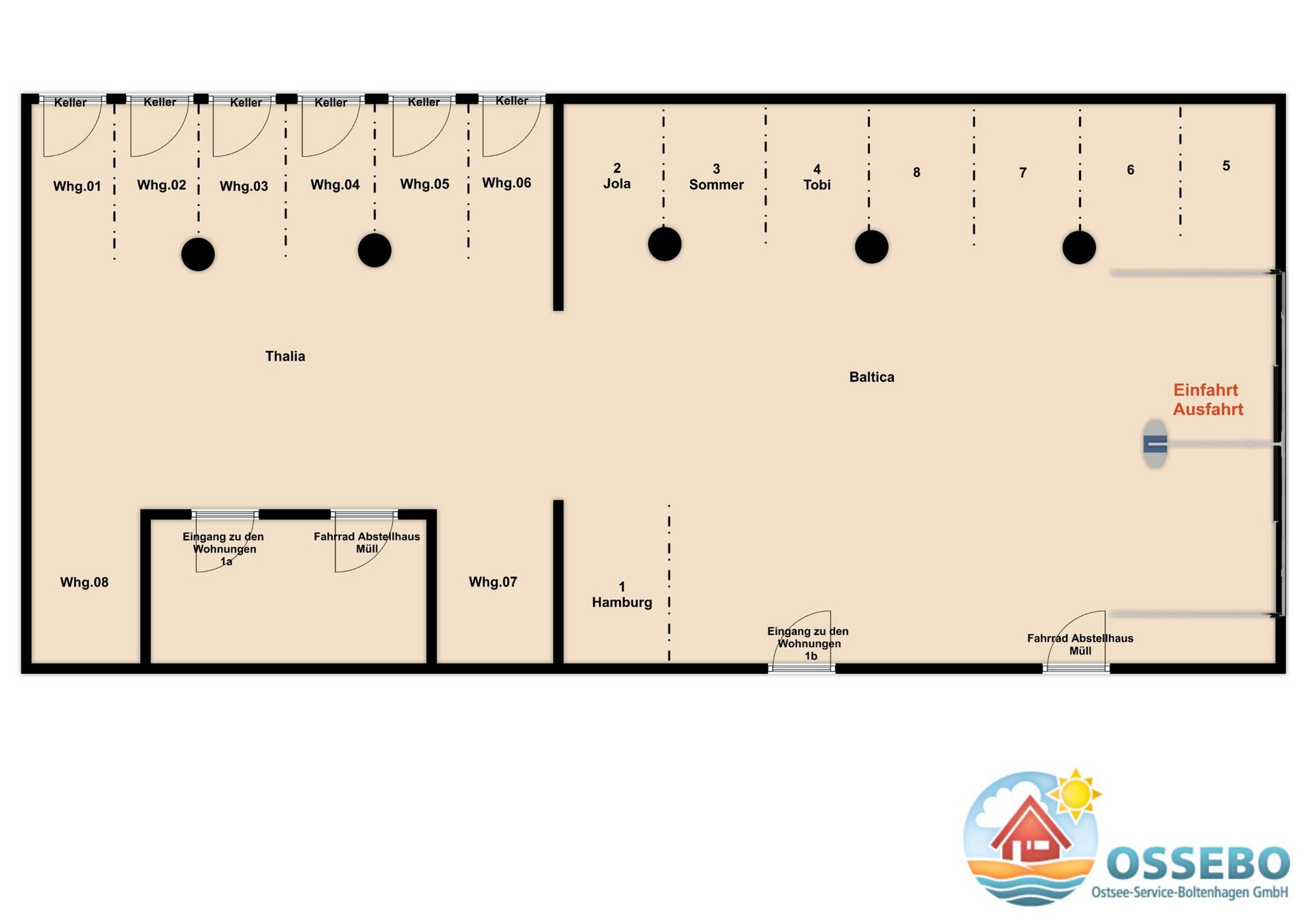 In der Tiefgarage befindet sich ein allgemeiner Fahrradkeller (begrenzter Platz). Hier können Sie Ihre geliehenen oder mitgebrachten Fahrräder & Co. unterbringen.