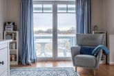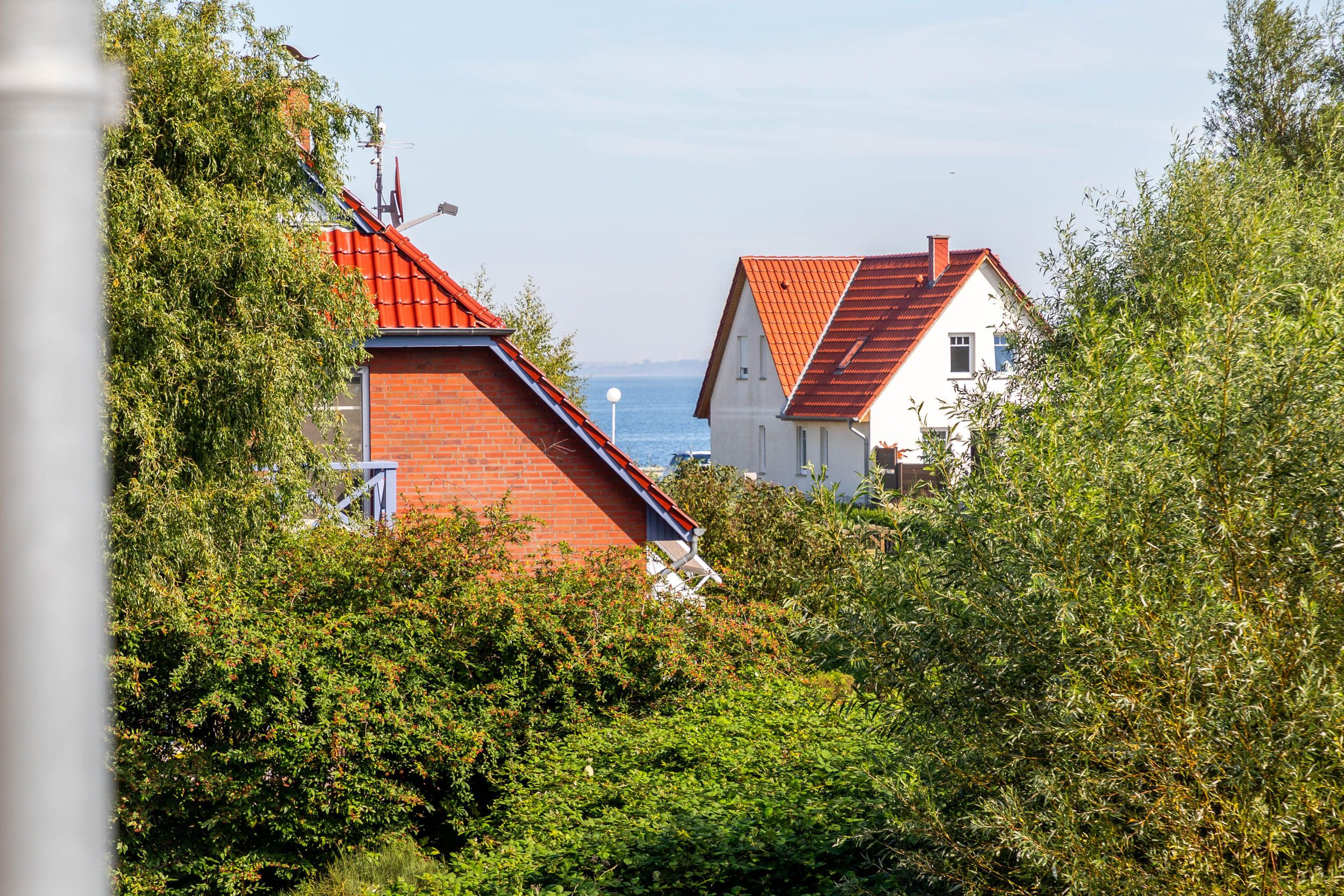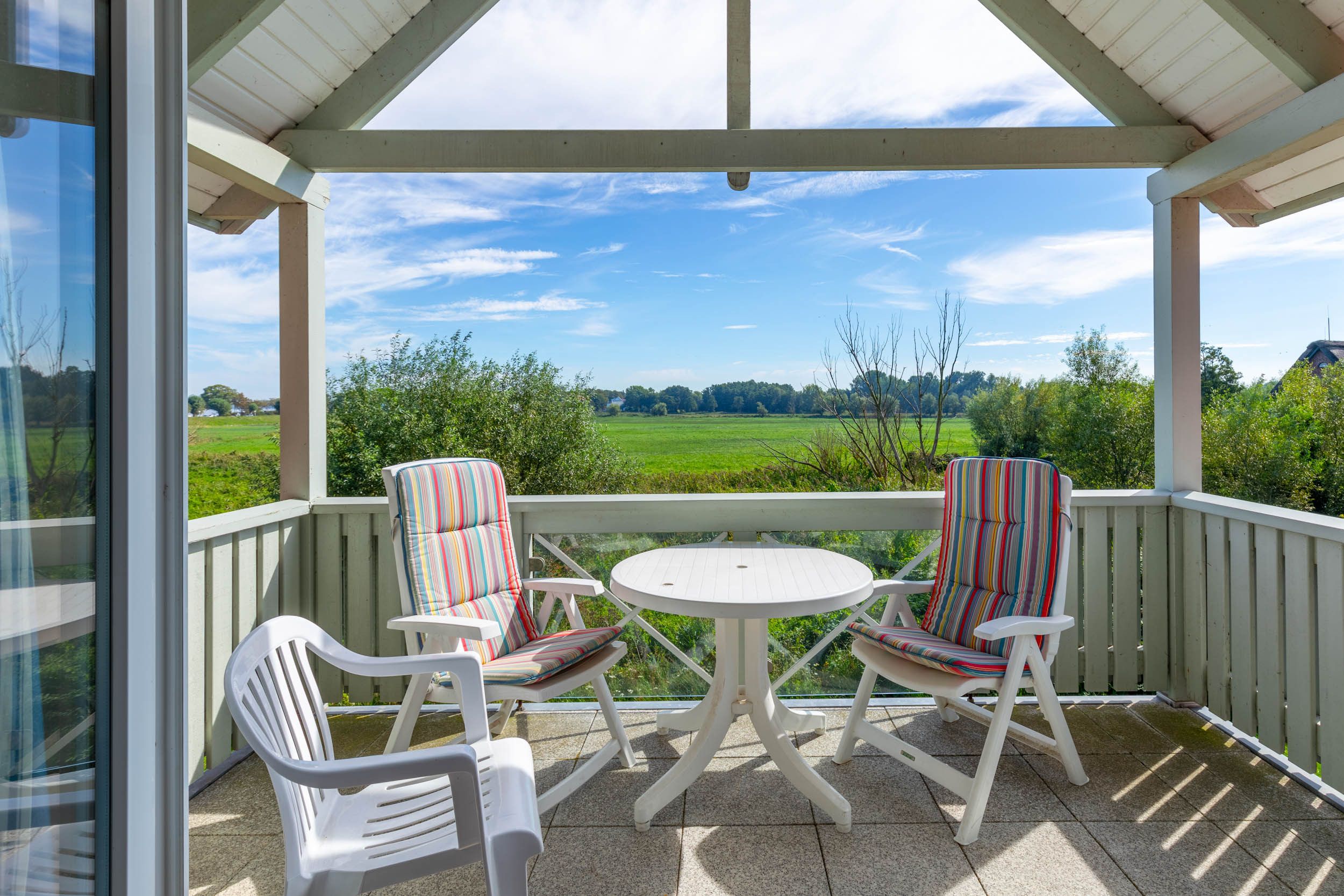 Der nach Süd-Ost ausgerichtete Balkon, welchen Sie vom Wohnbereich aus erreichen, ermöglicht einen herrlichen Blick auf das Haff.