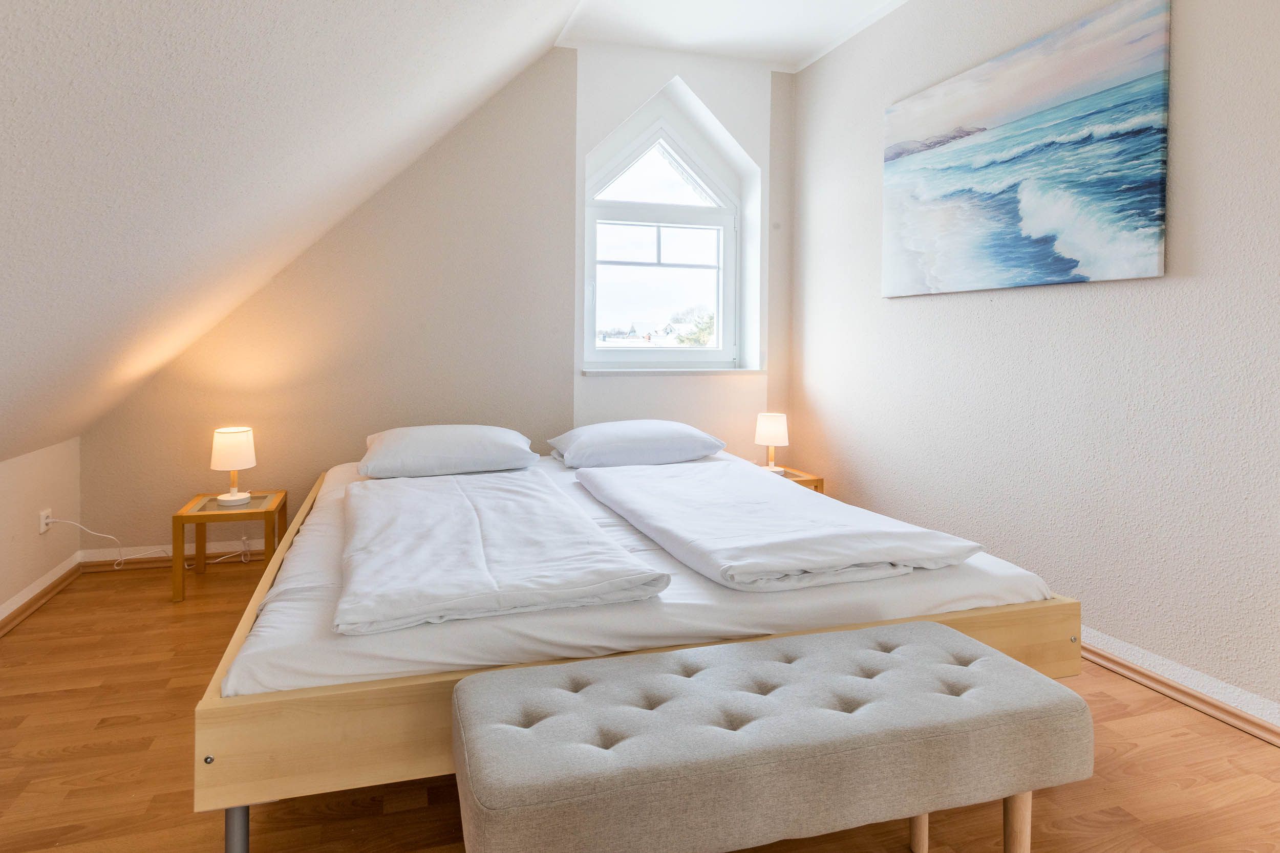 Das Schlafzimmer hier bietet ein Doppelbett (180x200) sowie einen Kleiderschrank für Ihre Urlaubsgarderobe.