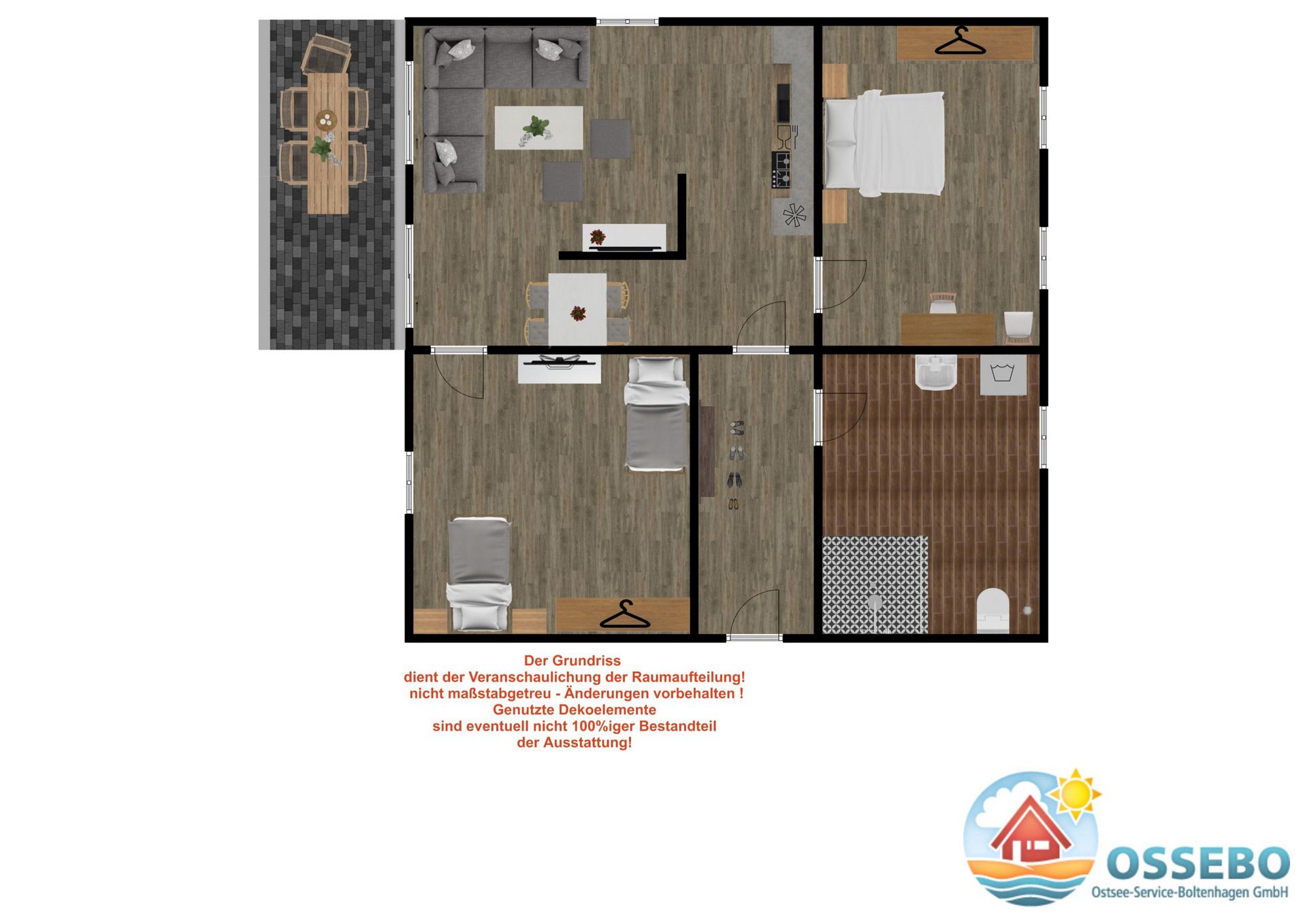 Diese großzügige 3-Zimmer-Ferienwohnung Sünn in Boltenhagen mit verbundenem Wohn- und Essbereich, WLAN und Terrasse ist ideal für Ihren Familienurlaub an der Ostsee.