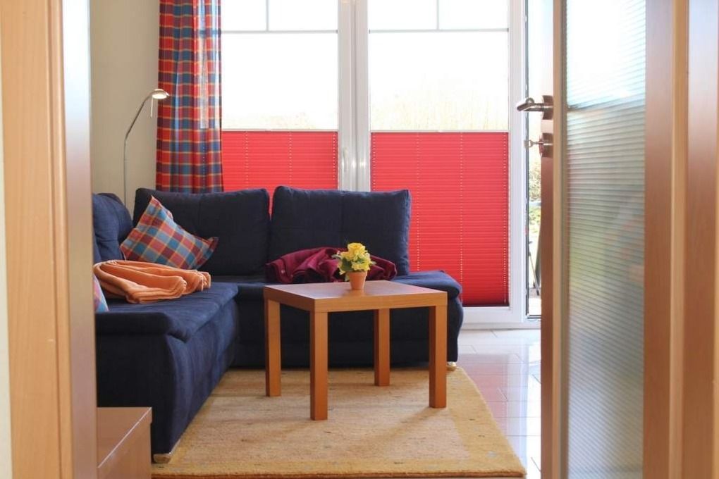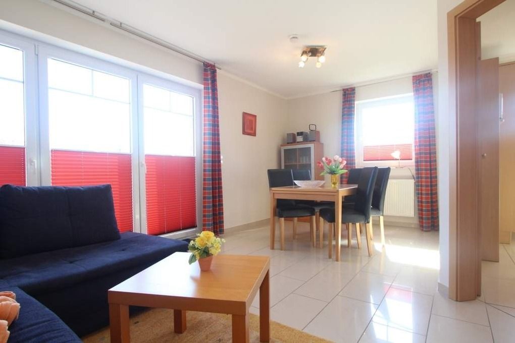 Das Wohnzimmer bietet mit seinen stimmigen farblichen Akzenten und der gemütlichen Möblierung sowie einem separaten Essbereich für 4 Personen genügend Raum für gesellige Stunden. SAT-TV und eine Musikanlage sorgen hier für Multimediaunterhaltung.