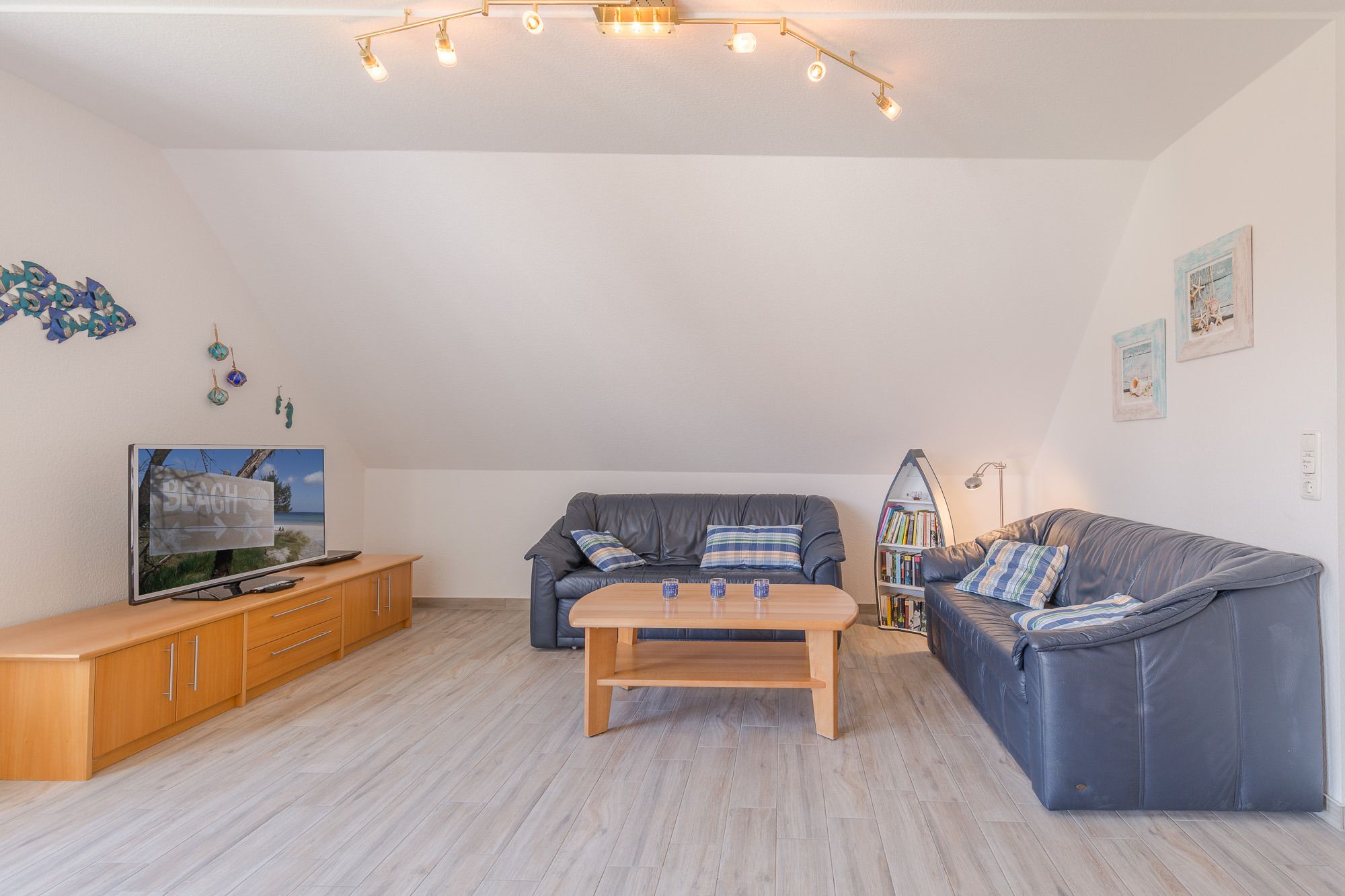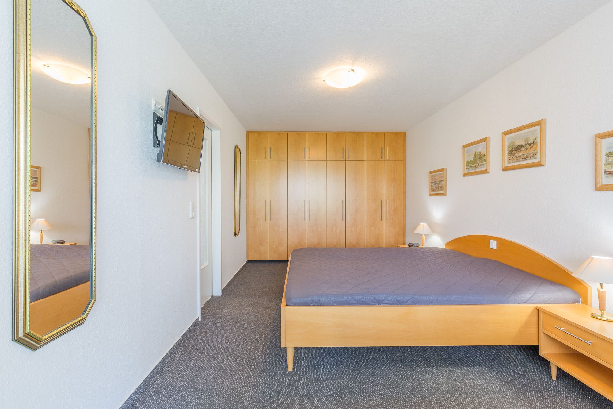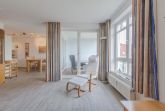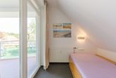 Die Maisonette-Wohnung befindet sich im 2. und 3. OG und sie ist bequem mit einem Fahrstuhl direkt aus der Tiefgarage zu erreichen. Über eine Wendeltreppe ist das DG erreichbar. Beide Ebenen verfügen je über einen Balkon und von beiden Balkonen können Sie den tollen Seeblick genießen. Die Ferienwohnung 41 in der Residenz Likedeeler ist für bis zu 4 Personen ausgestattet. Auf der unteren Ebene (2. OG) befindet sich das große Wohnzimmer mit der offenen moderne Küche (inkl. Einbauküche mit Geschirrspüler, Mikrowelle, Backofen und Cerankochfeld) und einem schönen Essbereich. Vom Wohnzimmer aus können Sie den Balkon betreten. Auch ein großer Flur und ein Duschbad sind auf dieser Ebene vorhanden. Der obere Bereich ist freundlich und hell gestaltet. Hier befinden sich ein Schlafzimmer mit einem Doppelbett (180 x 200 cm) und Flatscreen-TV, ein zweites Schlafzimmer mit 2 hintereinander stehenden Einzelbetten (2 x 90 x 200 cm) und der Zugang zum zweiten Balkon. Auch ein weiteres Duschbad ist vorhanden.