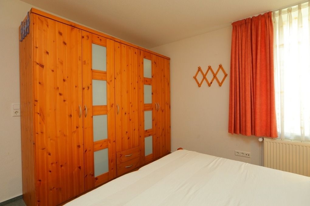 Im Schlafzimmer ist ein komfortables Doppelbett und ein passender großer Kleiderschrank für Ihre Garderobe eingerichtet.