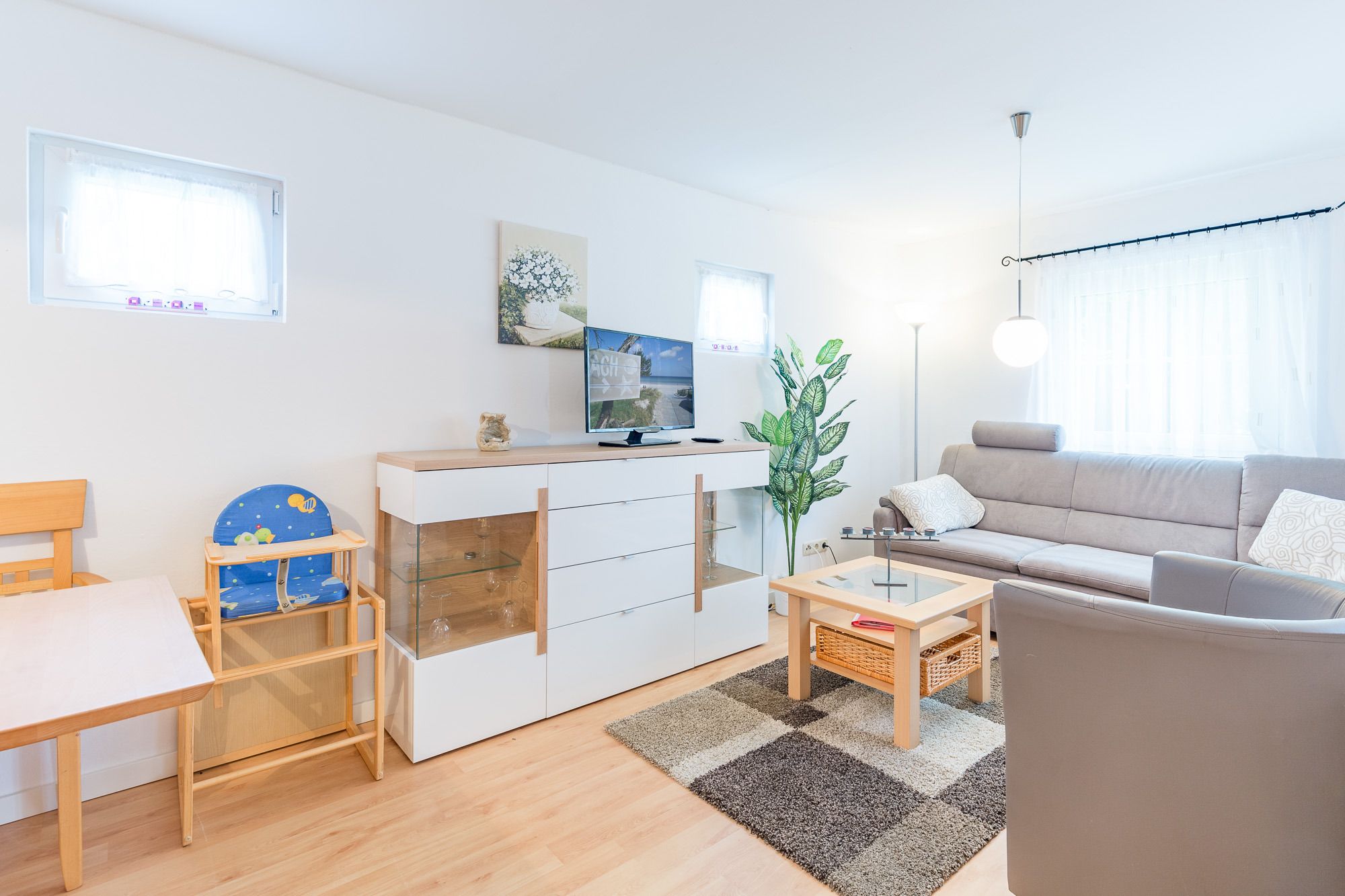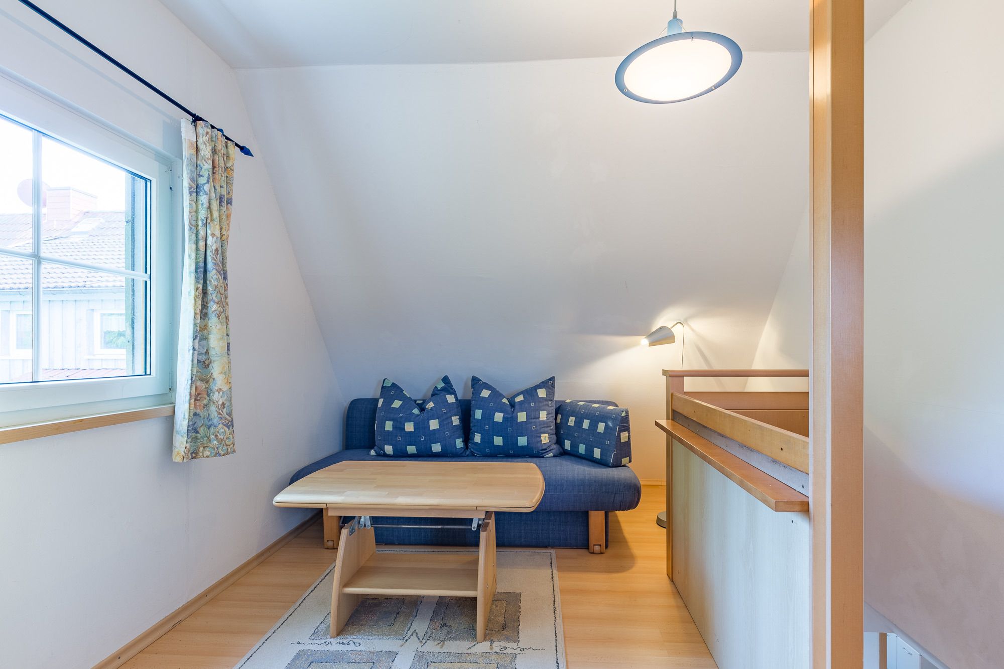 Dieses kleine aber feine Sommerhaus lässt keine Wünsche offen, wenn Sie mit Ihrer Familie gemeinsam Zeit genießen möchten. Das Schlafzimmer ist liebevoll eingerichtet und befindet sich im 1. Obergeschoss. Es ist mit einem Doppelbett (2x90x200cm) und einem geräumigen Kleiderschrank eingerichtet. Zusätzlich gibt es in der oberen Etage eine Doppelschlafcouch für 2 Personen. Das Erdgeschoss ist ebenfalls großzügig und elegant möbliert. Der offen gestaltete Wohnraum bietet eine Essecke sowie eine komplette Wohnlandschaft, die mit einem Flatscreen ausgestattet ist.