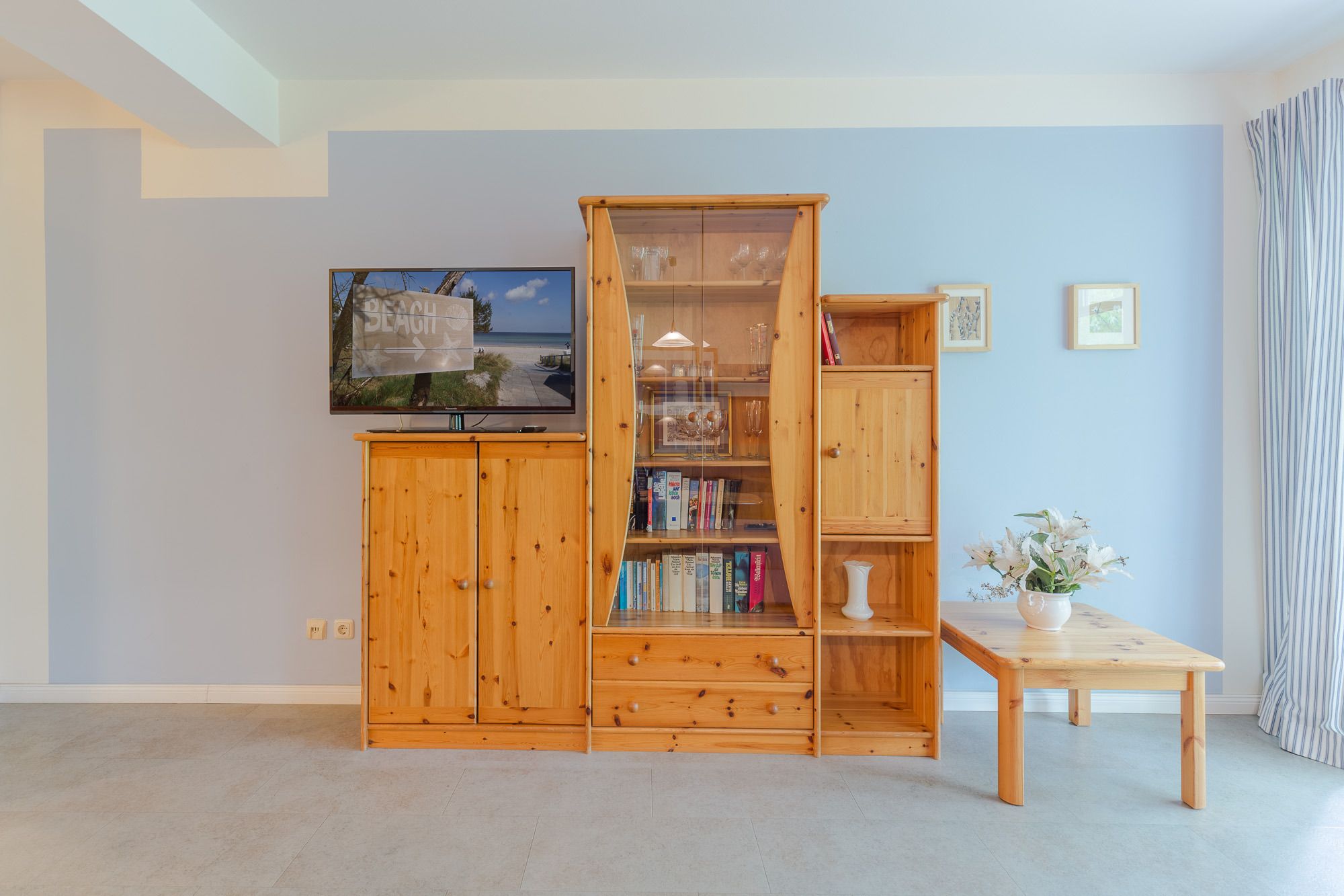 Das geräumige Schlafzimmer verfügt über ein Doppelbett mit Kleiderschrank und 2 Nachttischen. Das Badezimmer verfügt über eine Dusche und ein WC. Wäscheständer, Staubsauger sowie weitere Haushaltsutensilien. Die große Terrasse ist zur Südseite gelegen und bietet eine gemütliche Atmosphäre zum Entspannen.