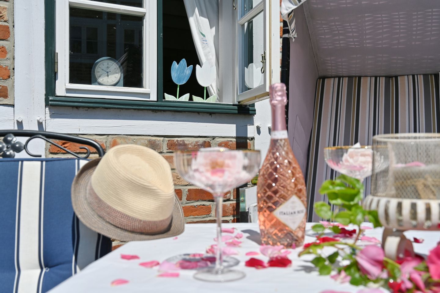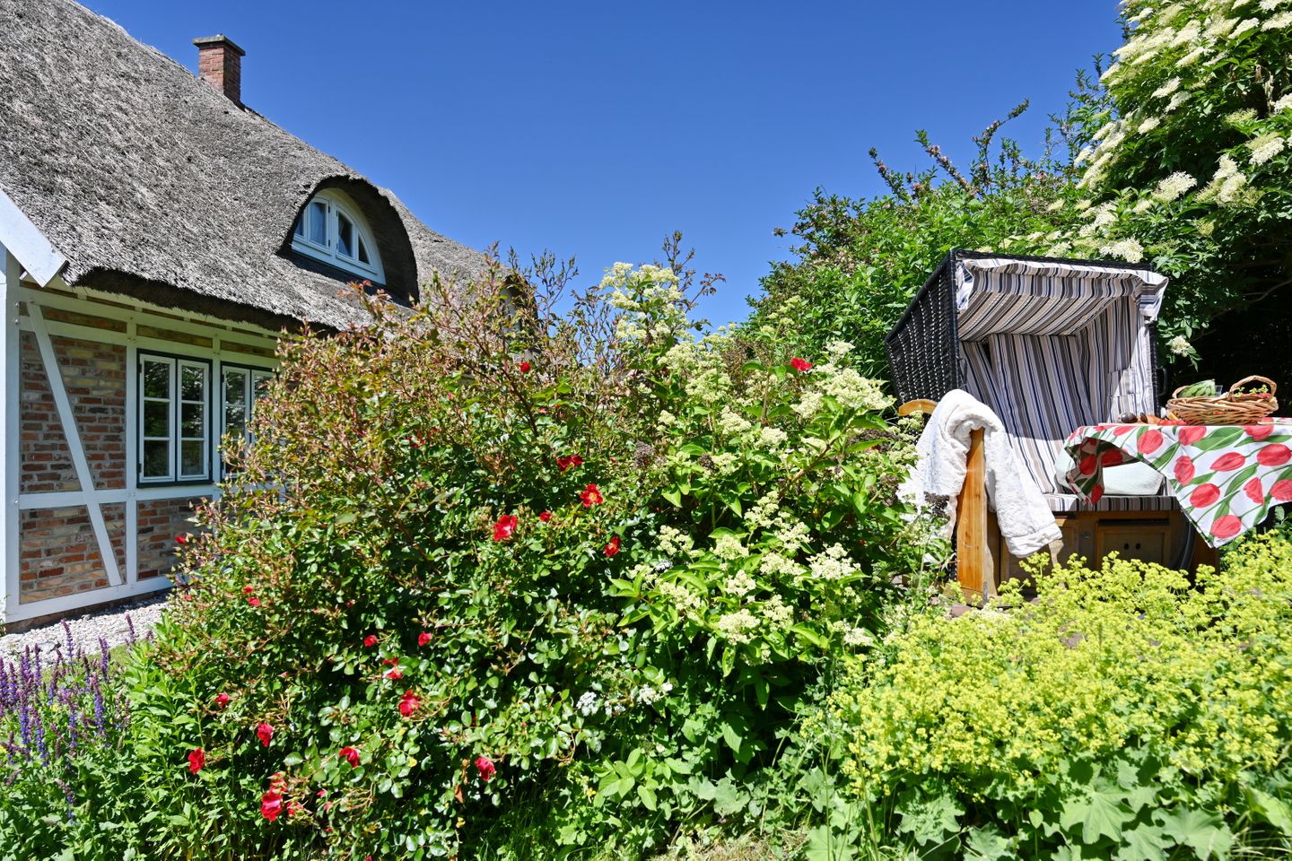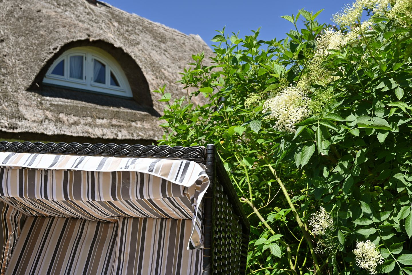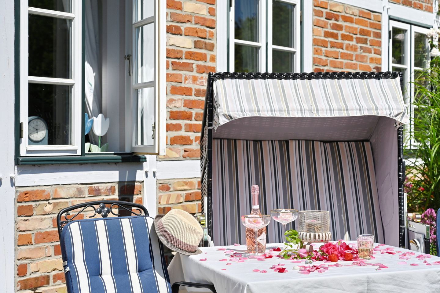 Zu jeder der Wohnungen gehört eine separate Terrasse in der wunderschönen großen Gartenanlage incl. Strandkorb und Gartenmöbeln.