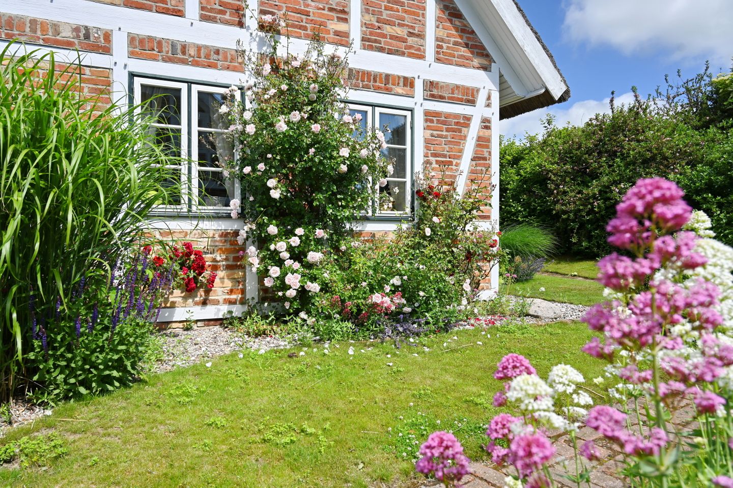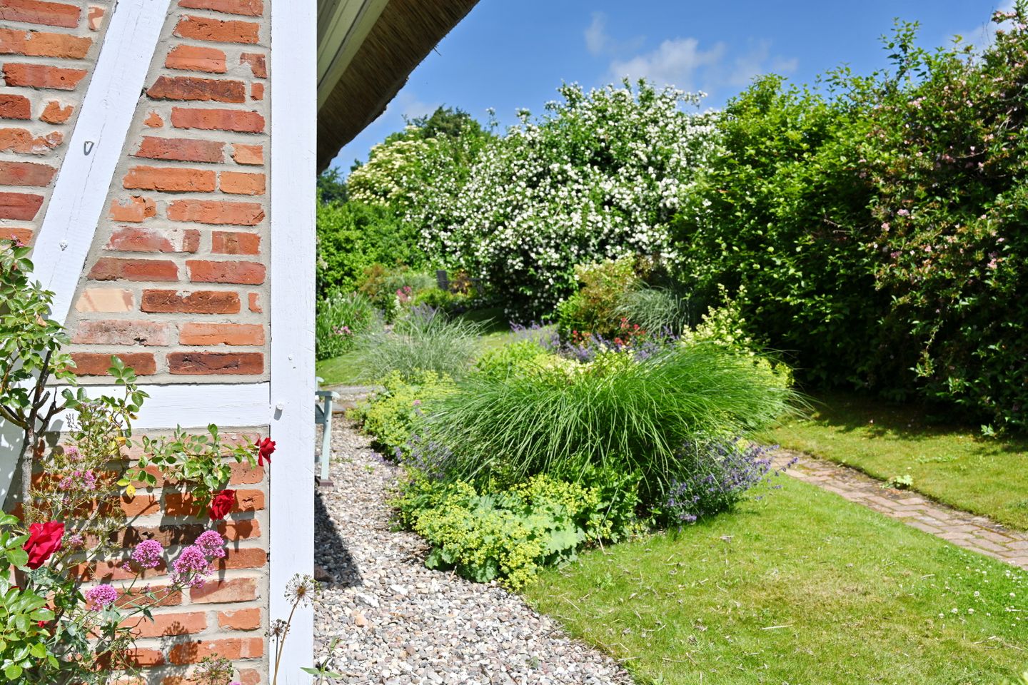 Auf einem romantischen Gartengrundstück mit Fernsicht auf die schöne Landschaft stehen zwei dieser wunderschönen, reetgedeckten Backsteinhäuser mit 3 bzw. 4 Wohnungen pro Haus.