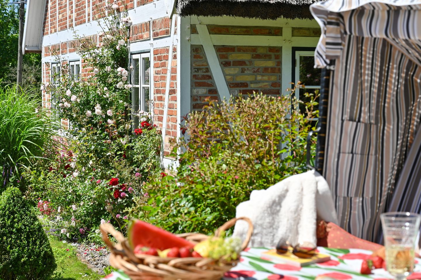 Im eigenen Strandkorb auf der gemütlichen Terrasse mit herrlichem Blick in den Garten und auf die umliegende ruhige Landschaft können Sie die Seele baumeln lassen und vom Alltag ausspannen. In der Nähe des Hauses können Sie wunderschön wandern, Rad fahren und die traumhafte Natur genießen.