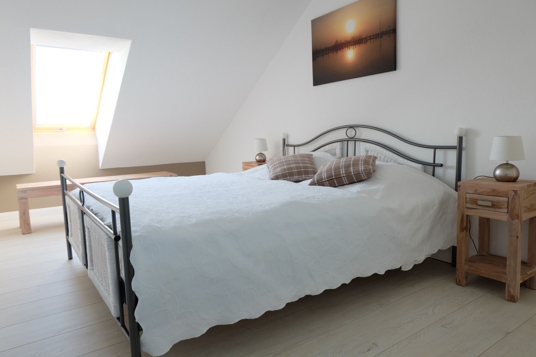 Ein Duschbad/WC mit Dachfenster ergänzt die Wohnung. Die Ferienwohnung ist als Nichtraucher klassifiziert.