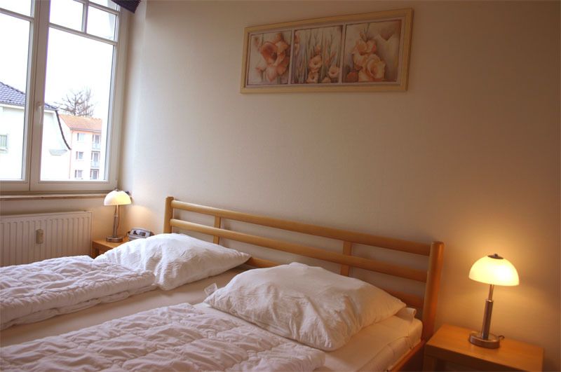 Die Schlafmöglichkeiten sind ein Schlafzimmer mit Doppelbett und ein weiteres mit einem Etagenbett. Ein Duschbad/WC gehört zur Wohnung dazu. Auf dem Südbalkon können Sie die Mittagssonne genießen.