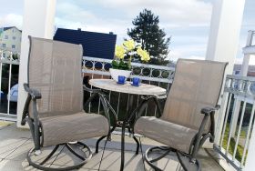 Der große Nord-Ost-Balkon bietet einen wunderschönen Ausblick zur Ostsee.