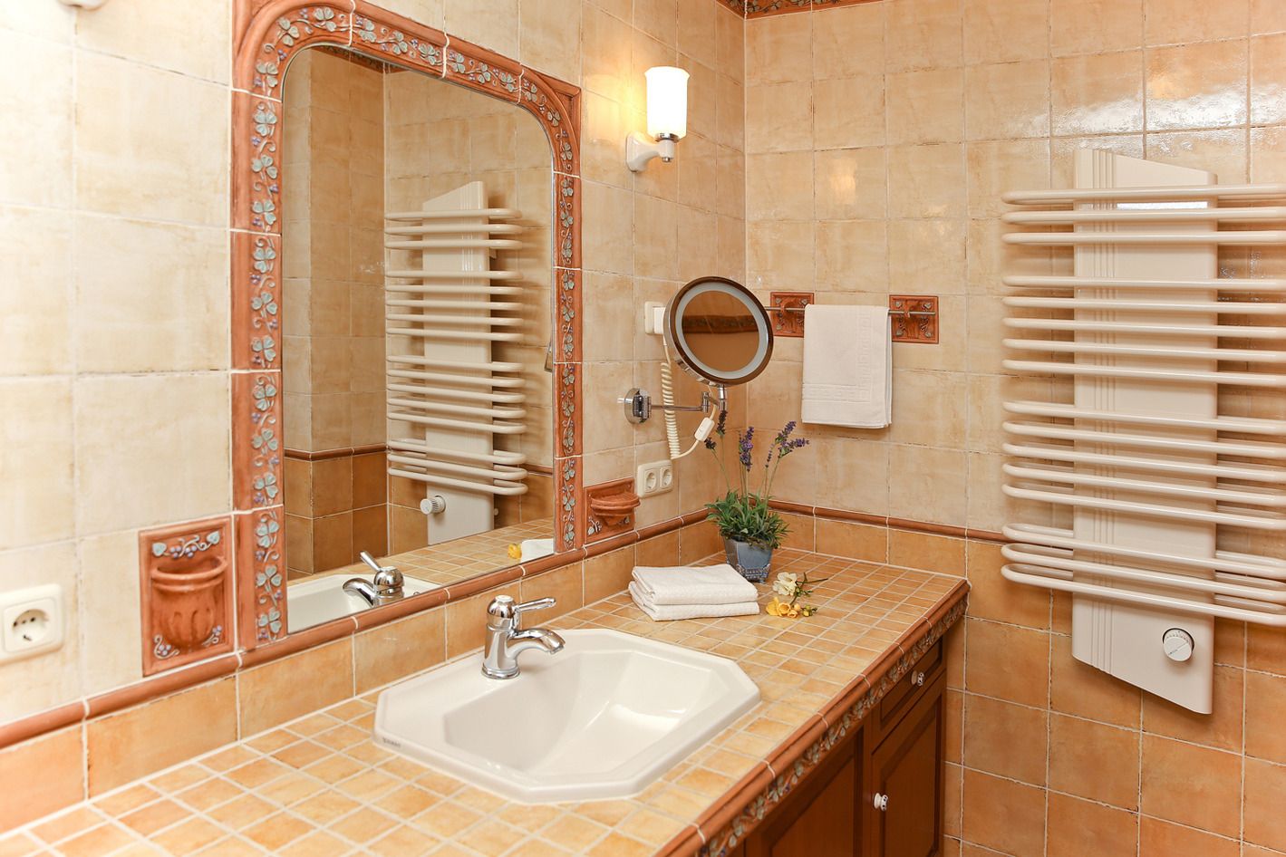 Die Wohnung ist komplett mit Fliesen ausgelegt und verfügt über Fußbodenheizung.