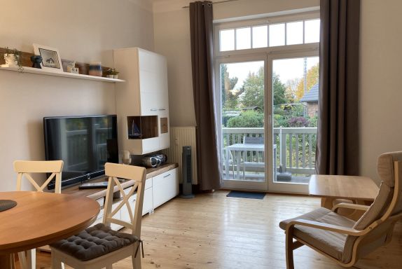 Die ca. 50 qm große Wohnung ist im 1. Obergeschoss und für bis zu 4 Personen eingerichtet. Die Wohnung liegt zur ruhigen Südseite und verfügt über einen Balkon. Nach ein paar Schritten durch den Stadtwald sind Sie am Strand und im